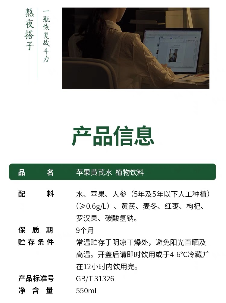 【BF】乐源苹果黄芪水550ml/瓶