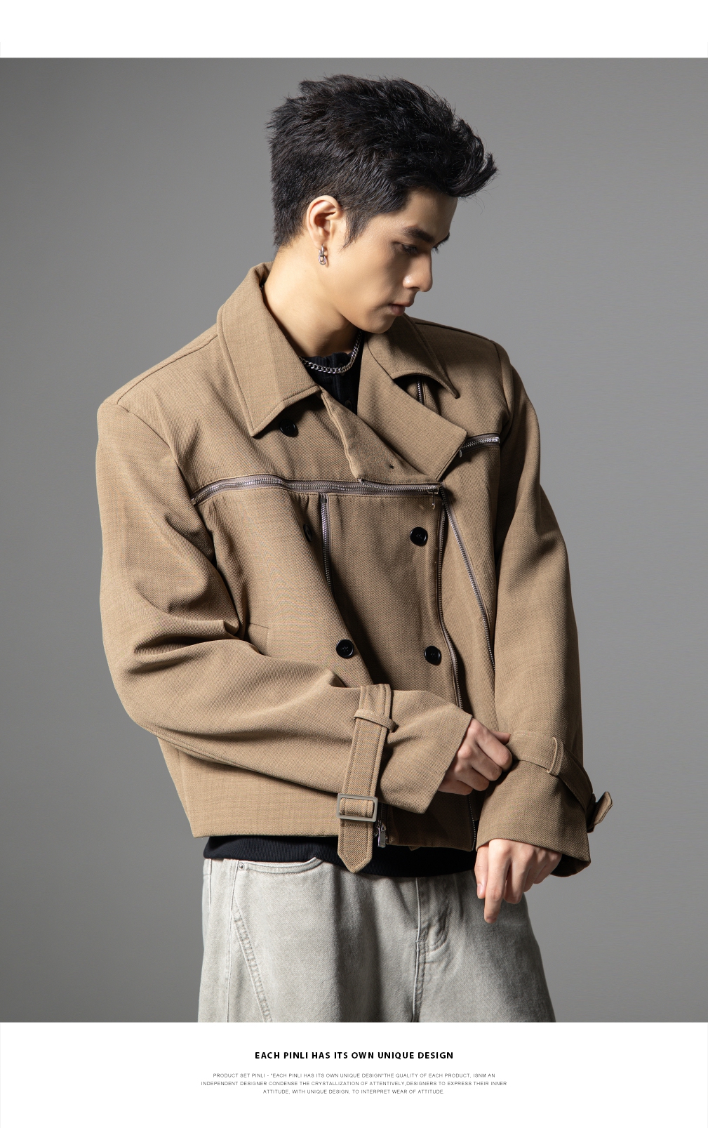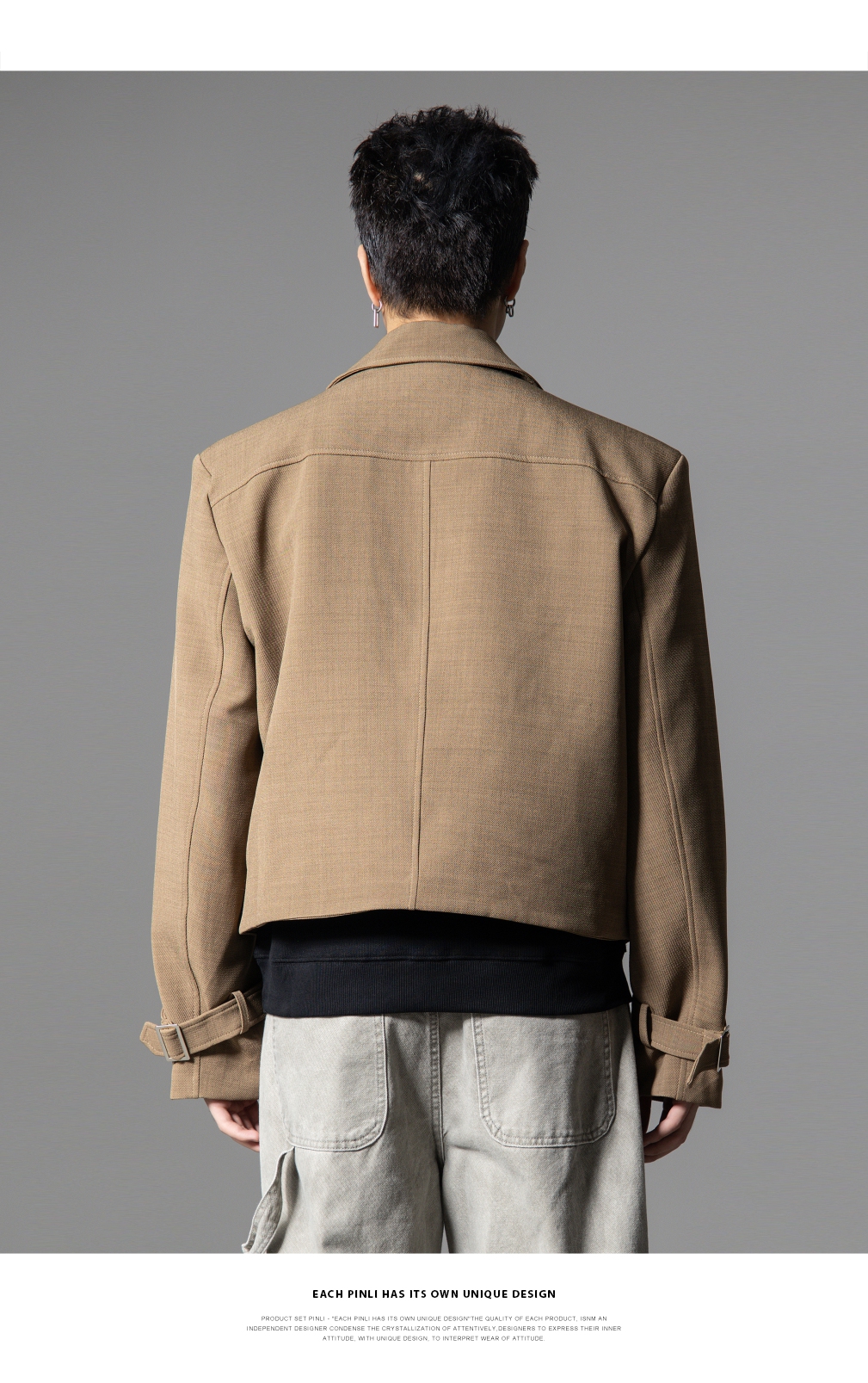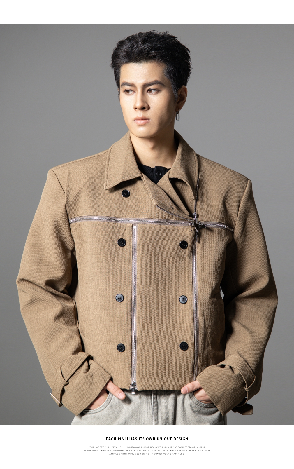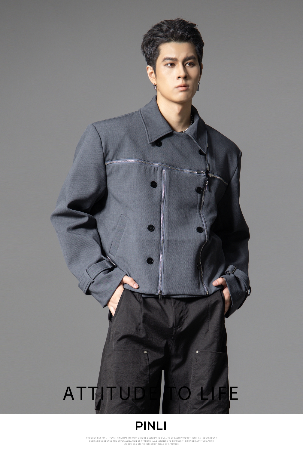 PINLI品立2025秋季新款男士短款高街宽松翻领斜门襟梭织茄克外套GD253104153