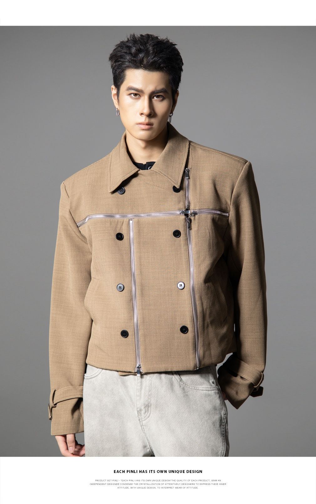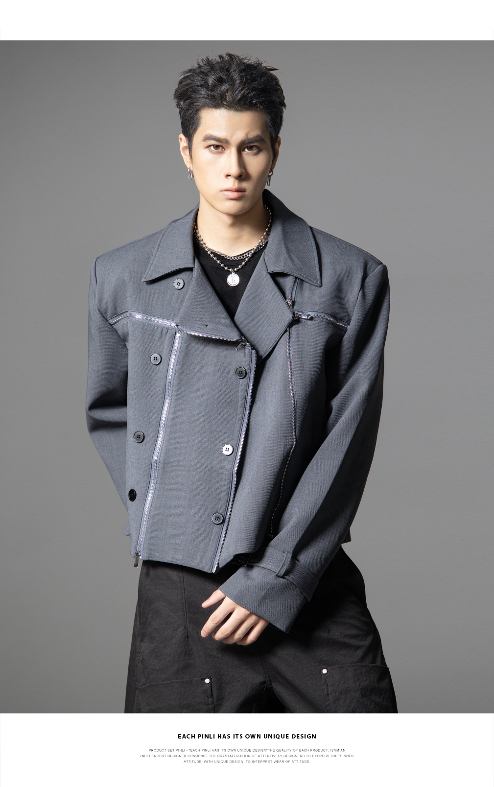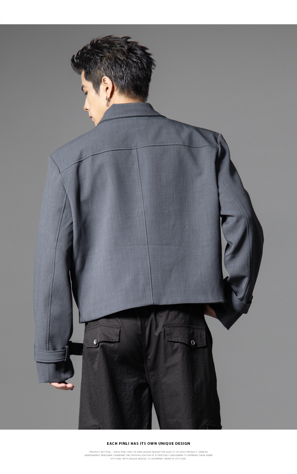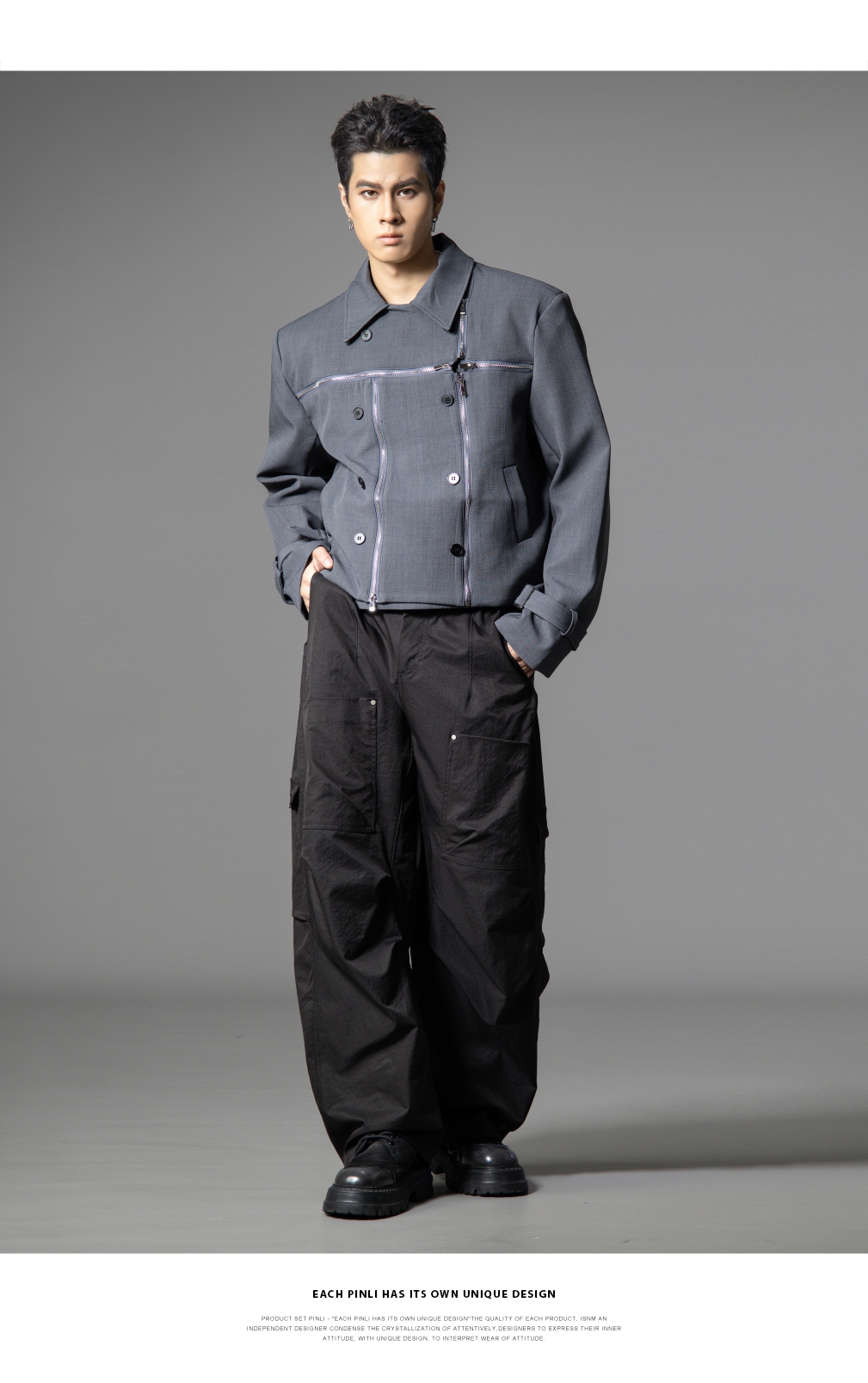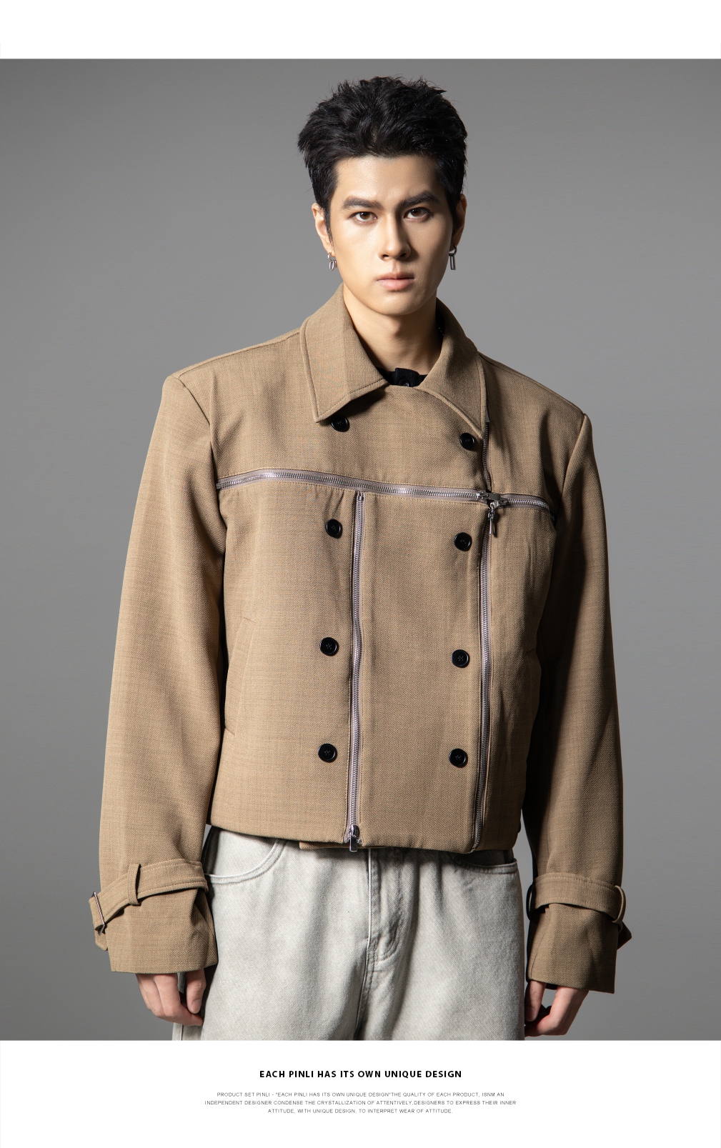 PINLI品立2025秋季新款男士短款高街宽松翻领斜门襟梭织茄克外套GD253104153