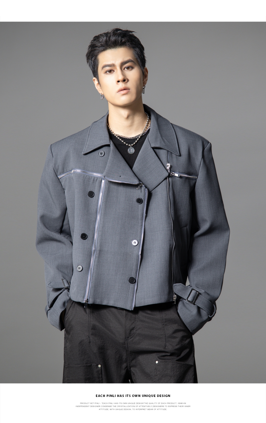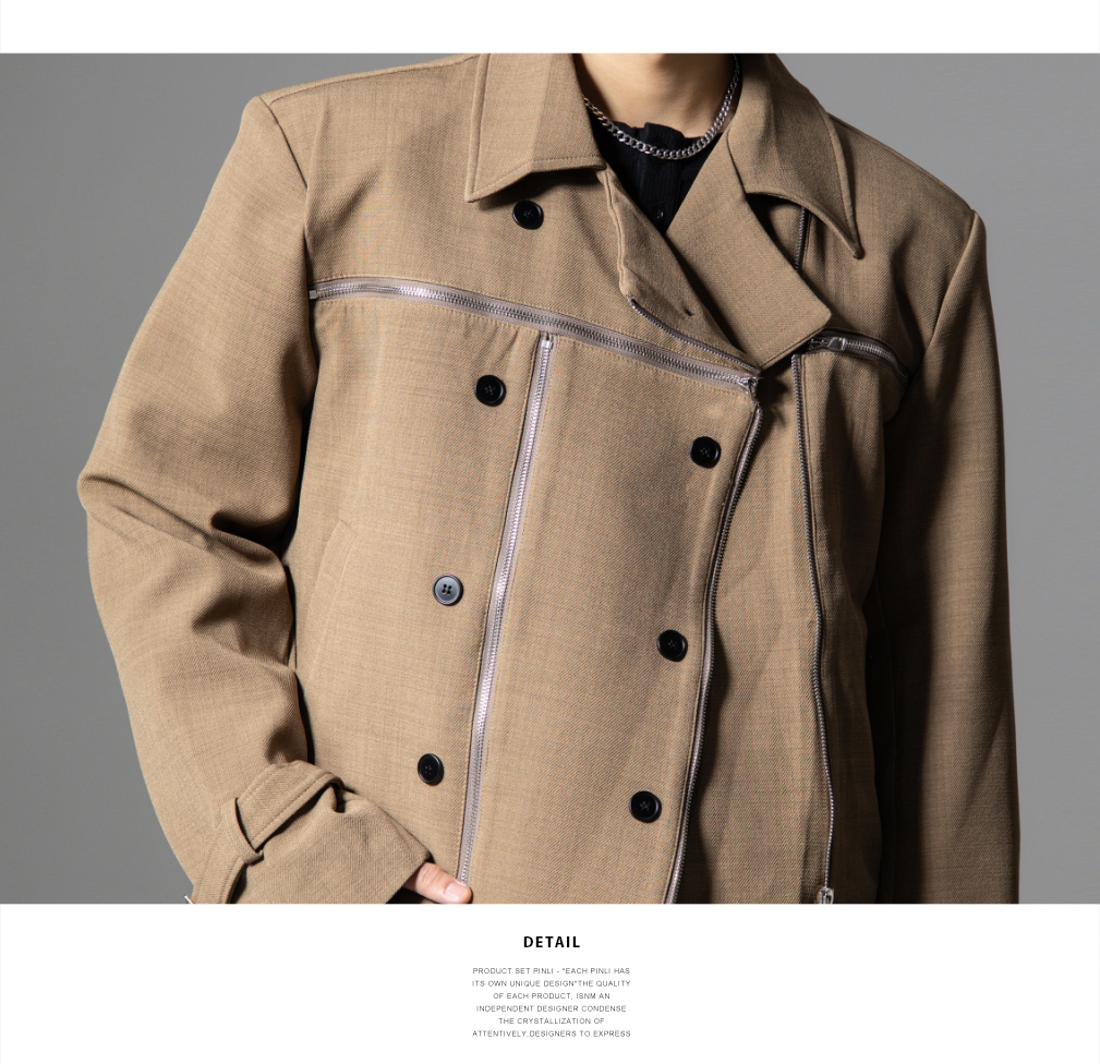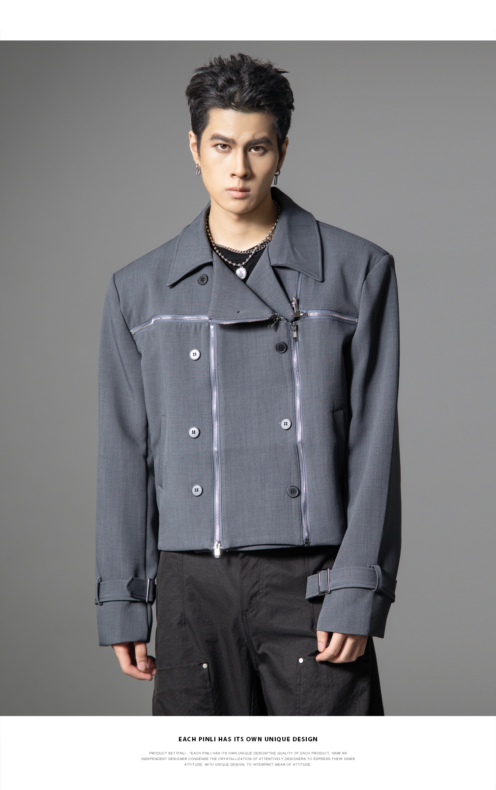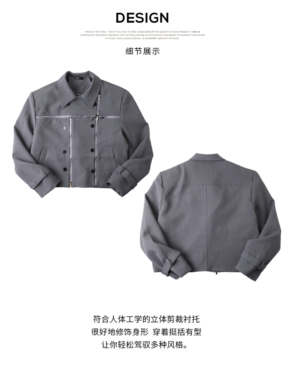 PINLI品立2025秋季新款男士短款高街宽松翻领斜门襟梭织茄克外套GD253104153