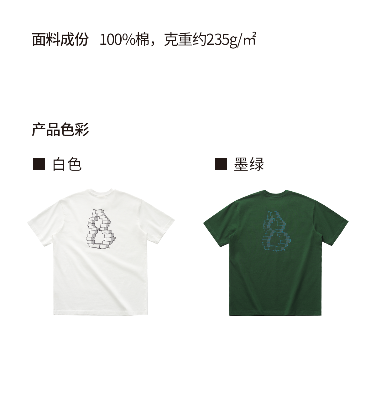 吃茶去chichaqu2024新款全棉圆领短袖T恤男女宽松砖头葫芦logo