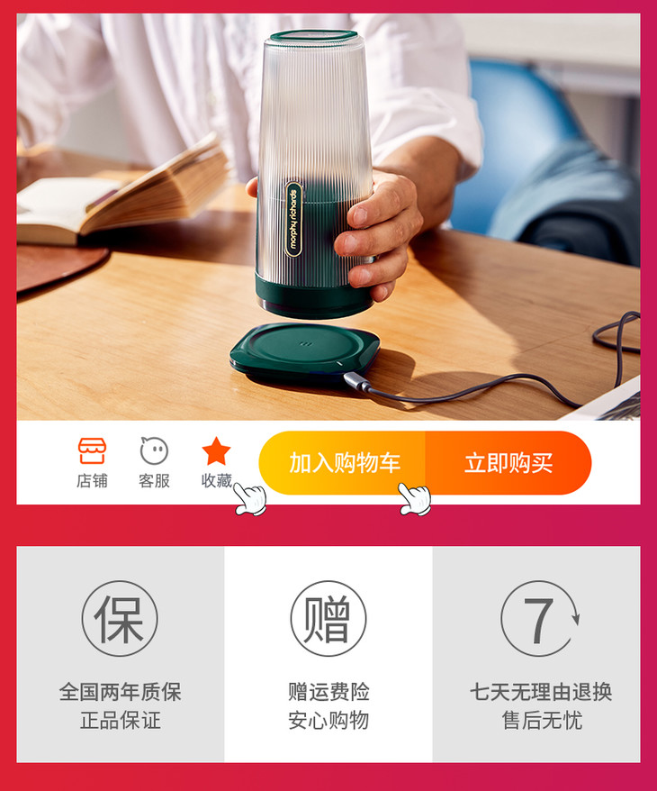 【感应式充电 全心升级 用券更划算】摩飞榨汁杯家用水果迷你小型果汁杯电动便携式炸果汁机无线榨汁机 MR9800