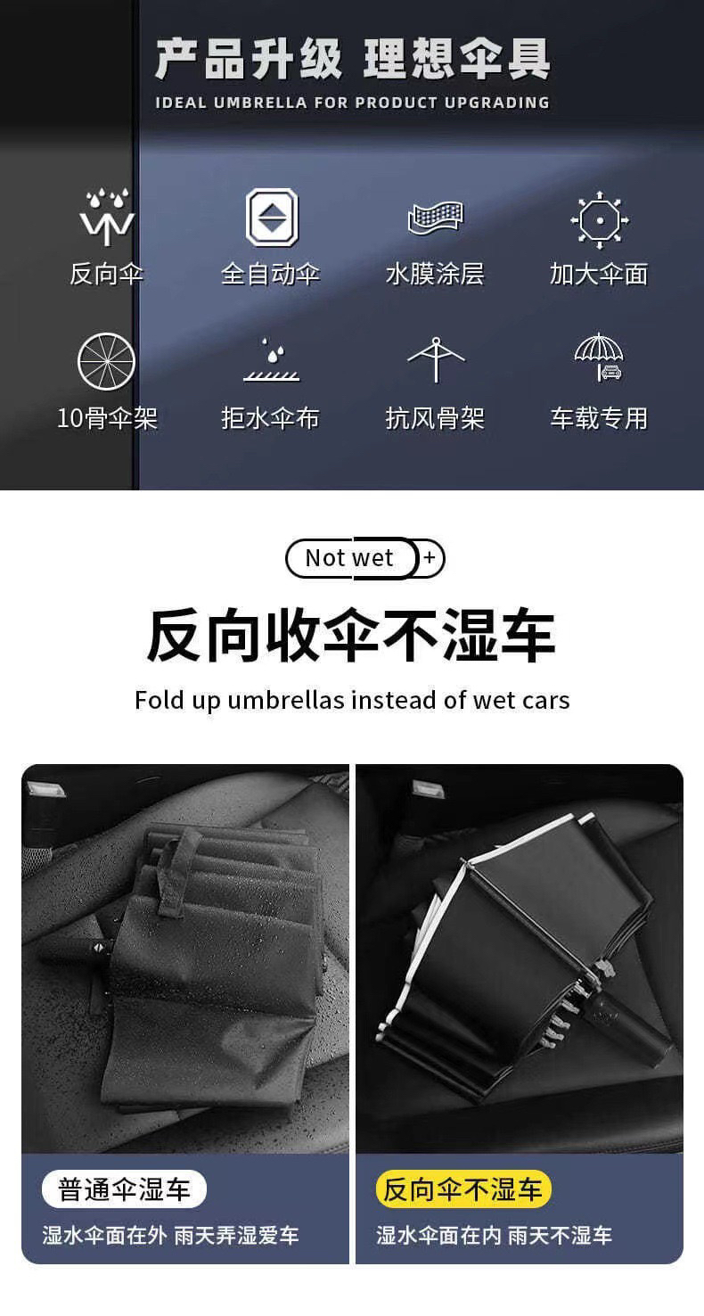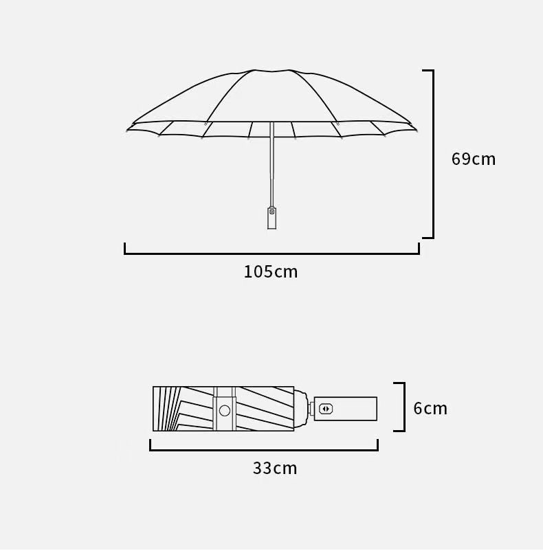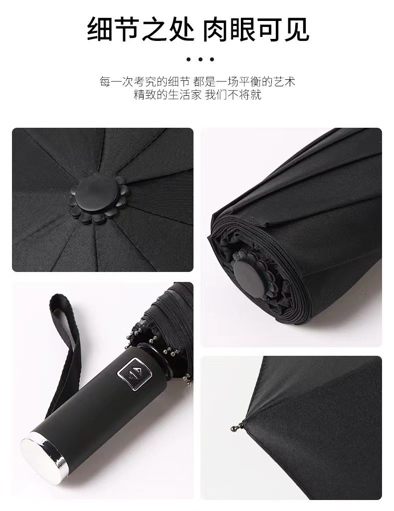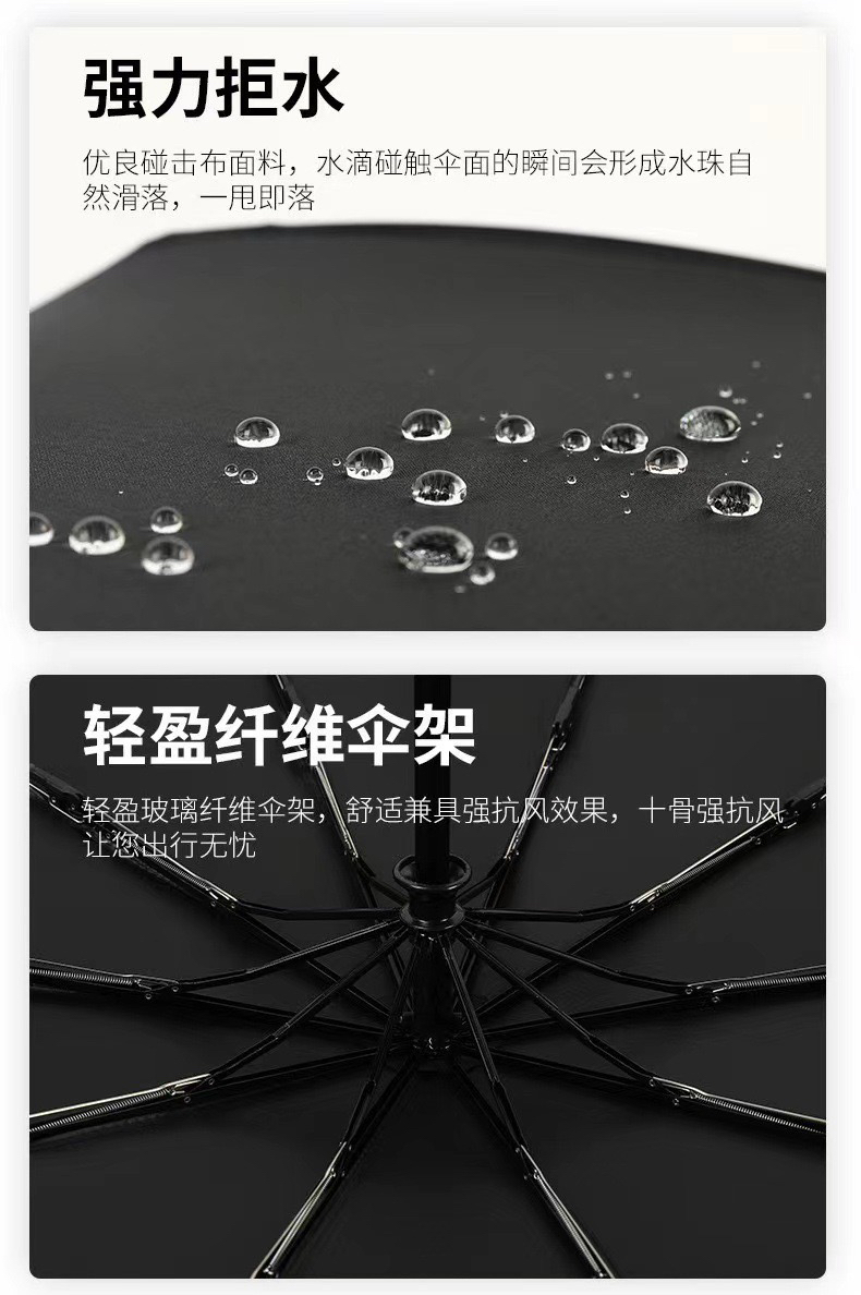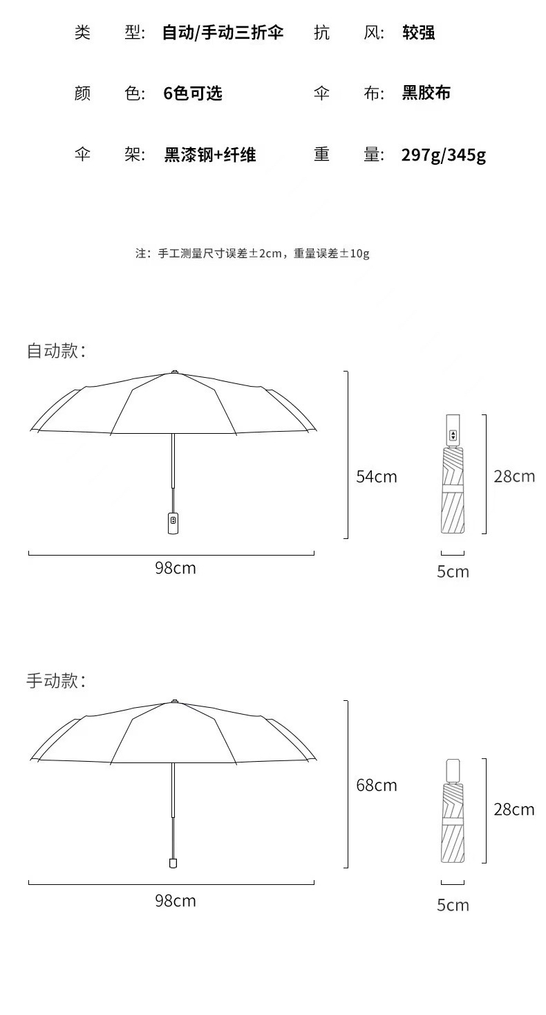 全自动三折叠雨伞两用黑胶防晒防紫外线