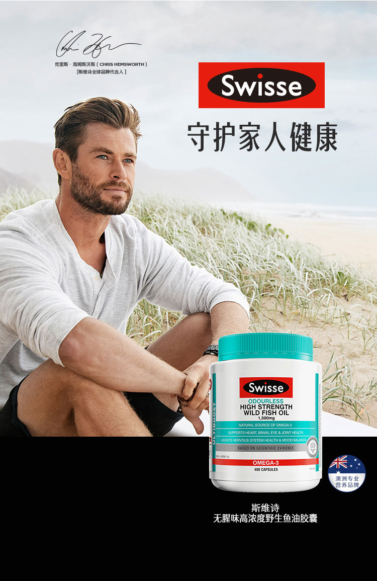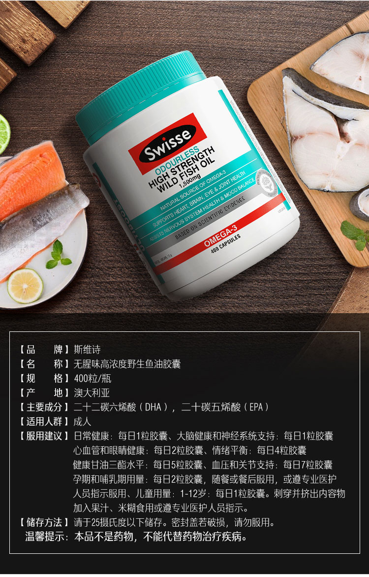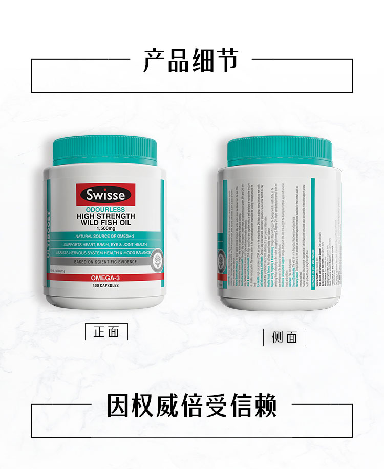 【保税仓】Swisse 斯维诗无腥味1500mg高浓度度鱼油胶囊400粒