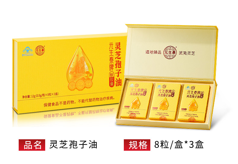 【畅销17年】元生泰牌灵芝孢子油软胶囊0.5g*24粒保肝护肝礼盒 萃取破壁灵芝孢子粉精华中老年人营养滋补保健品