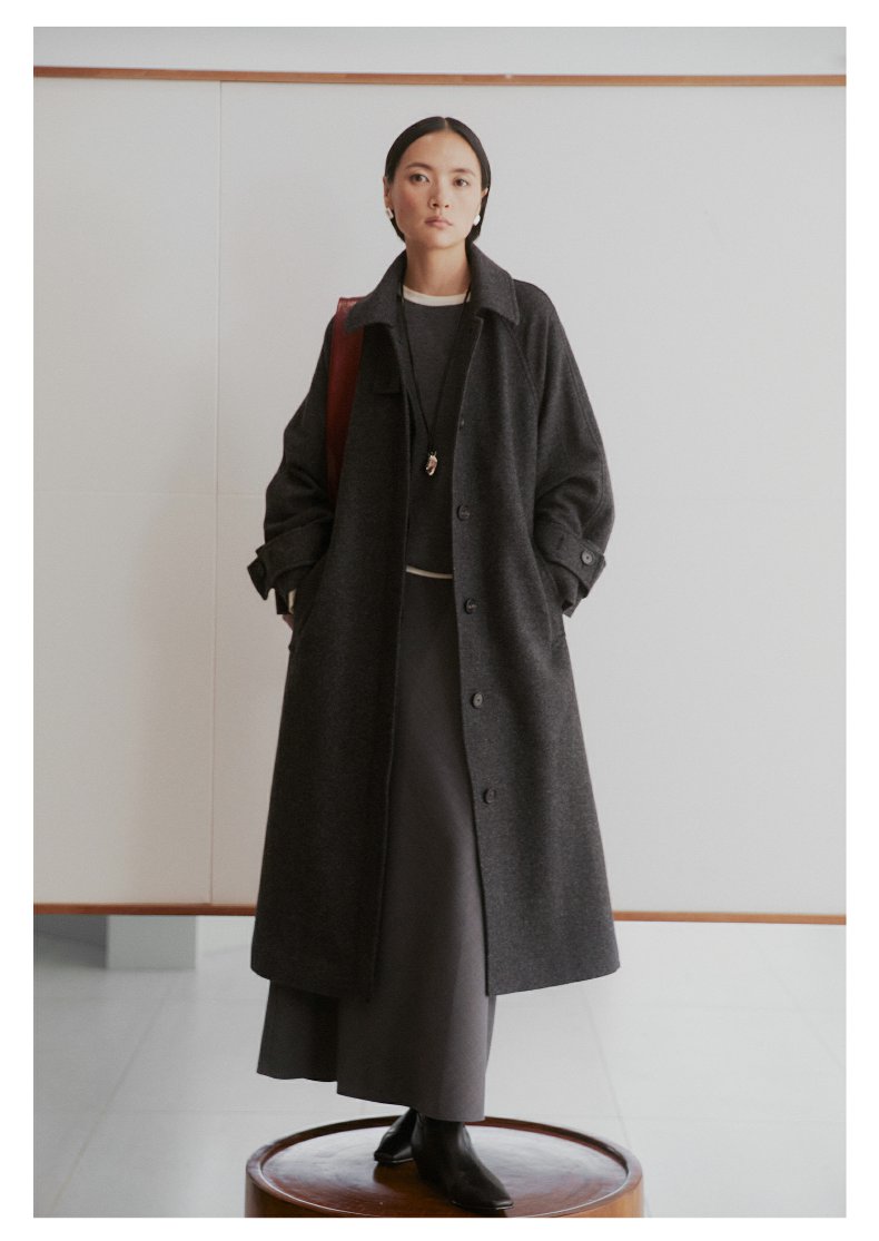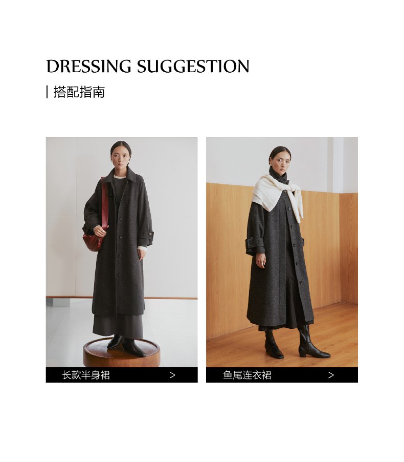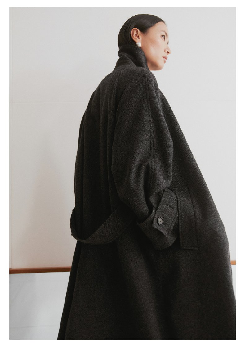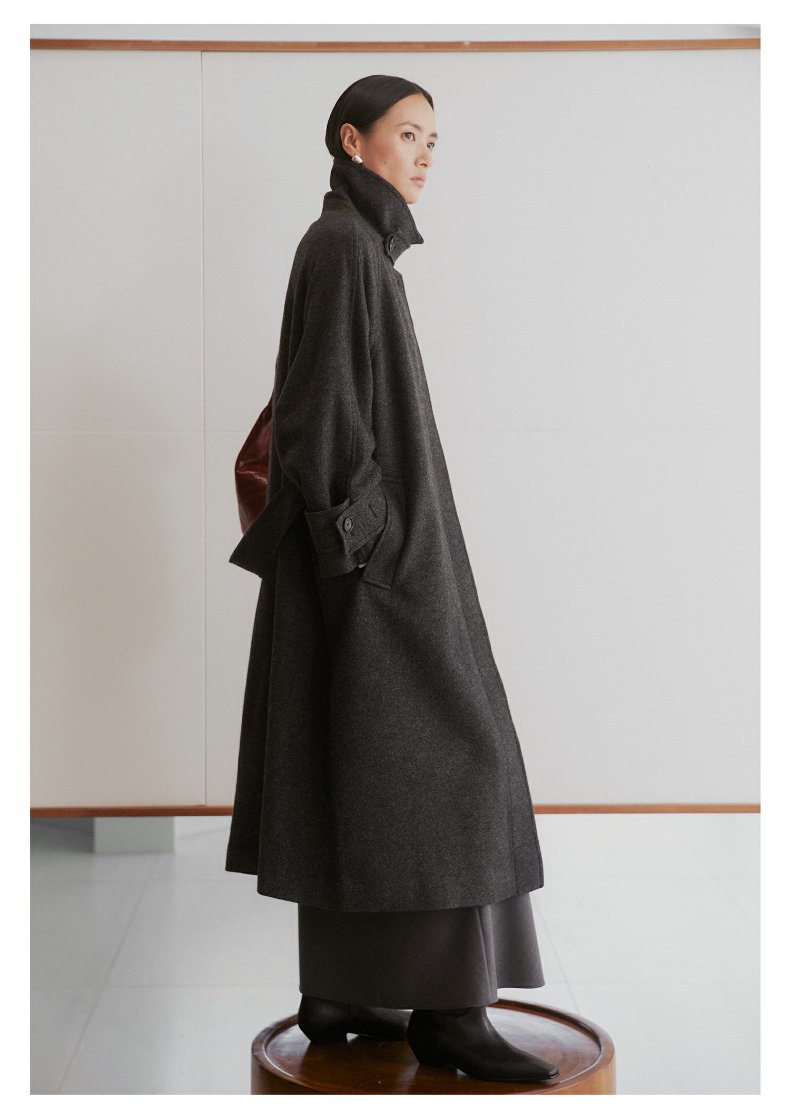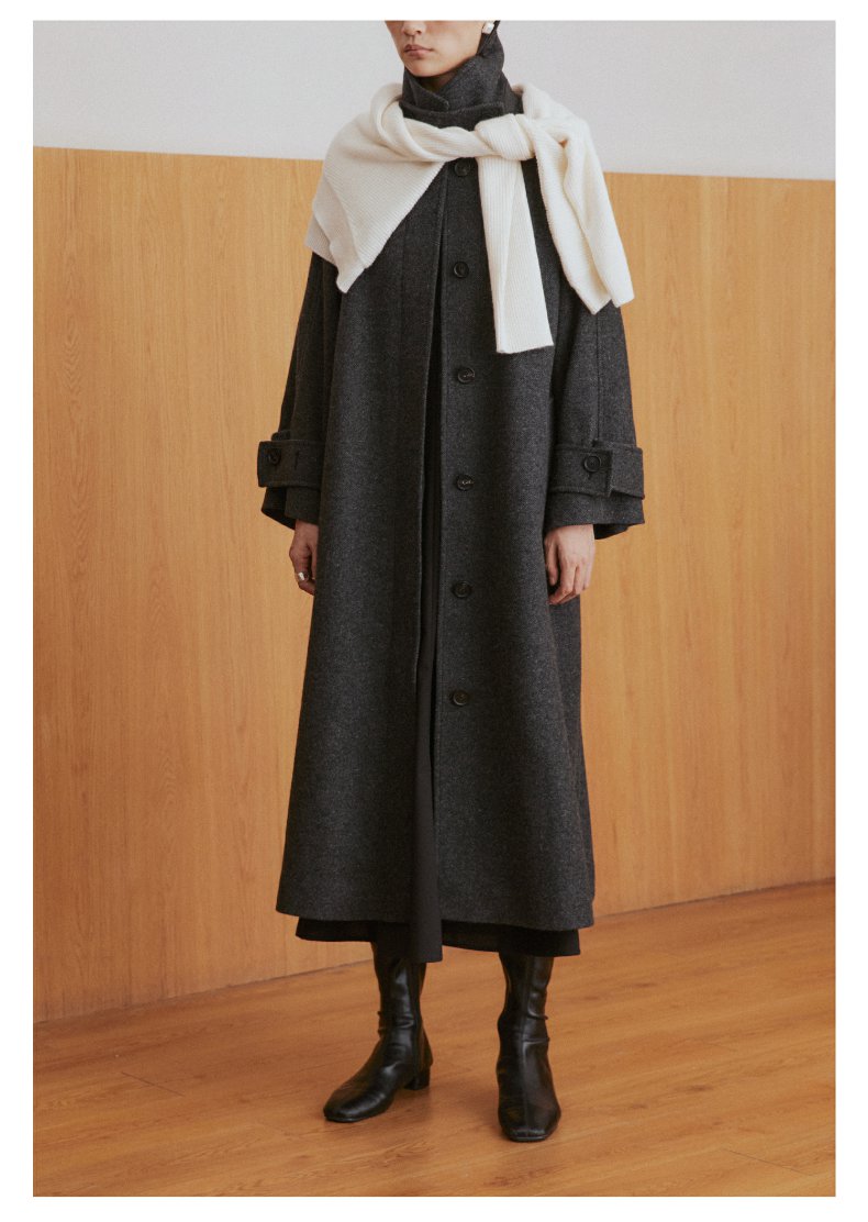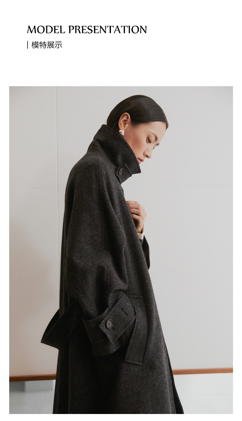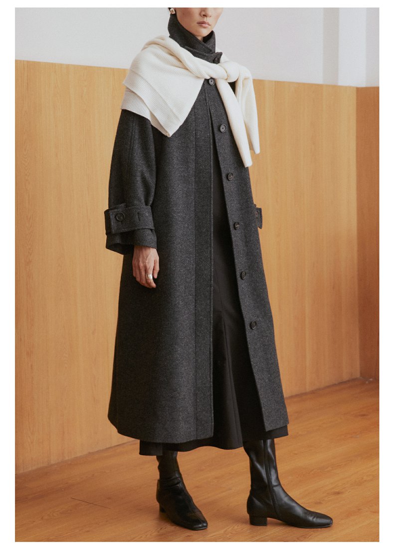棉仓3461566001-秋冬新品鱿鱼大衣 长款单排扣羊毛毛呢保暖外套