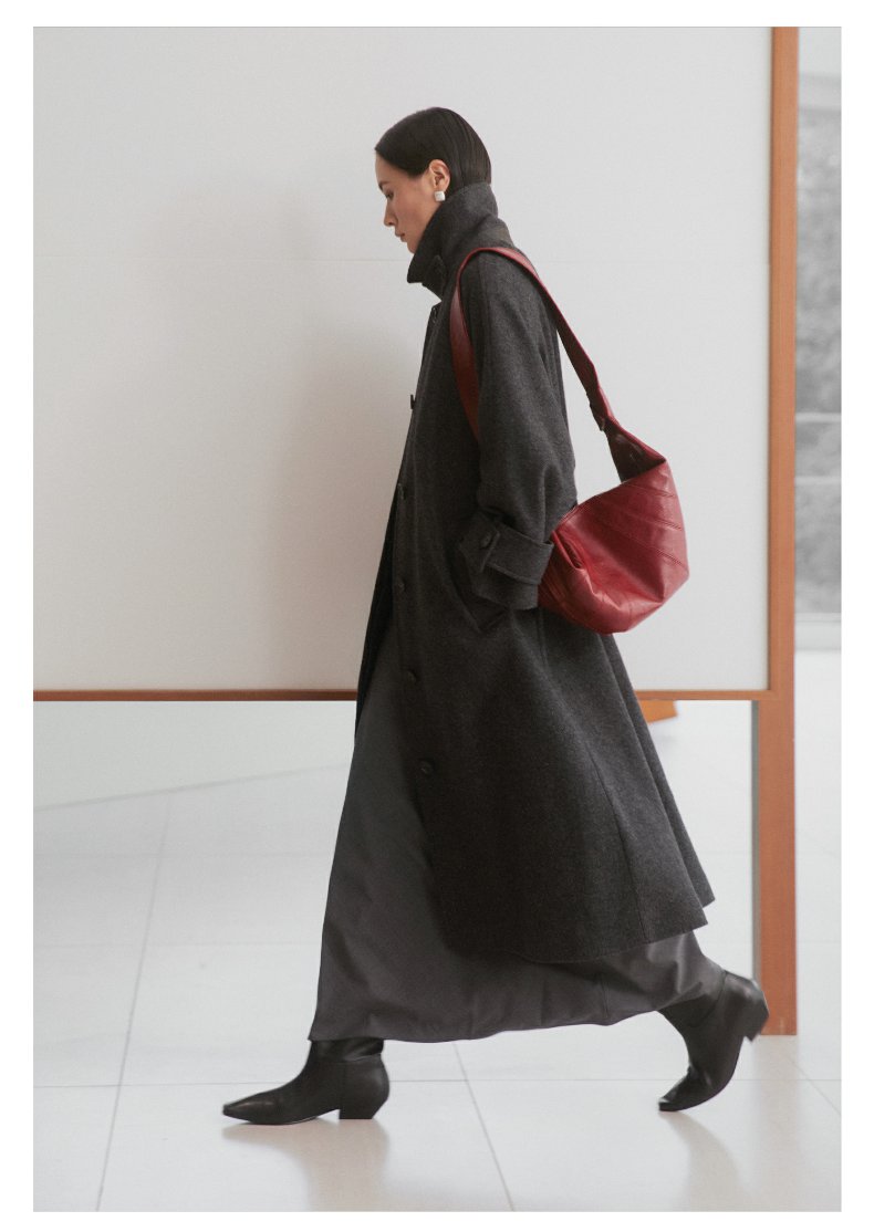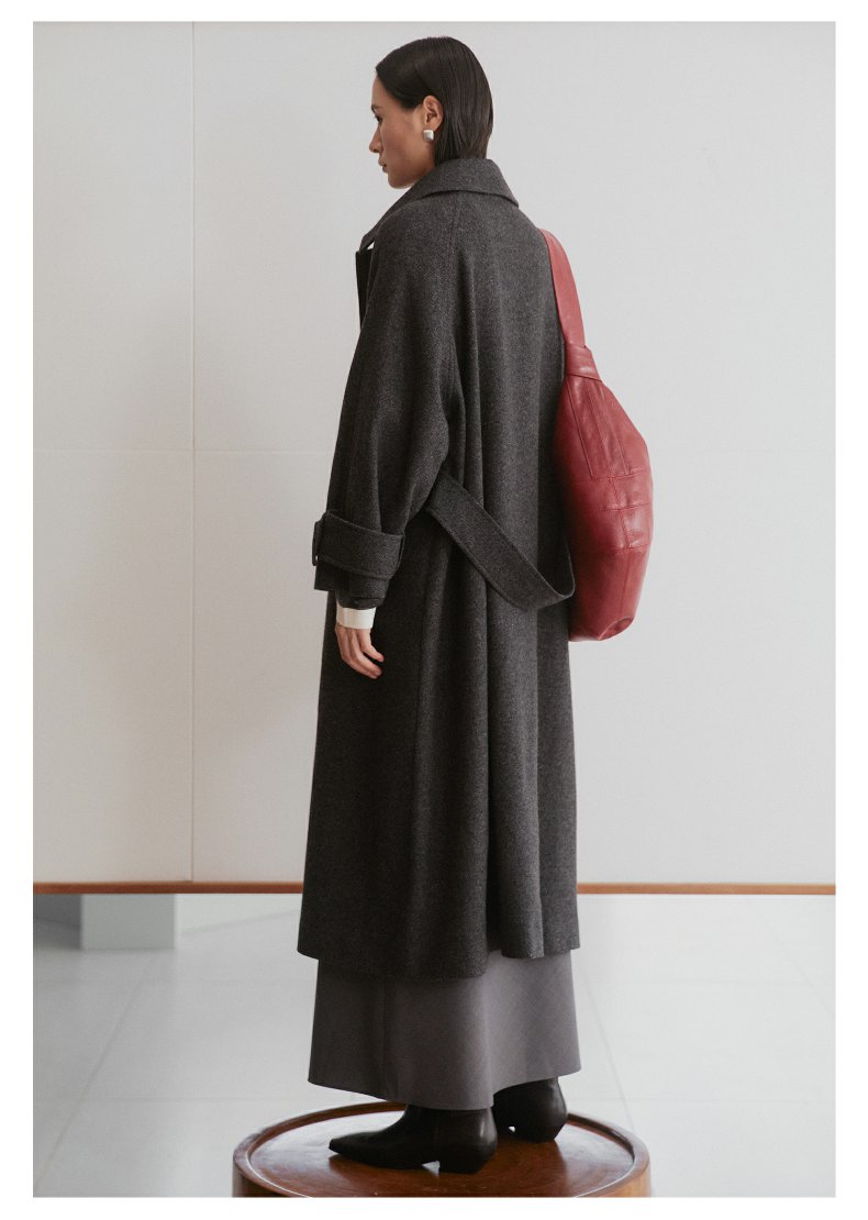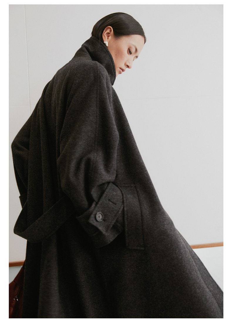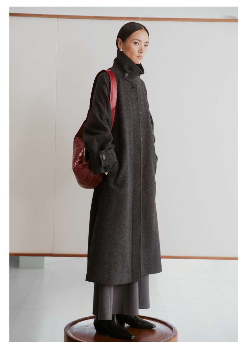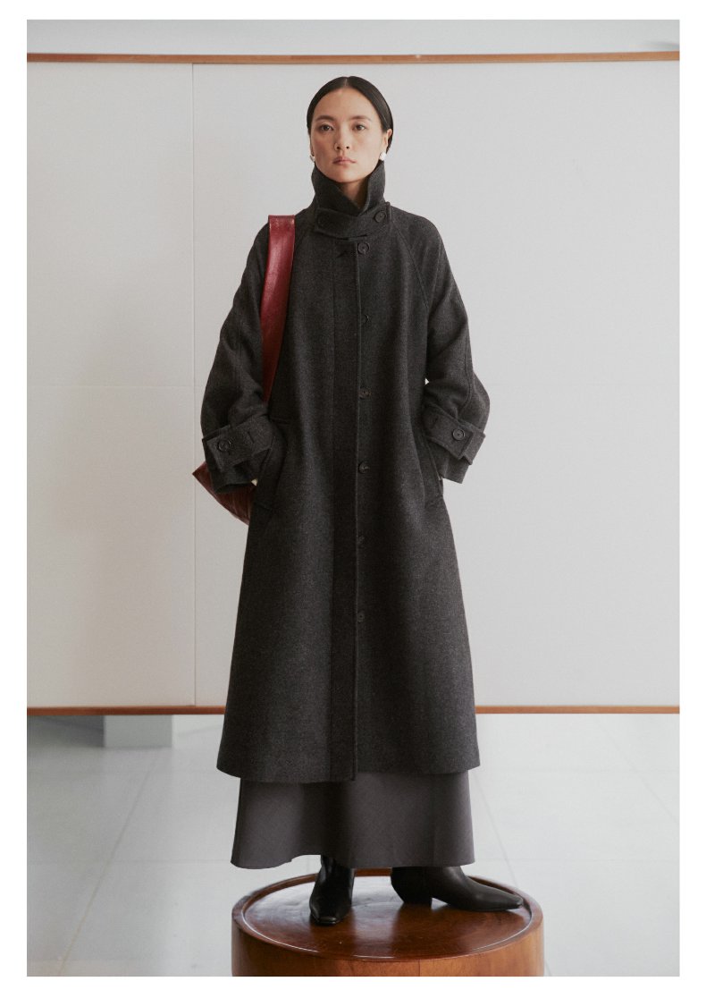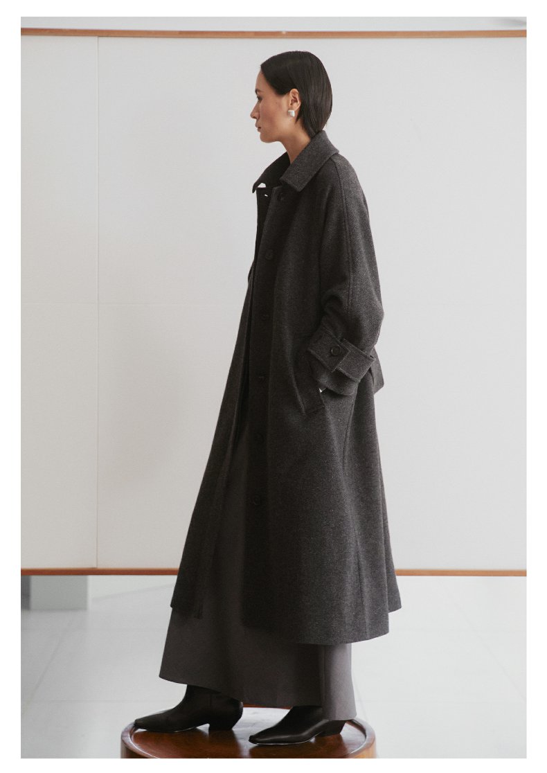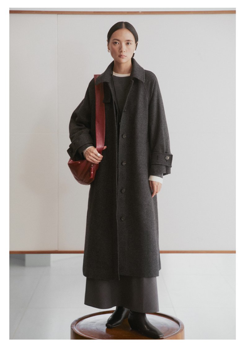 棉仓3461566001-秋冬新品鱿鱼大衣 长款单排扣羊毛毛呢保暖外套