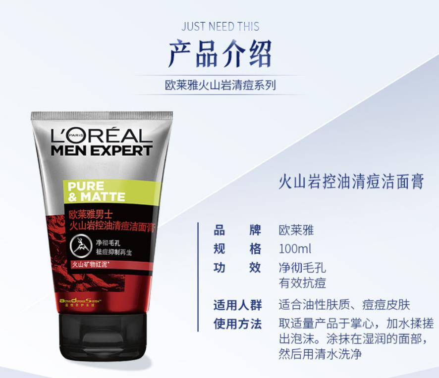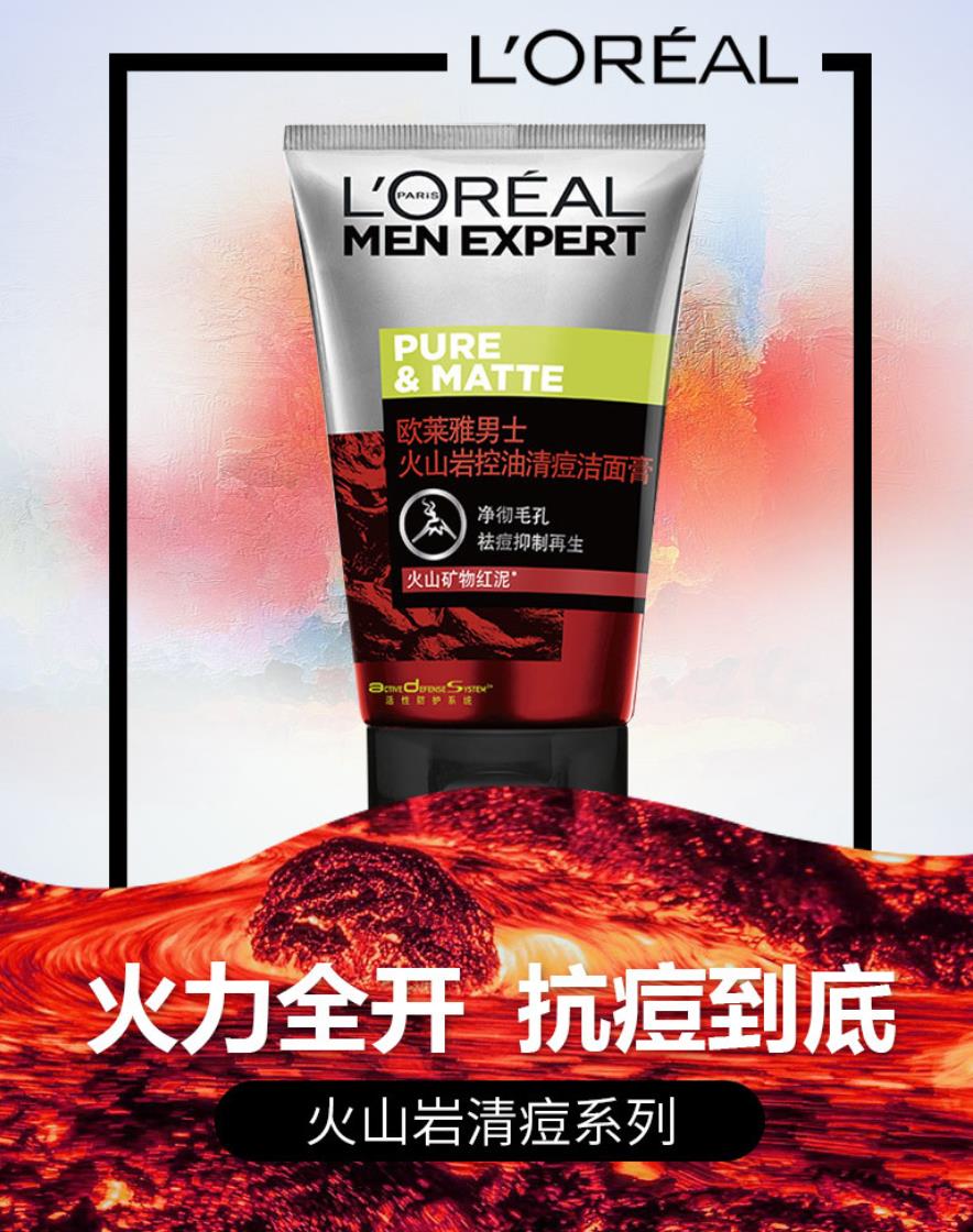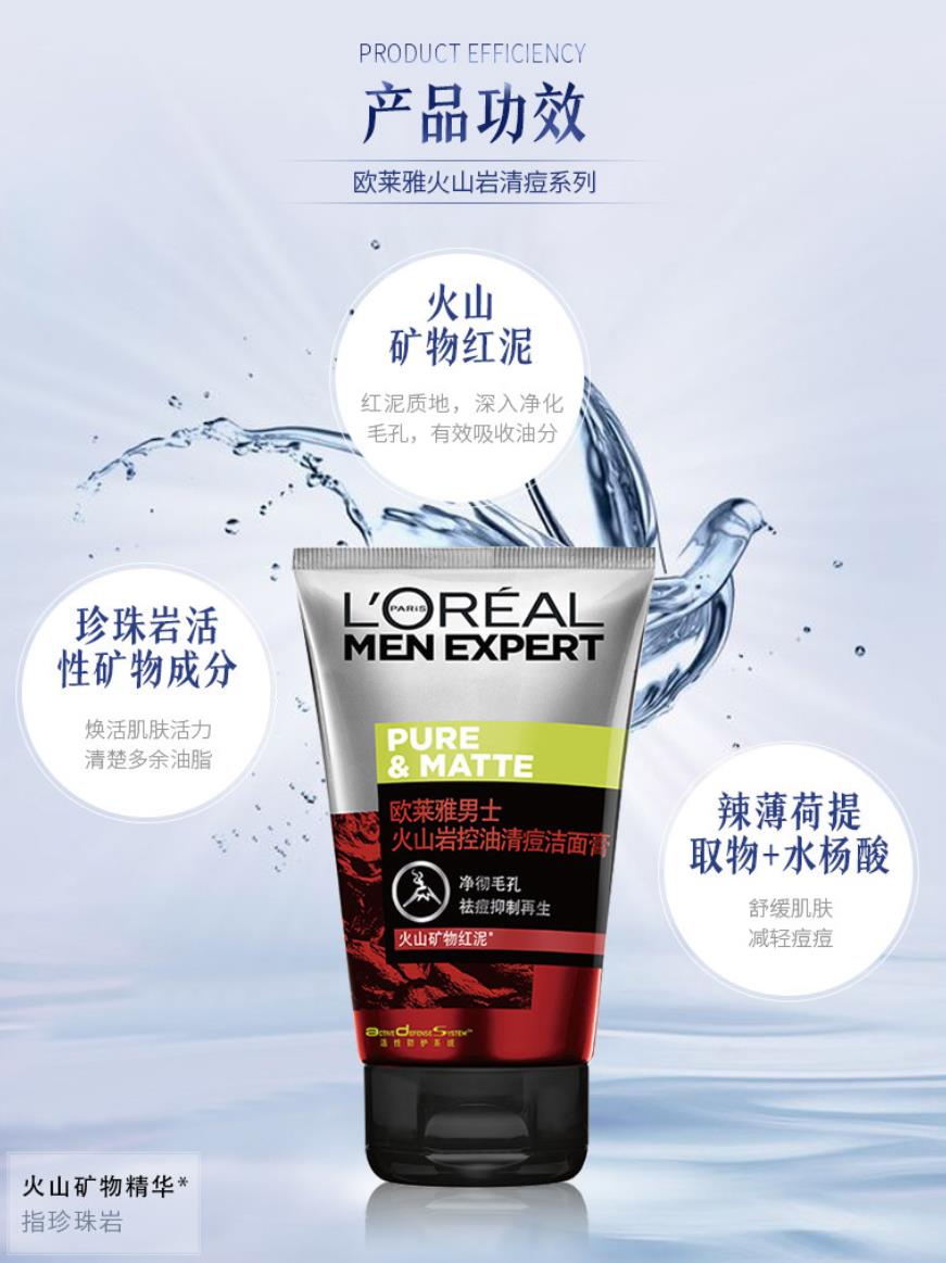 【美妆个护】*欧莱雅男士火山岩控油洗面奶清洁毛孔100ml