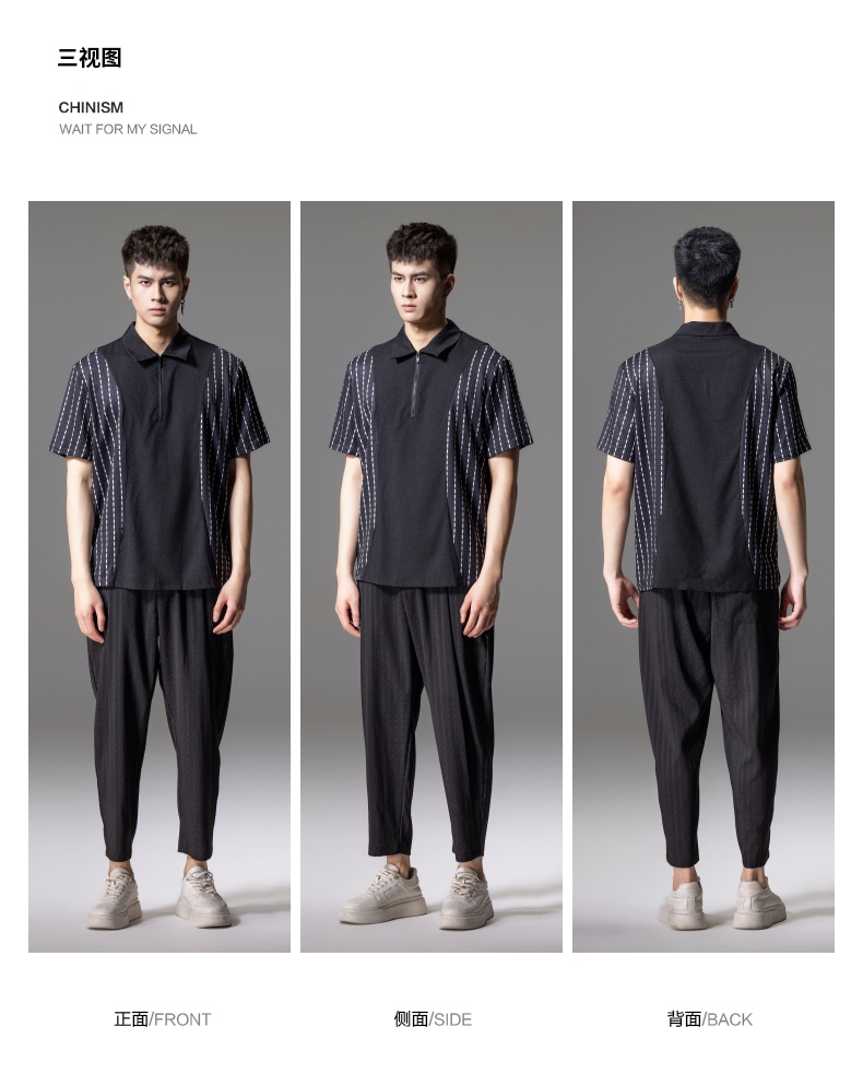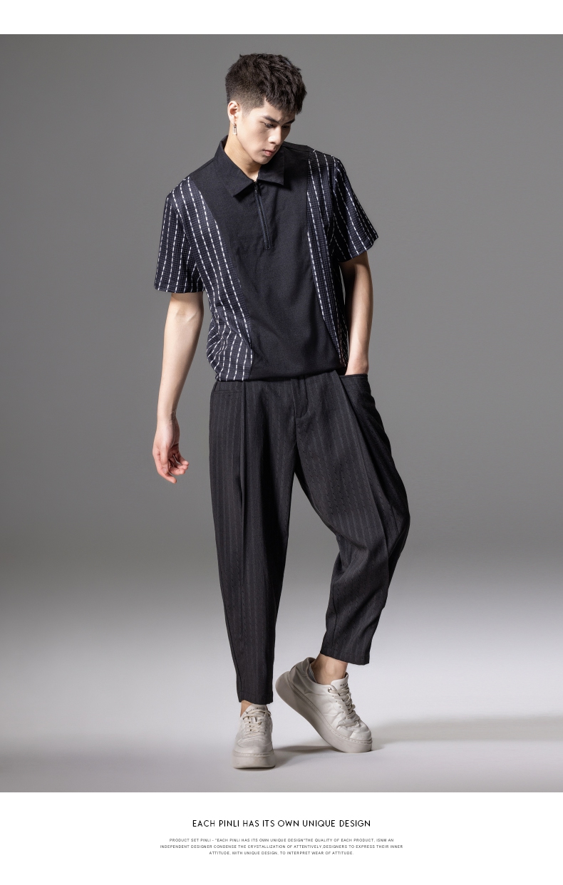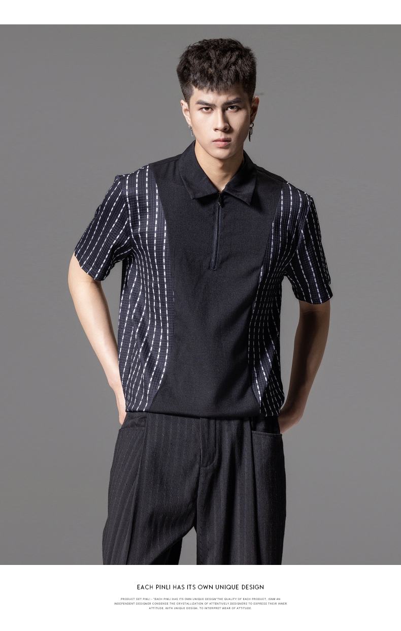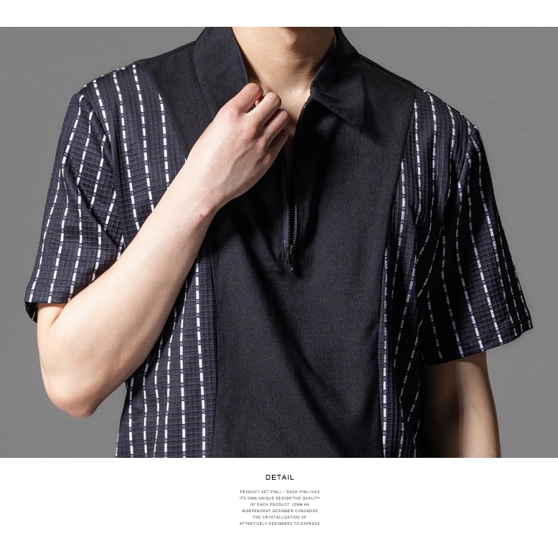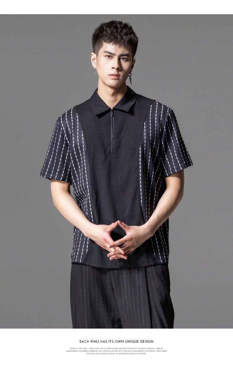 PINLI品立夏季新款斑马纹印花短袖POLO衫潮男拼接翻领休闲T恤B242112090