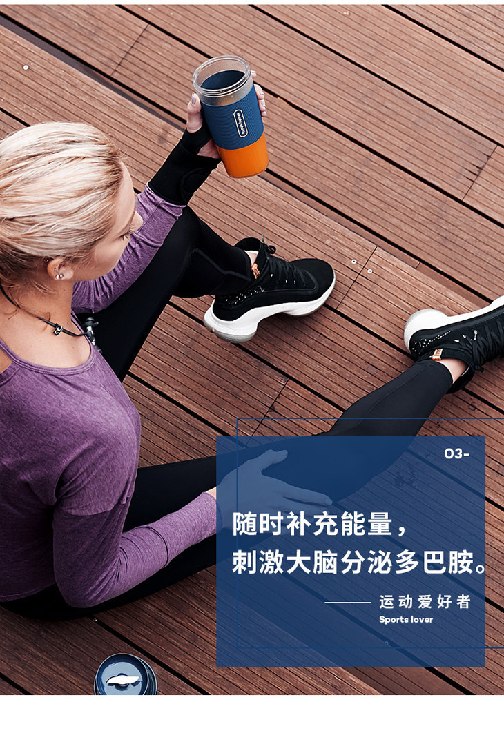 1. 它跟我们常见的家用榨汁机不一样,属于便携式水杯型,跟普通水杯一样大小,超适合随身出门携带;