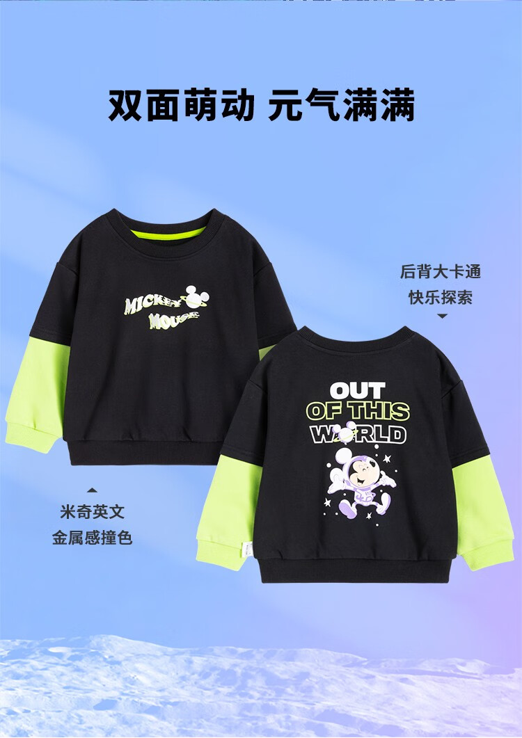 【商场同款】迪士尼童装男童假两件套头卫衣中大童春秋宇航员米奇卡通潮搭上衣