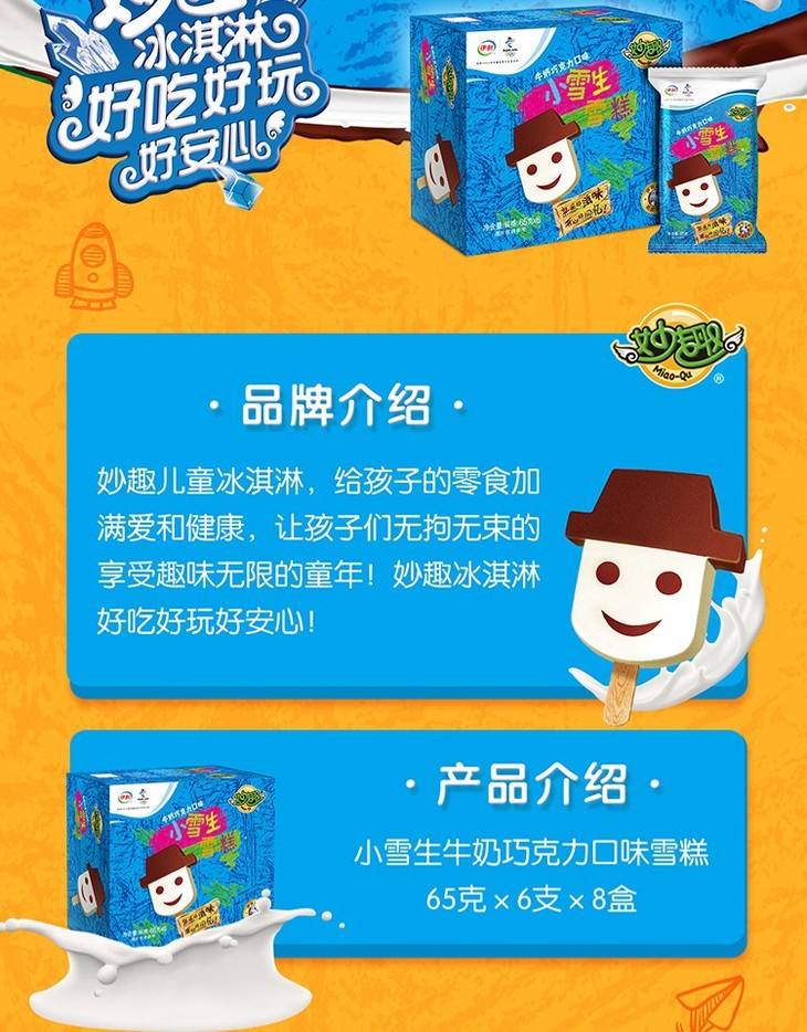 伊利妙趣小雪生娃娃雪糕牛奶巧克力味花脸 冰淇淋65g/袋冰糕批发