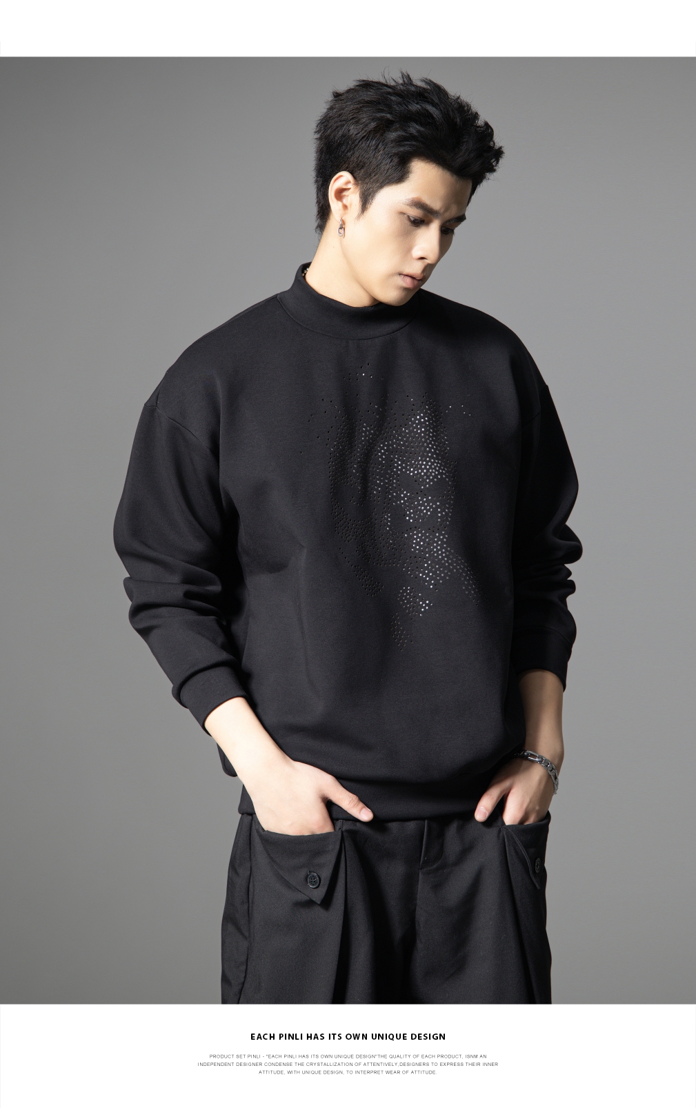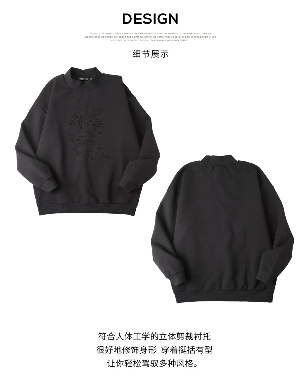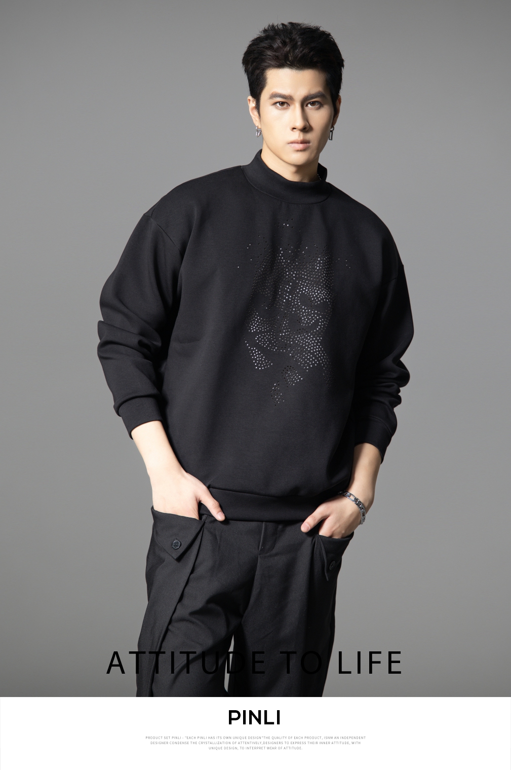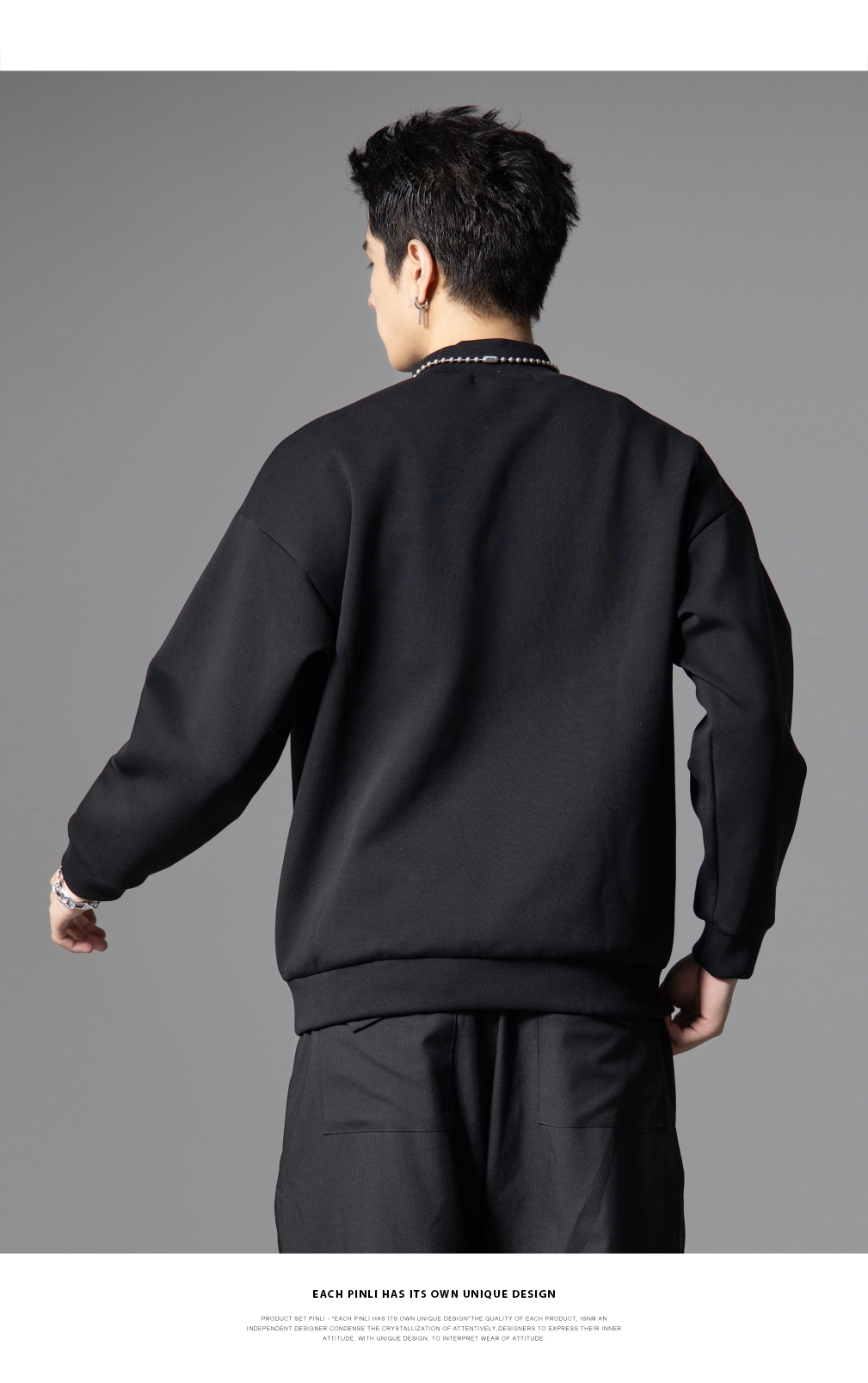 PINLI品立2025秋季新款烧花镂空套头卫衣潮男宽松休闲空气层上衣B253109045