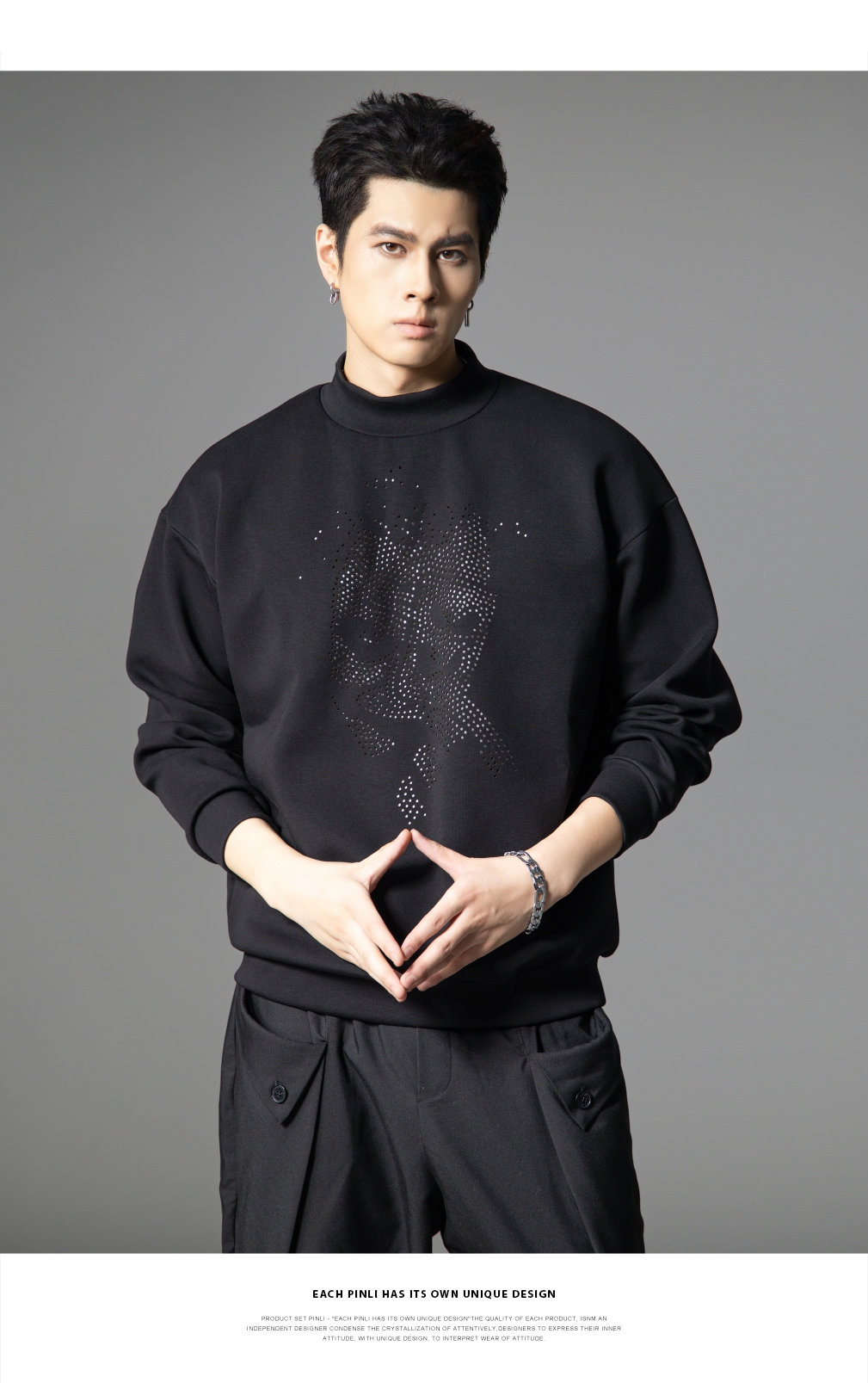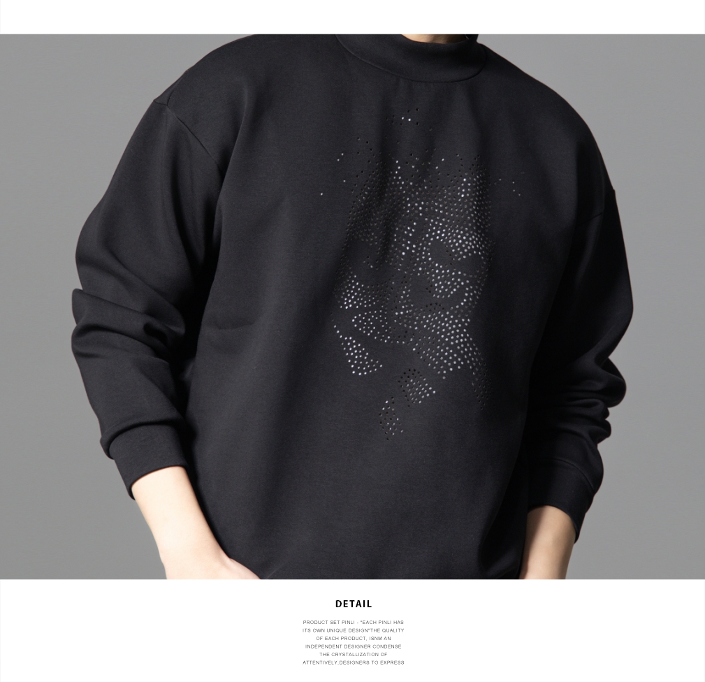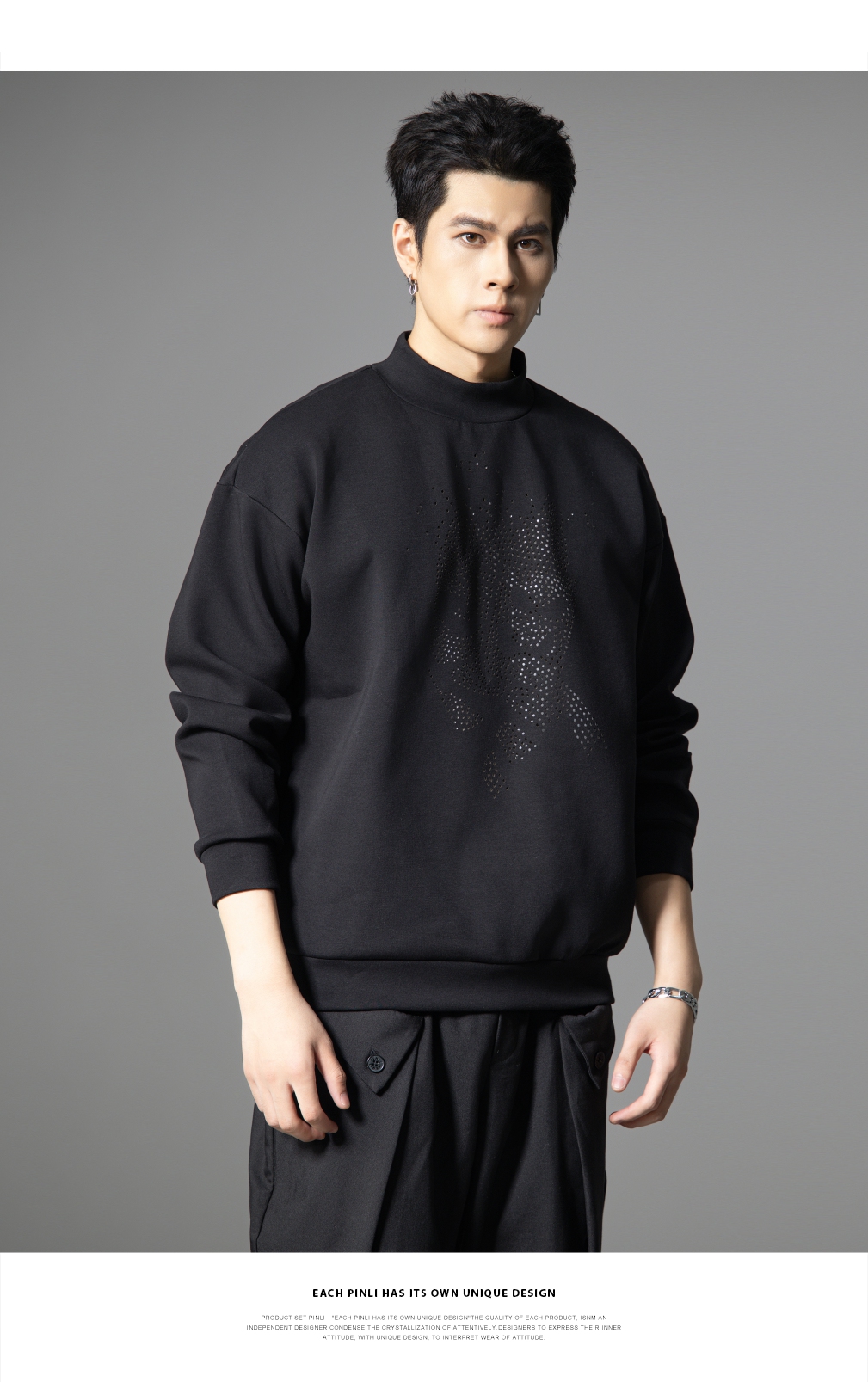 PINLI品立2025秋季新款烧花镂空套头卫衣潮男宽松休闲空气层上衣B253109045