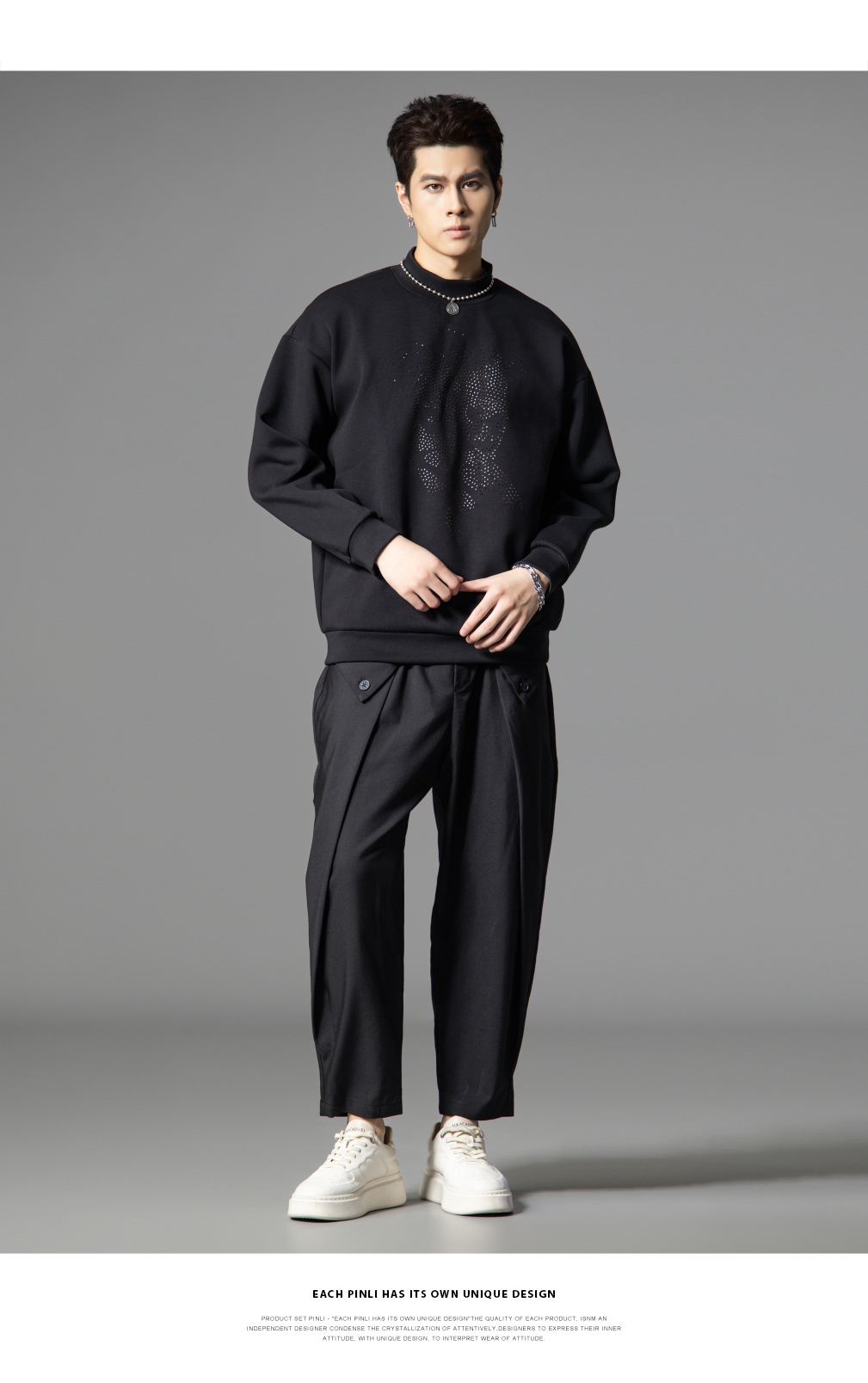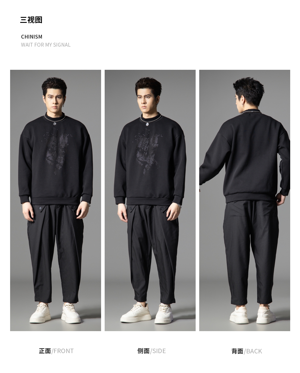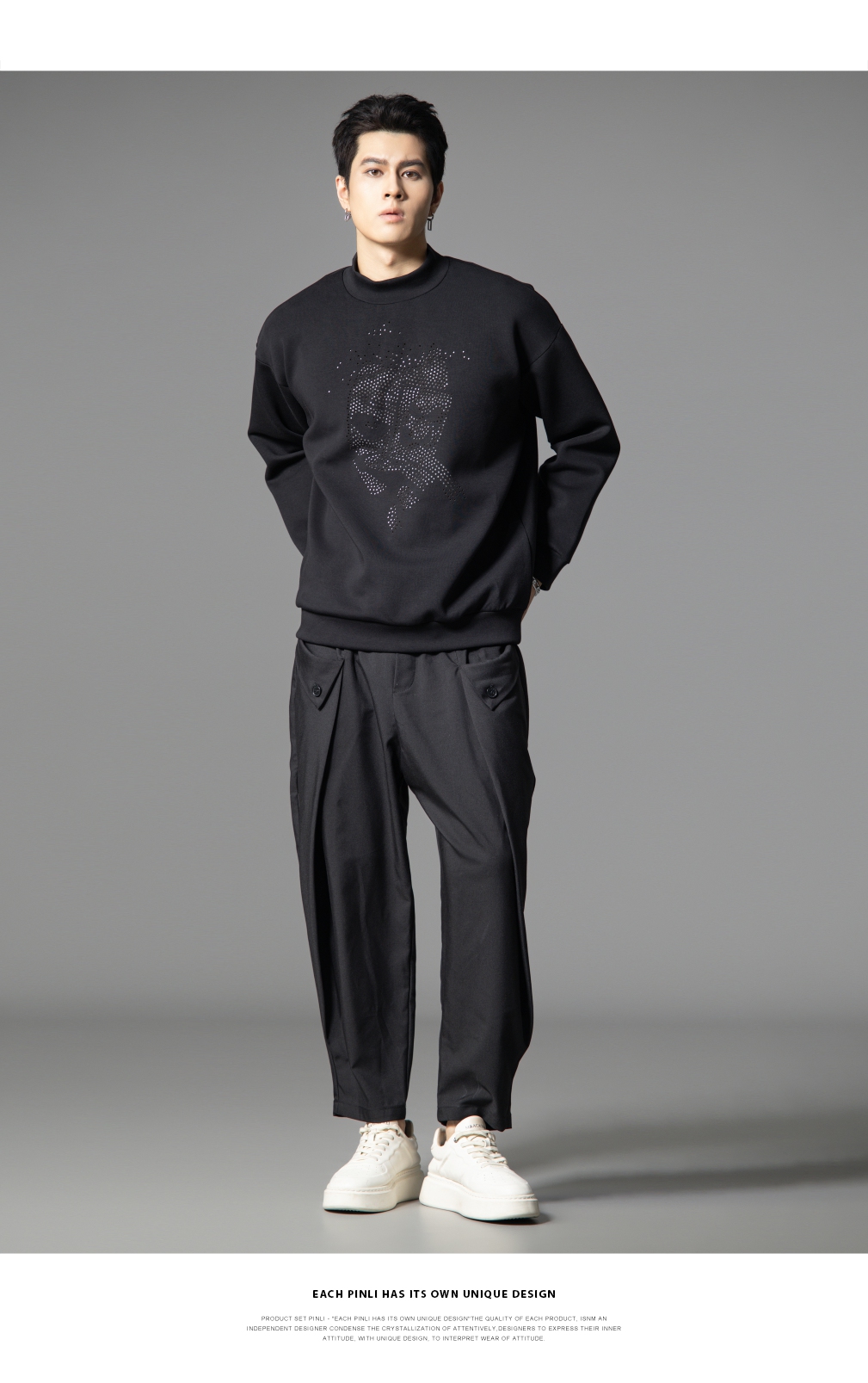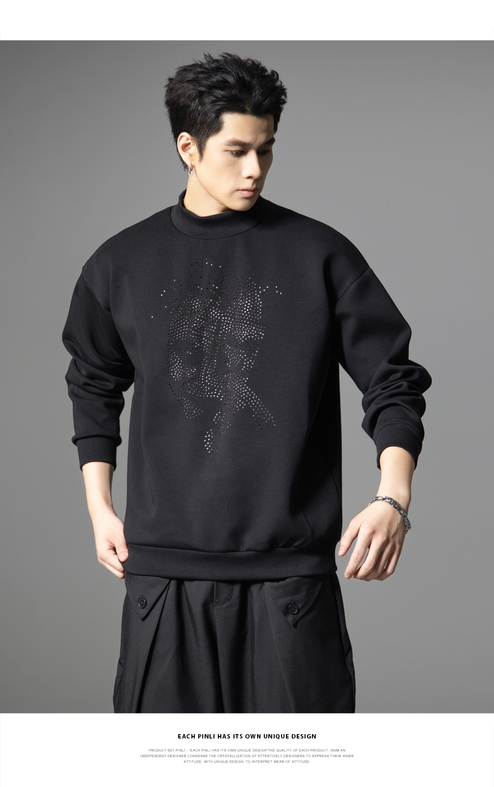PINLI品立2025秋季新款烧花镂空套头卫衣潮男宽松休闲空气层上衣B253109045