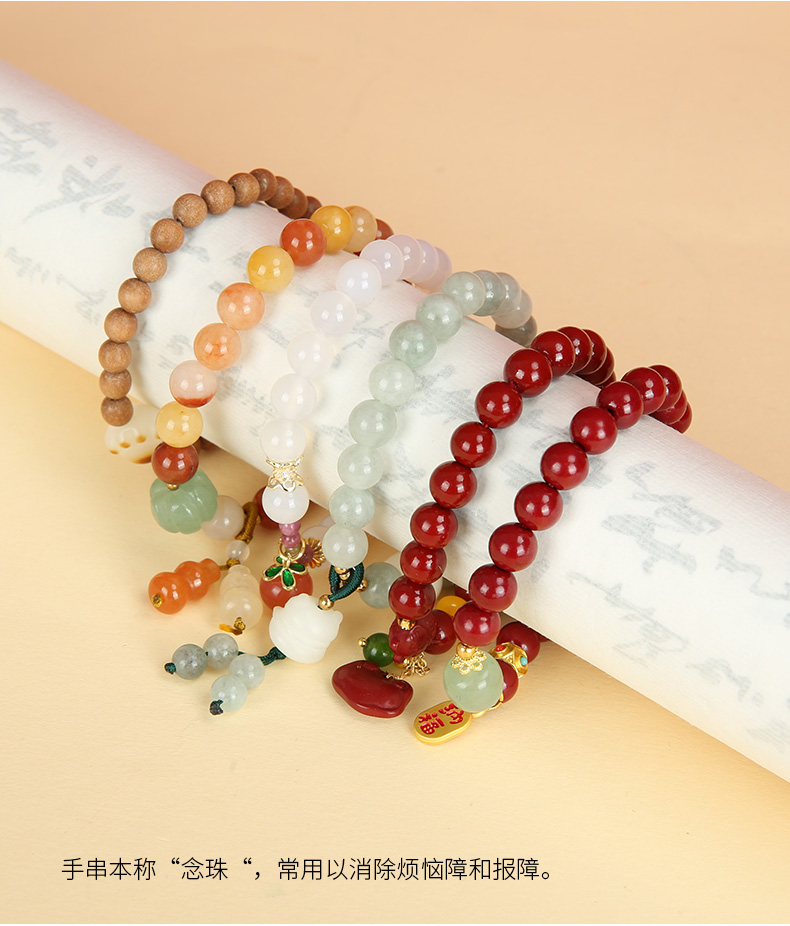 西泠印社 金丝玉手串/猫爪檀香木/白玛瑙手串/猫爪翡翠石手串/如意锁朱砂手串/转运珠朱砂手串
