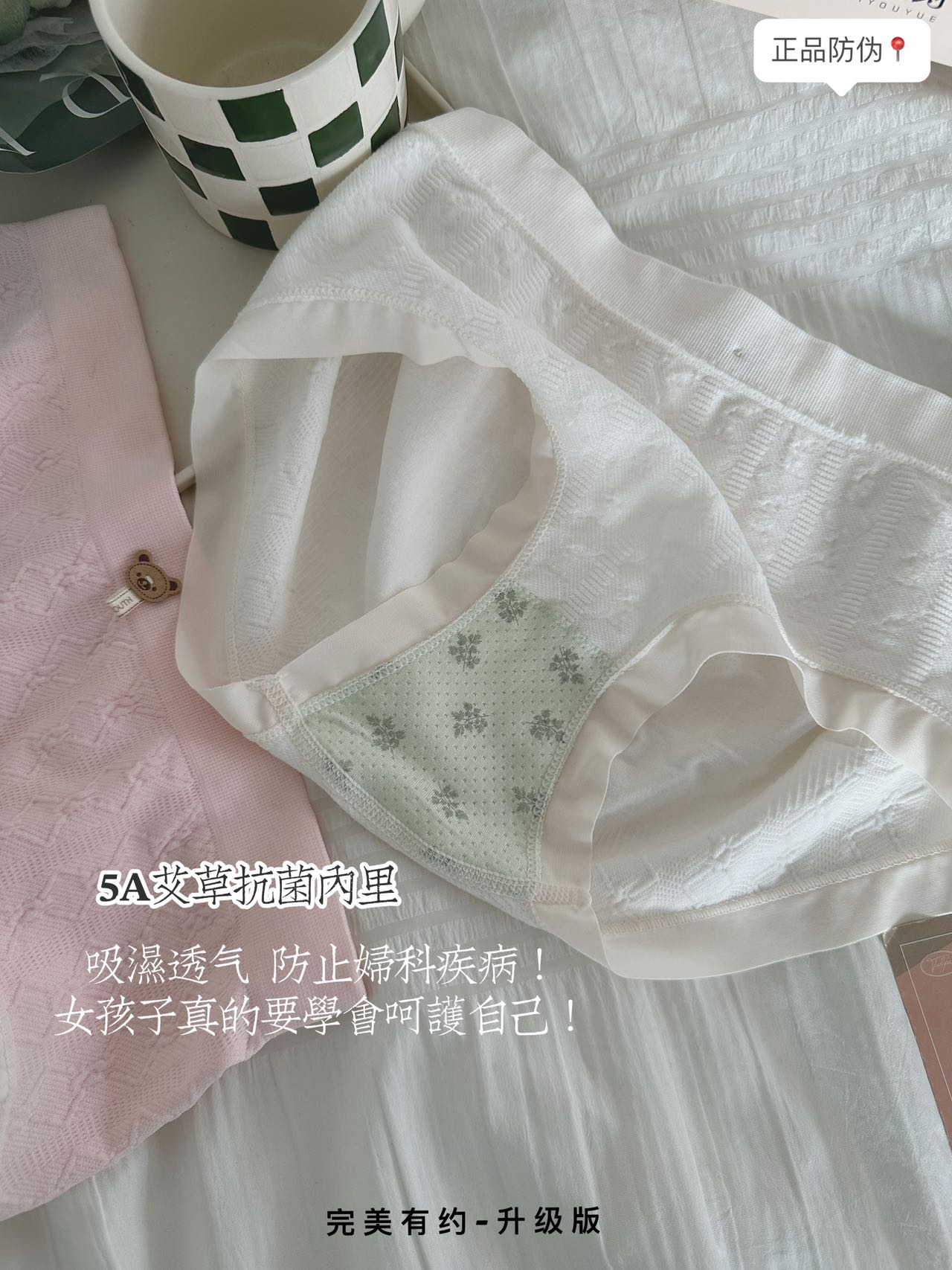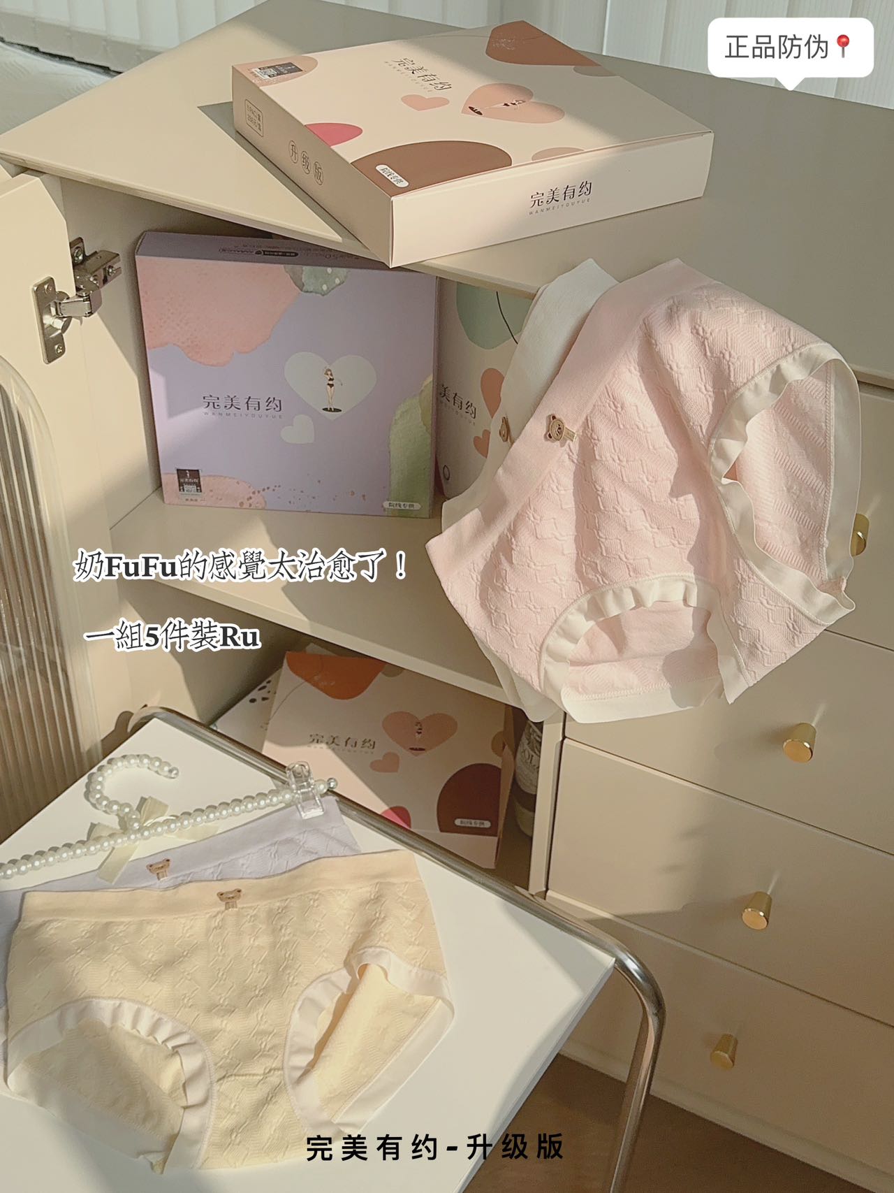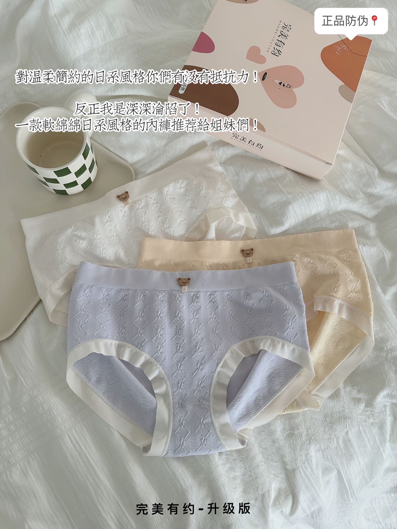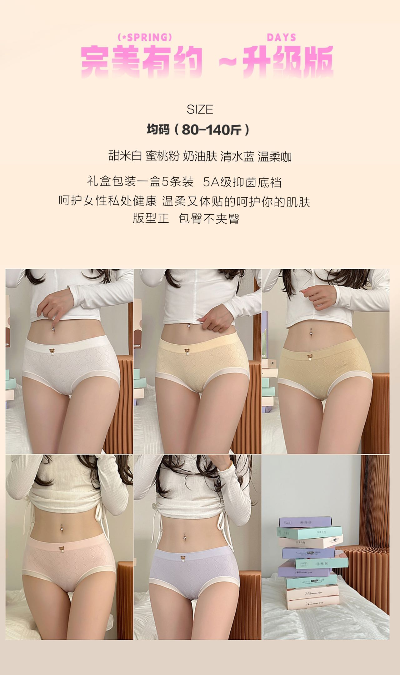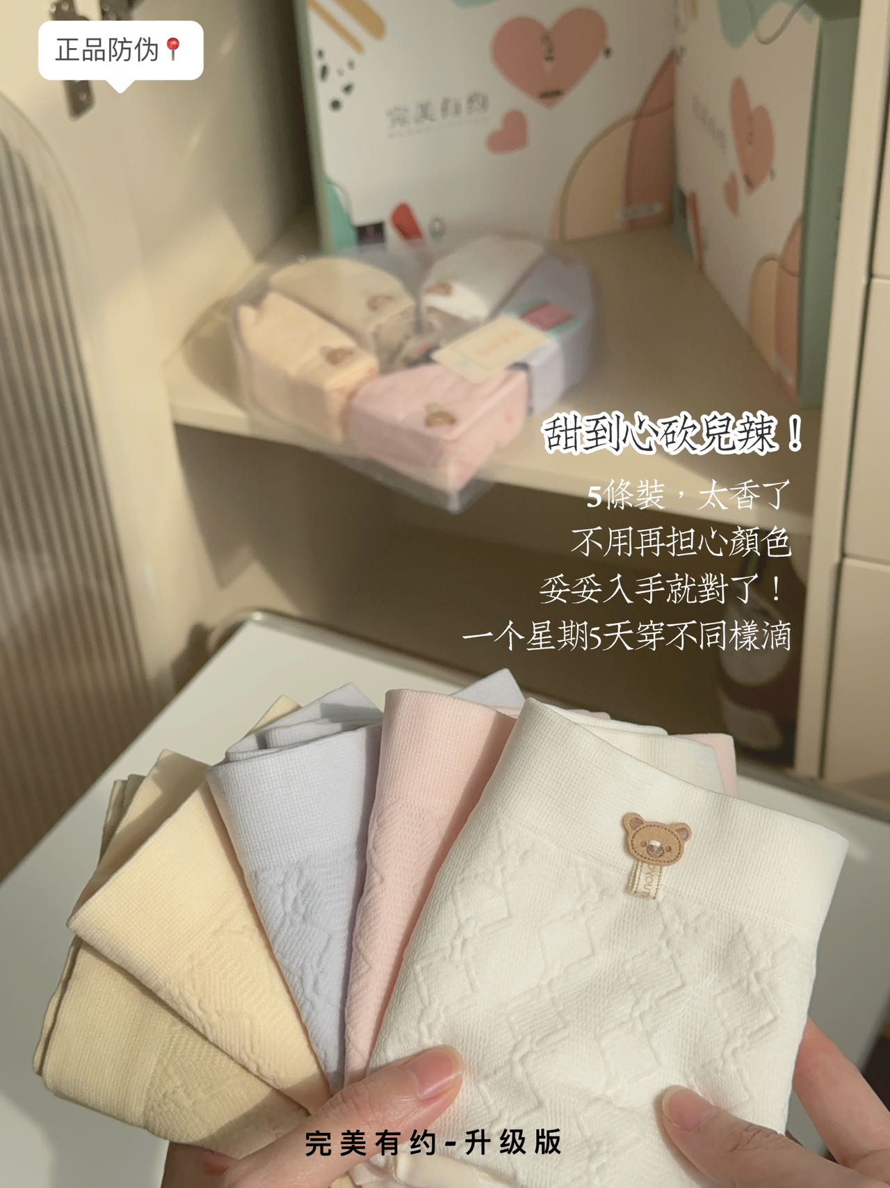完美有约-升级版艾草小熊内裤 日系甜美少女感 艾草5A级抑箘底裆 高弹包臀 5条装/盒礼盒装