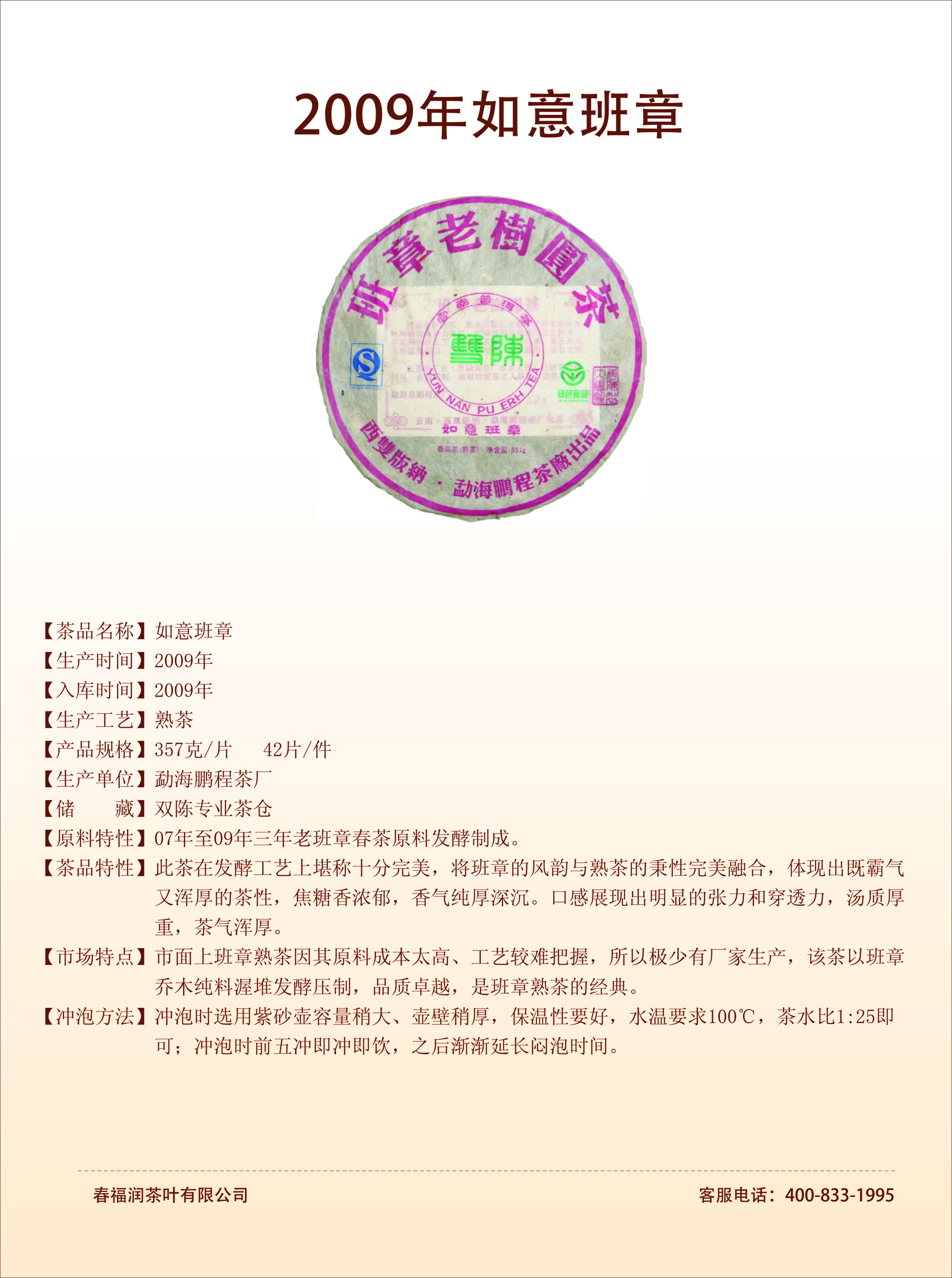 2009年如意班章圆茶(熟茶)