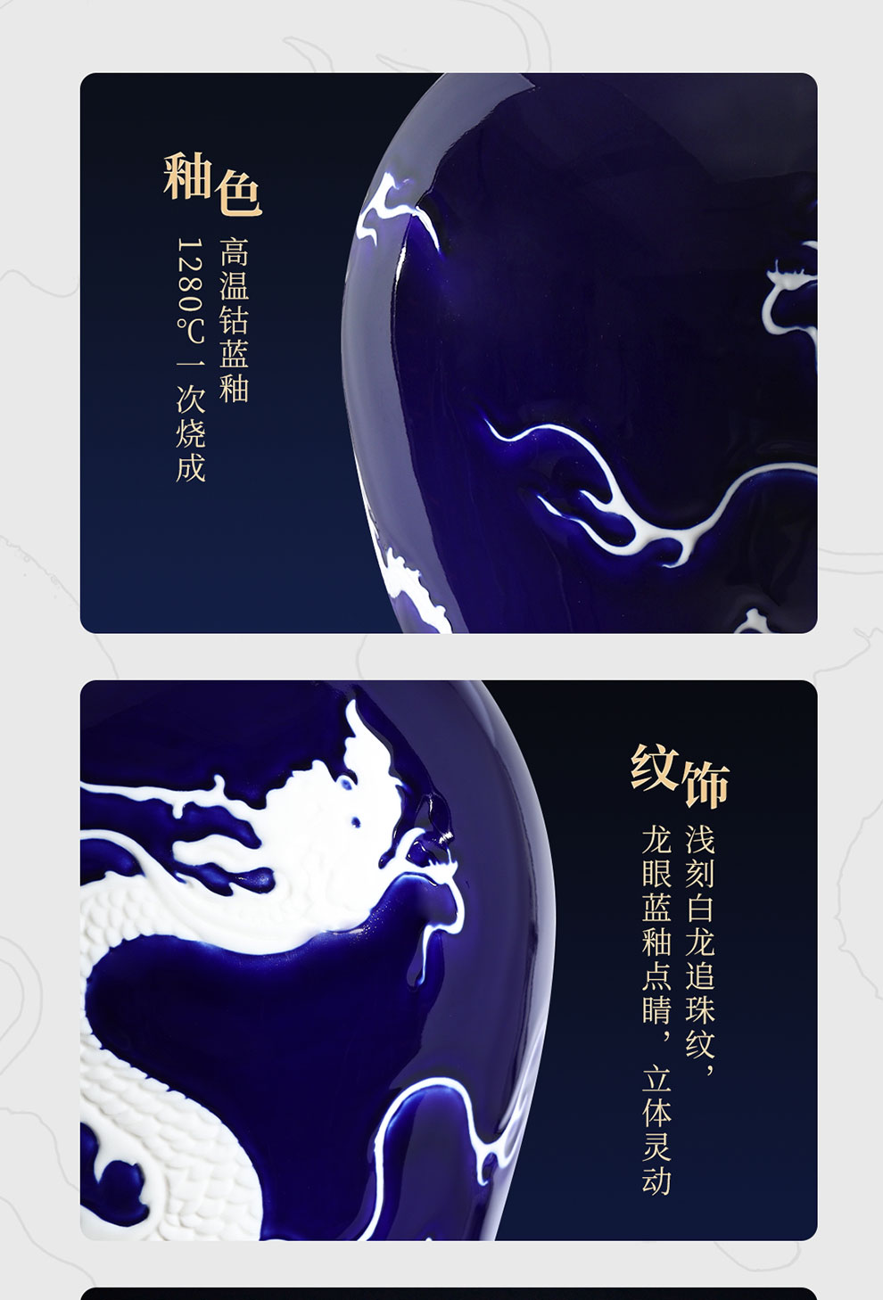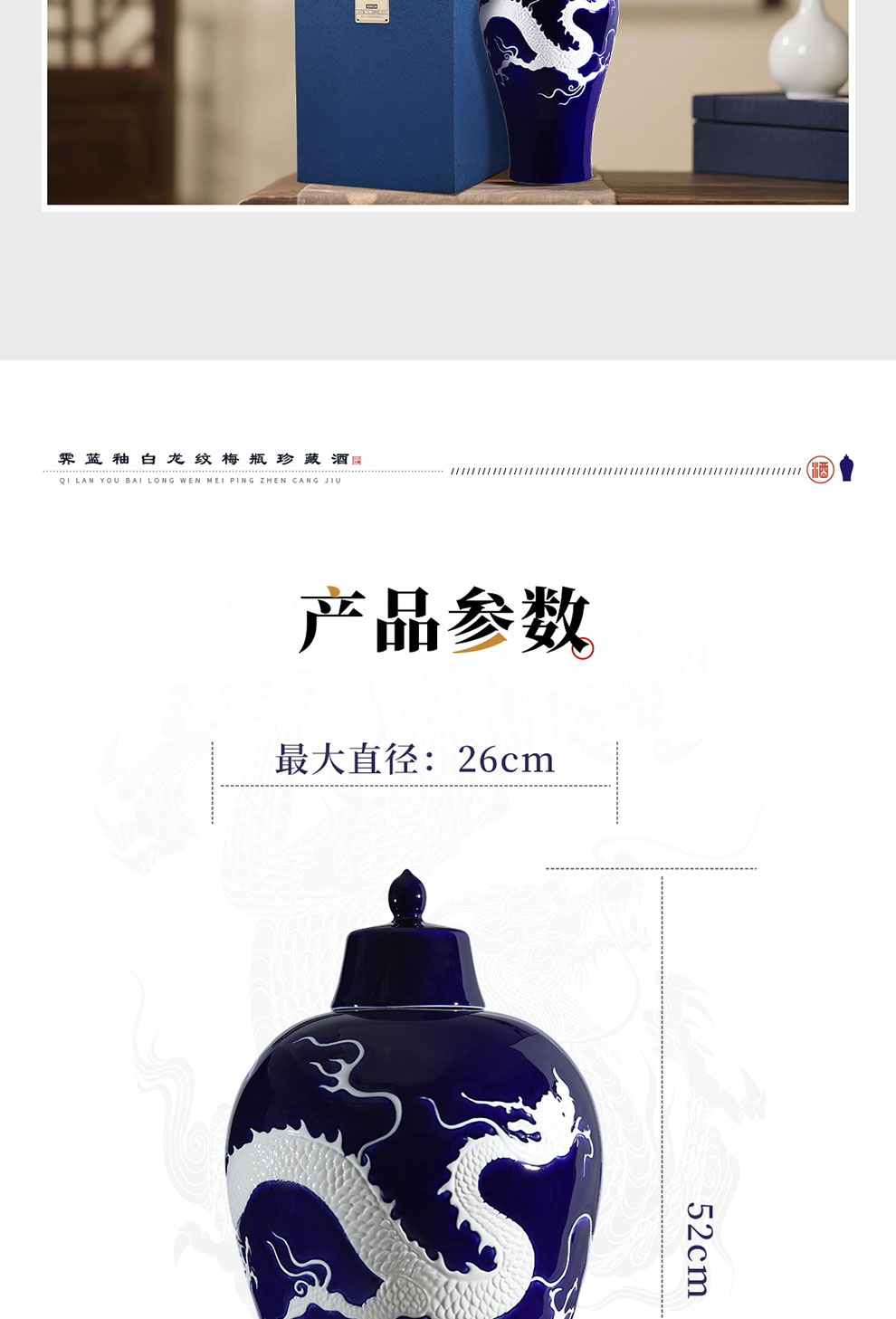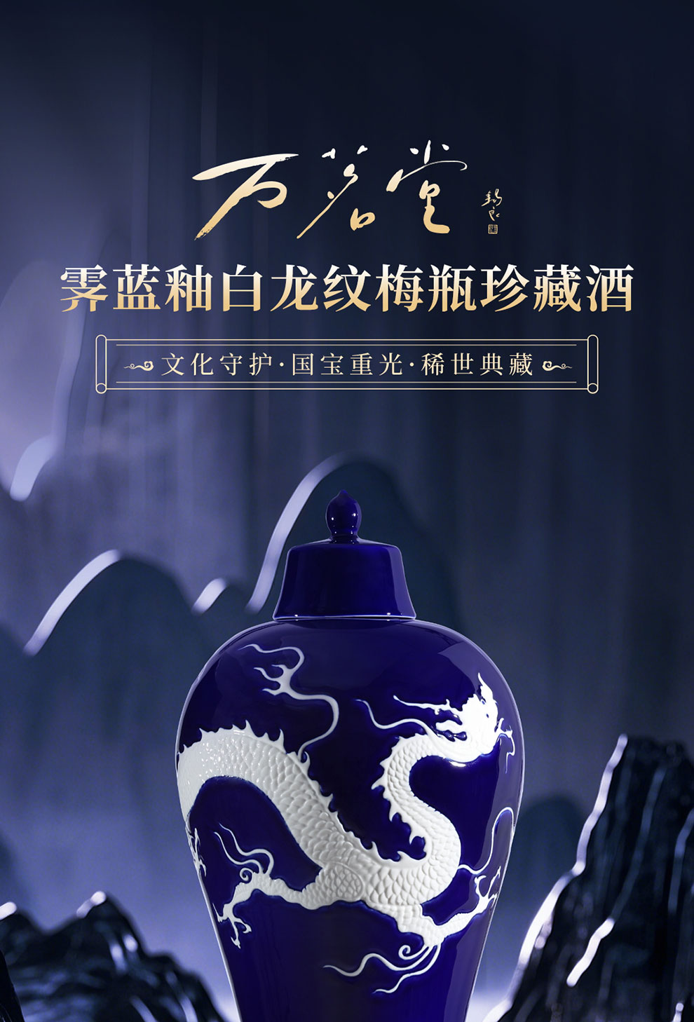 霁蓝釉白龙纹梅瓶珍藏酒 高端文创酒