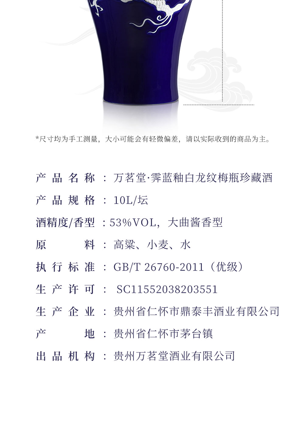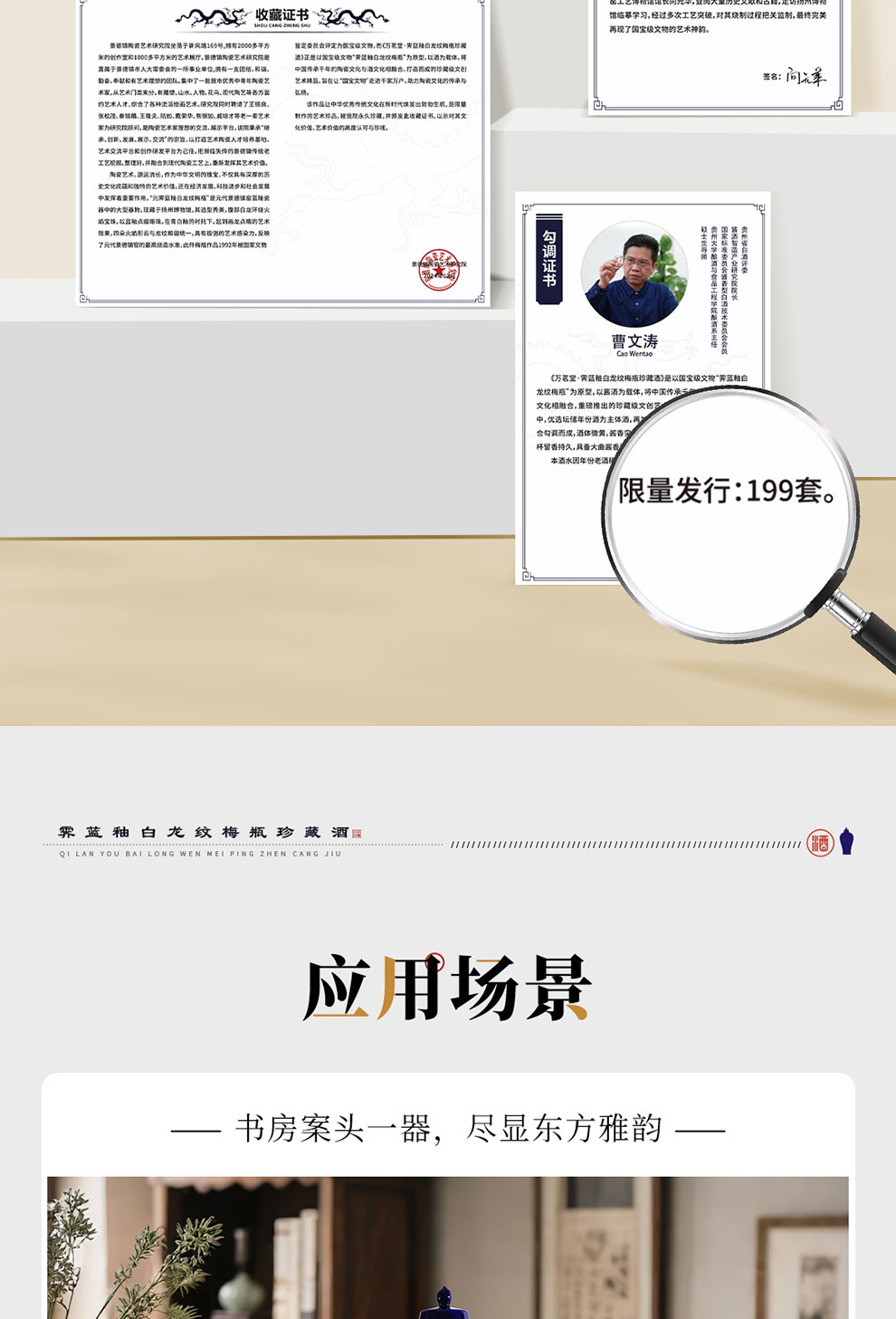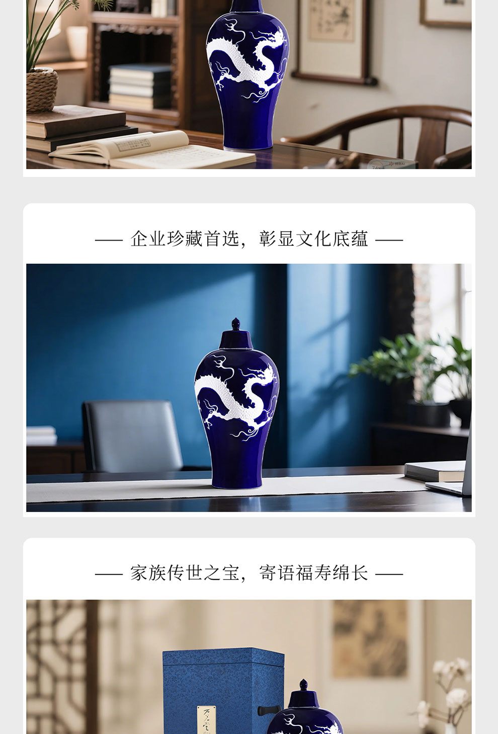 霁蓝釉白龙纹梅瓶珍藏酒 高端文创酒