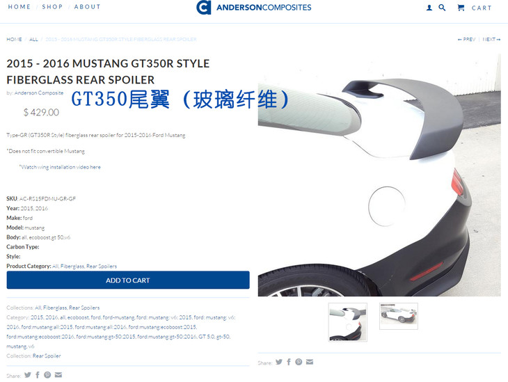 第二款,GT350款尾翼,分真碳纤维和价格亲民的玻璃纤维版本: