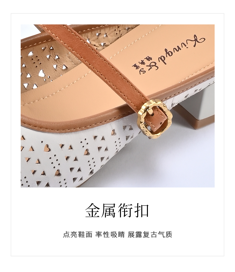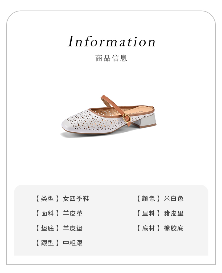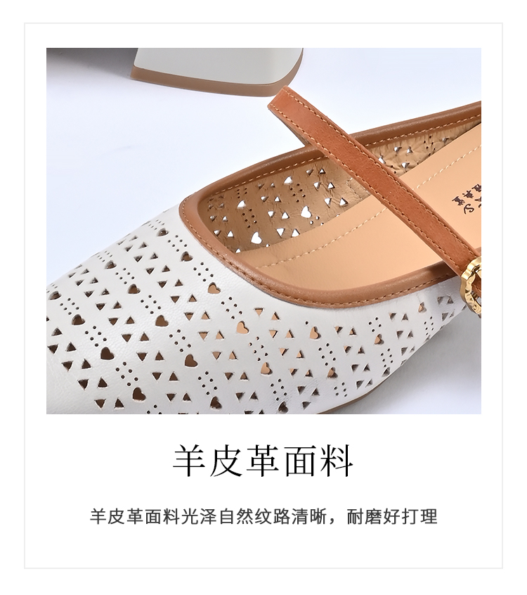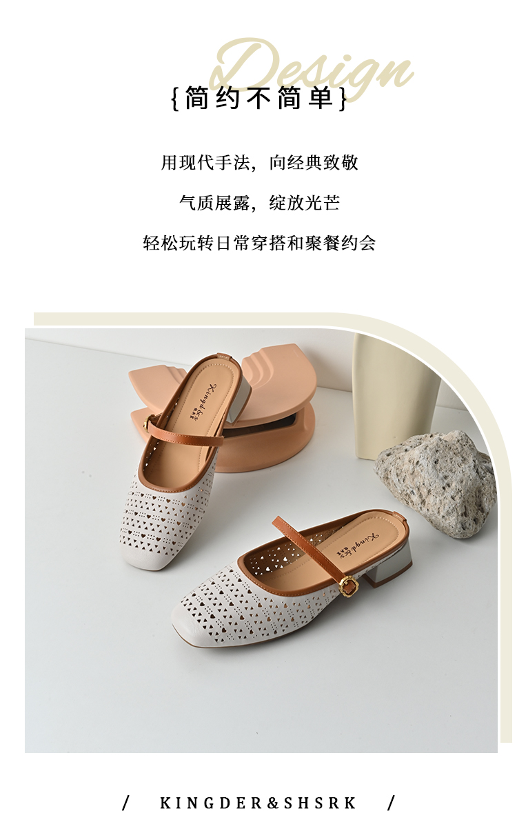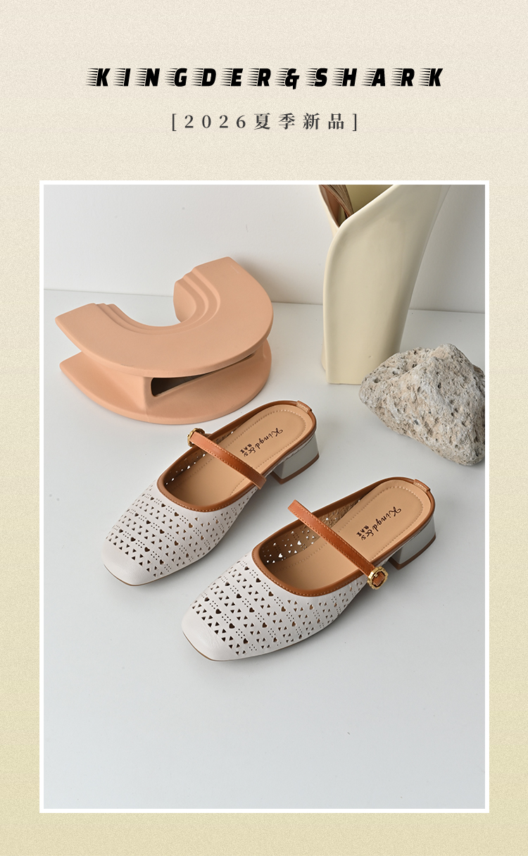 经典鲨2026夏季专柜新品羊皮革镂空中粗跟一脚蹬半托单鞋女KG383-629061
