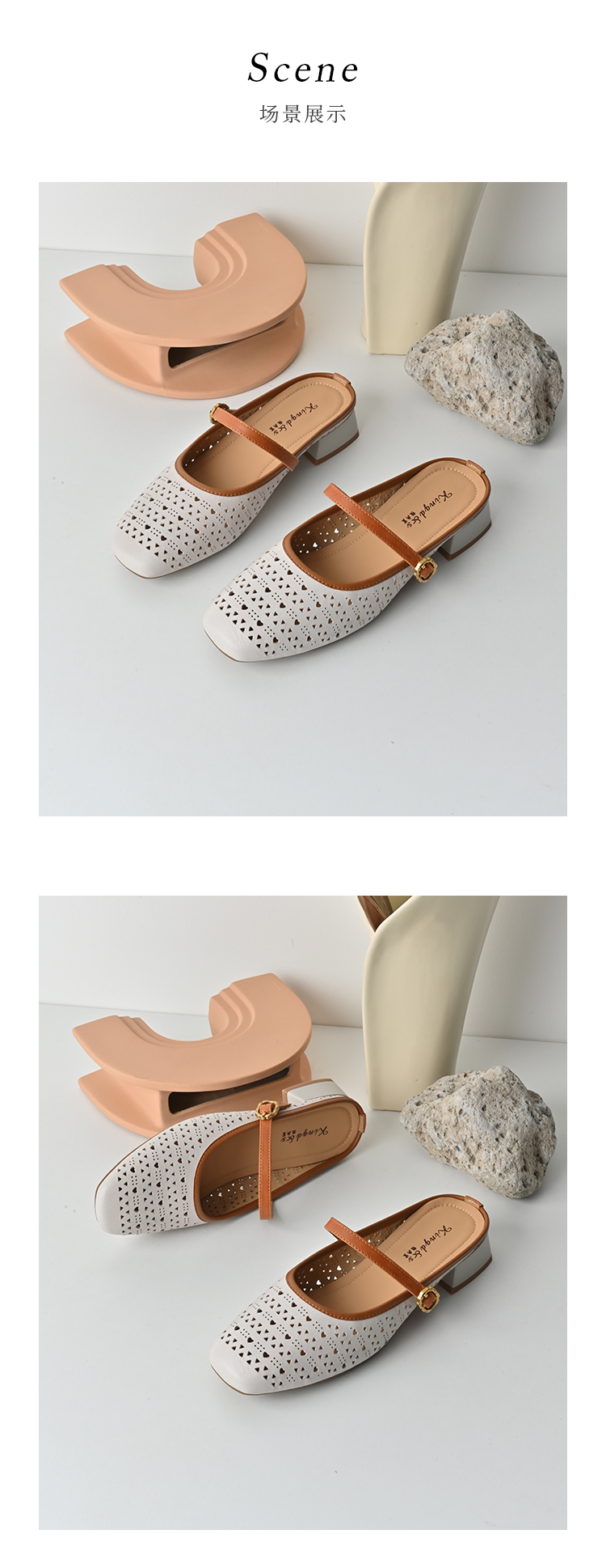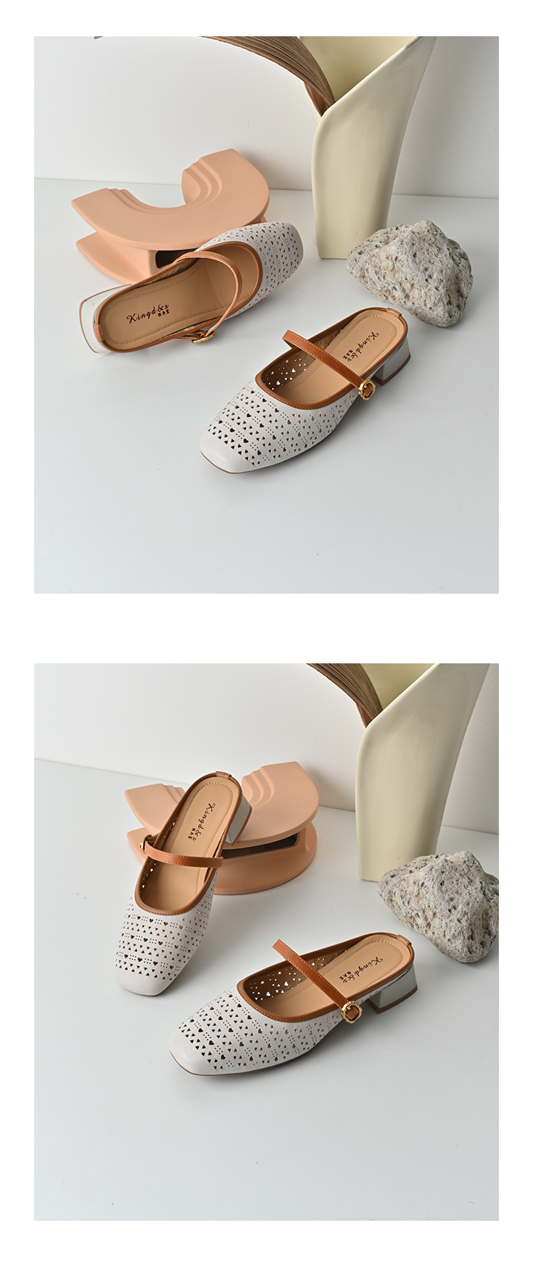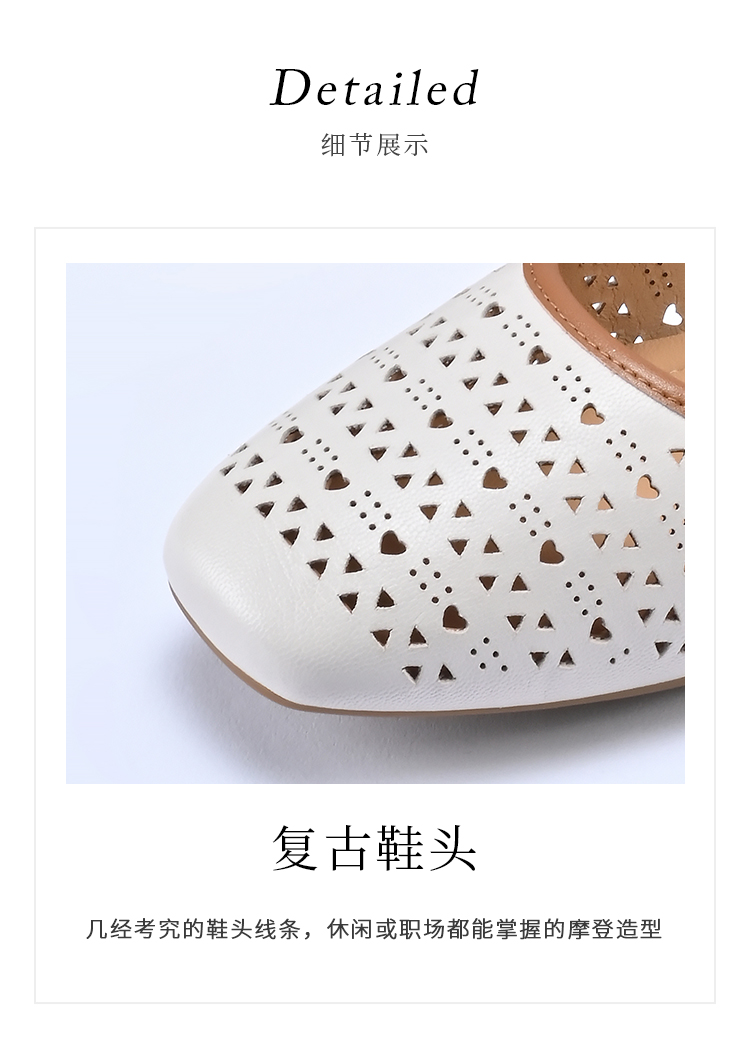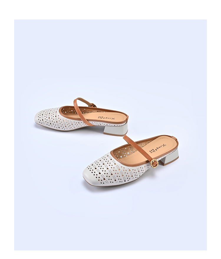 经典鲨2026夏季专柜新品羊皮革镂空中粗跟一脚蹬半托单鞋女KG383-629061