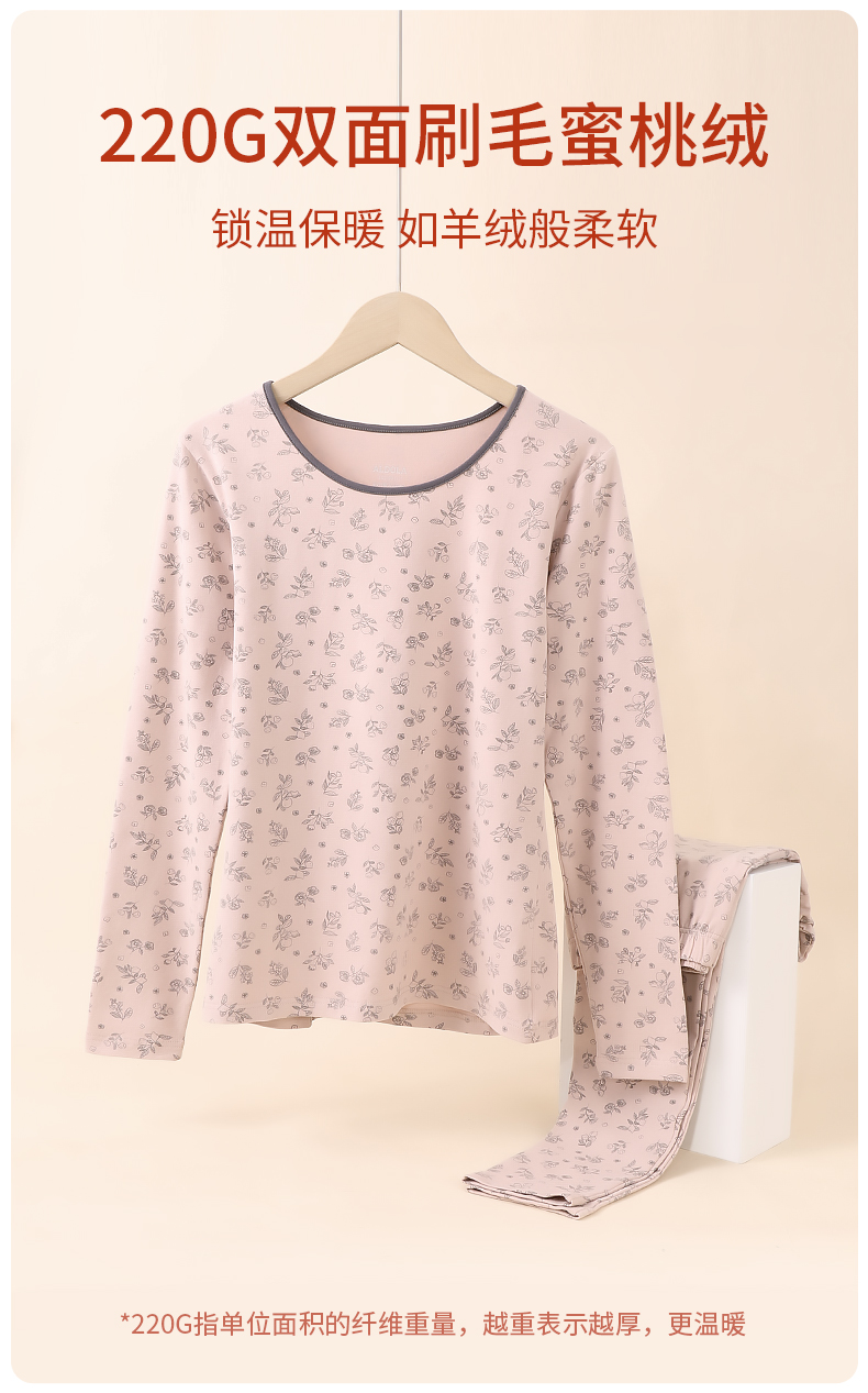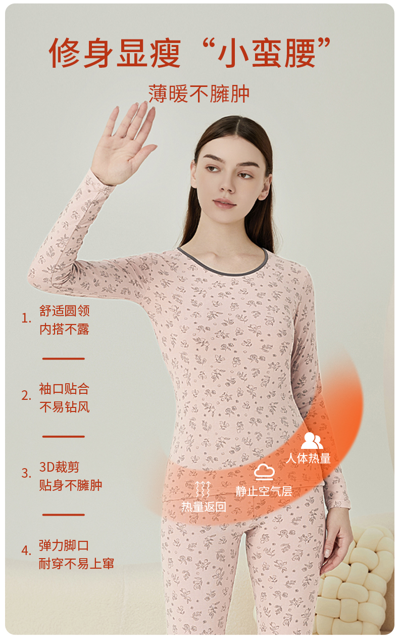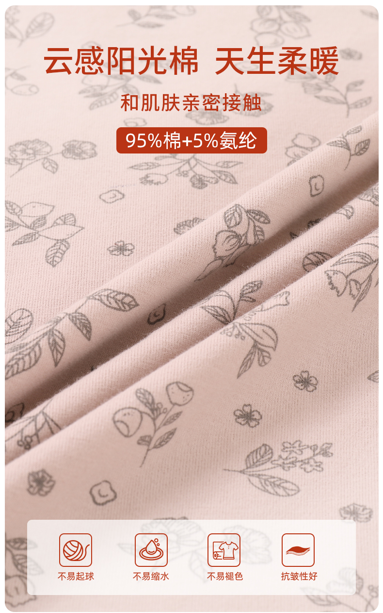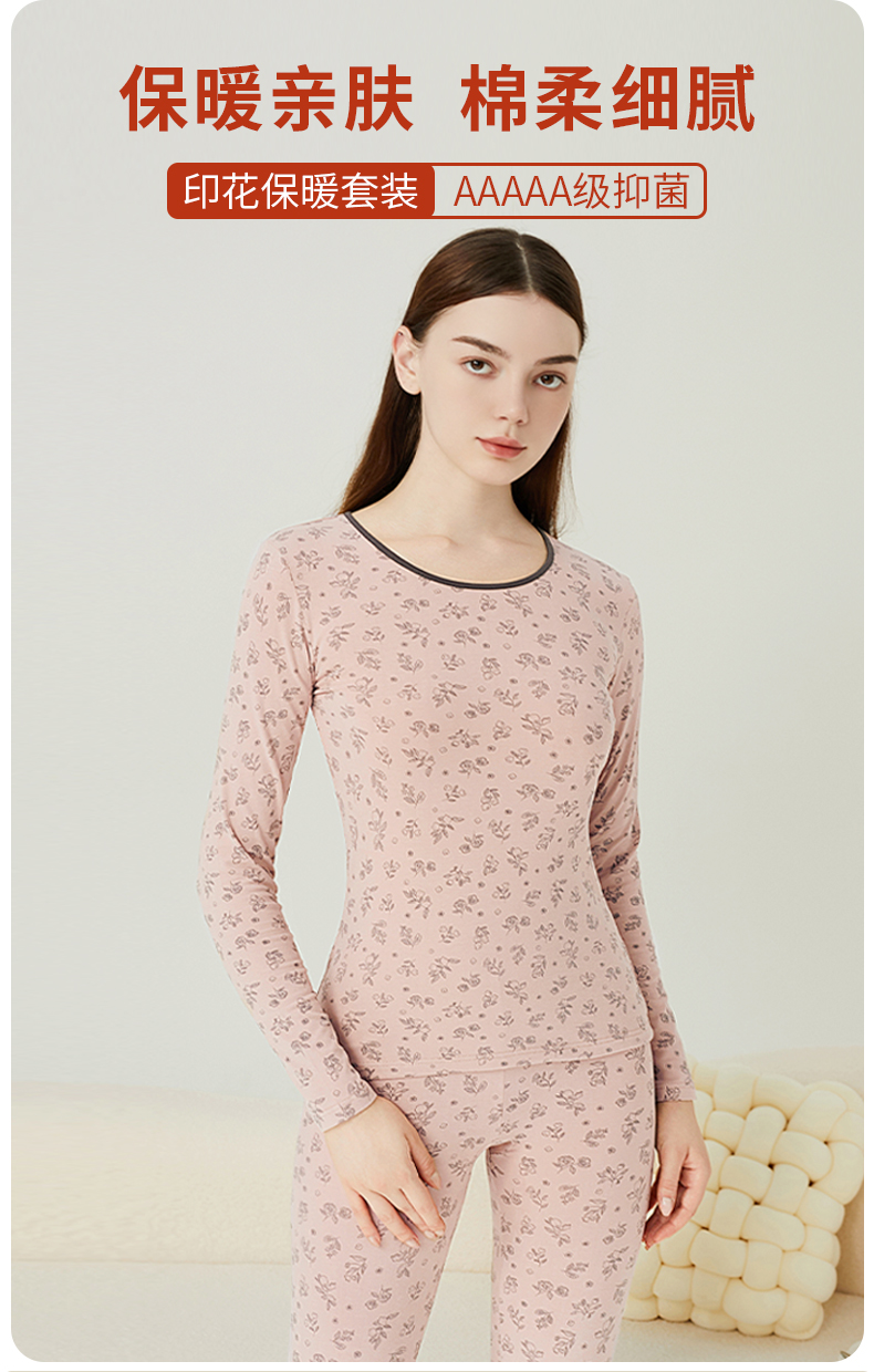 雅黛丽保暖内衣女士棉质套装5A抗菌亲肤舒适打底衣圆领秋衣秋裤女
