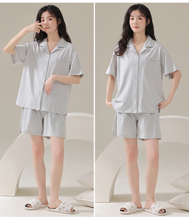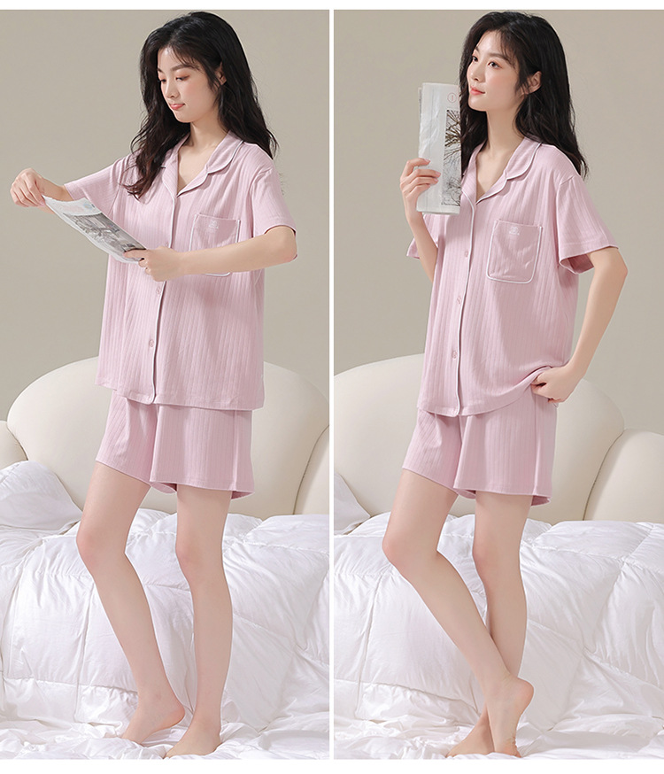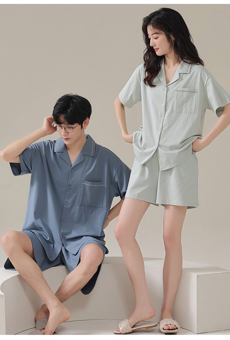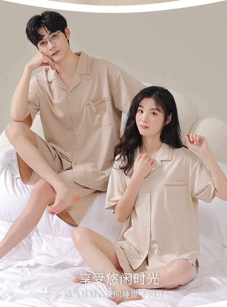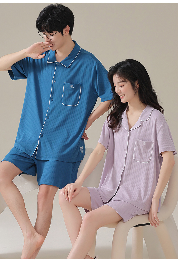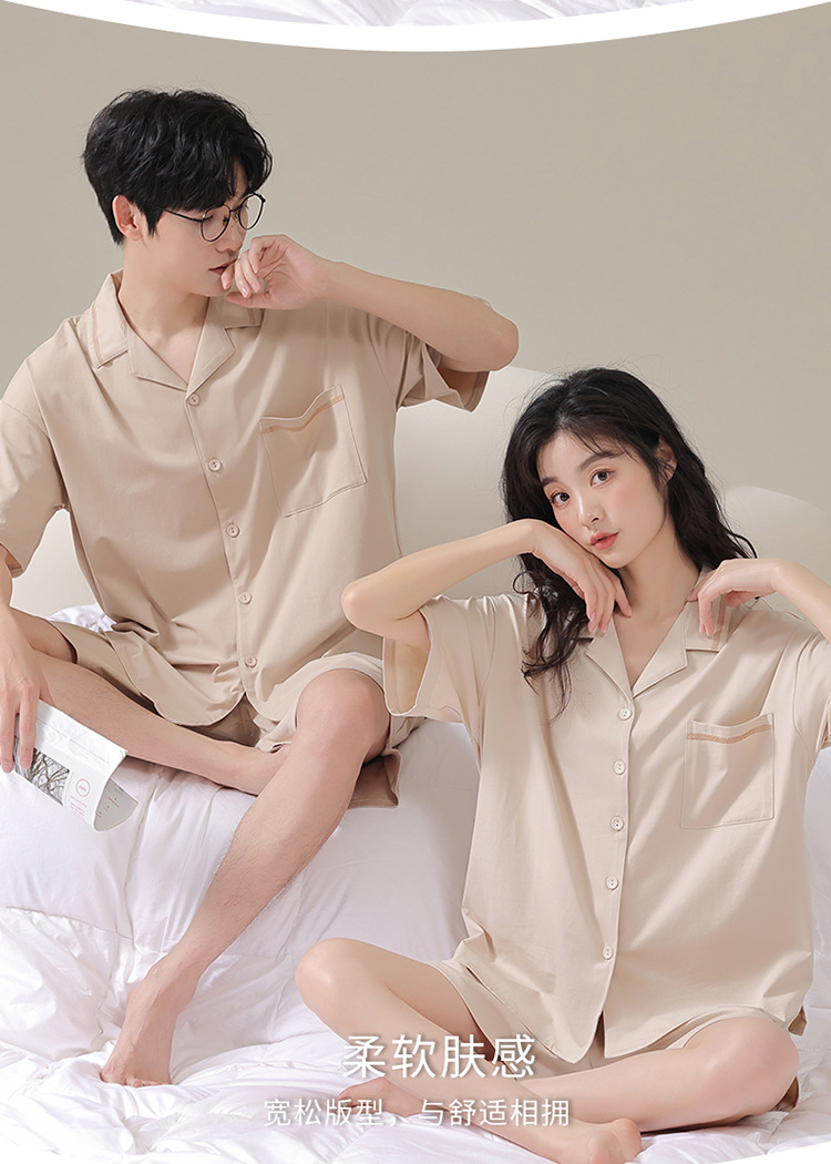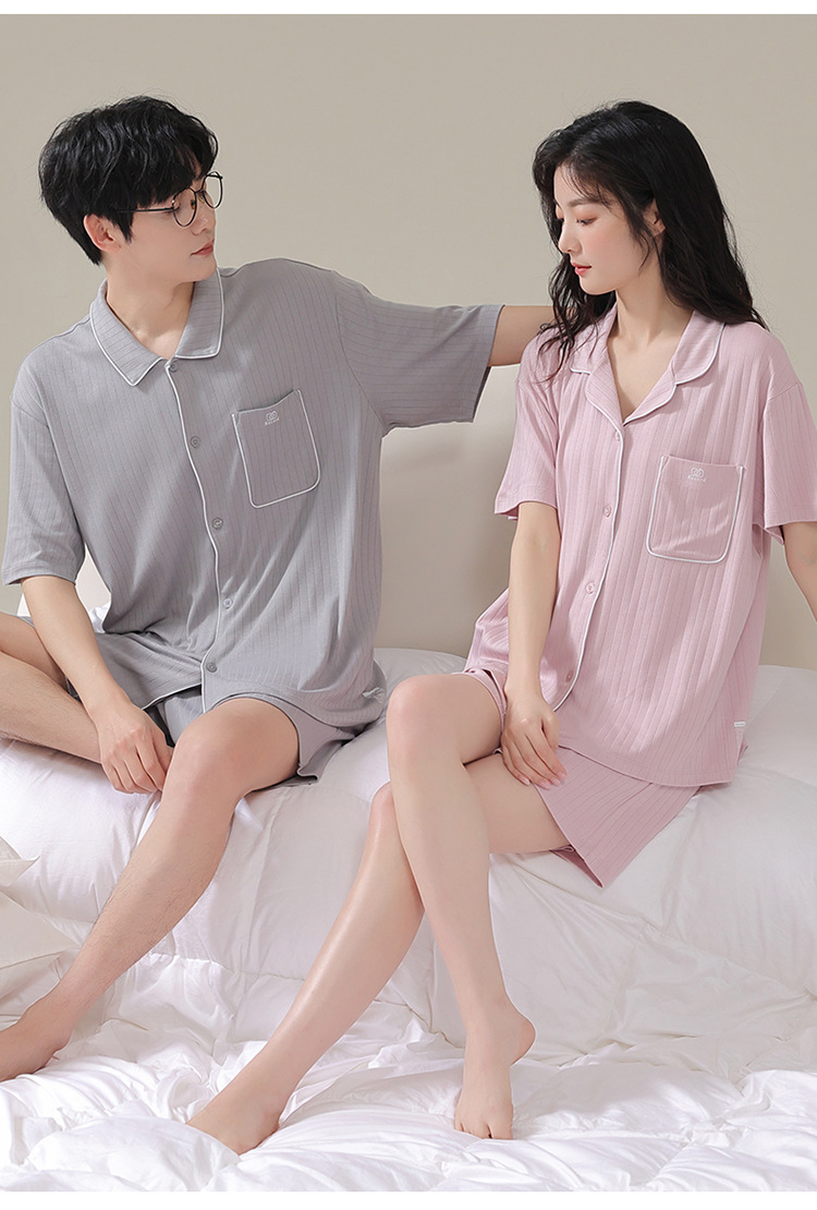 【冰冰凉凉!莫代尔睡衣】柔软围绕,睡个好觉,情侣开衫凉感型家居服,舒适透气夏季短袖短裤,夏天女士大码家居可外出服套装L