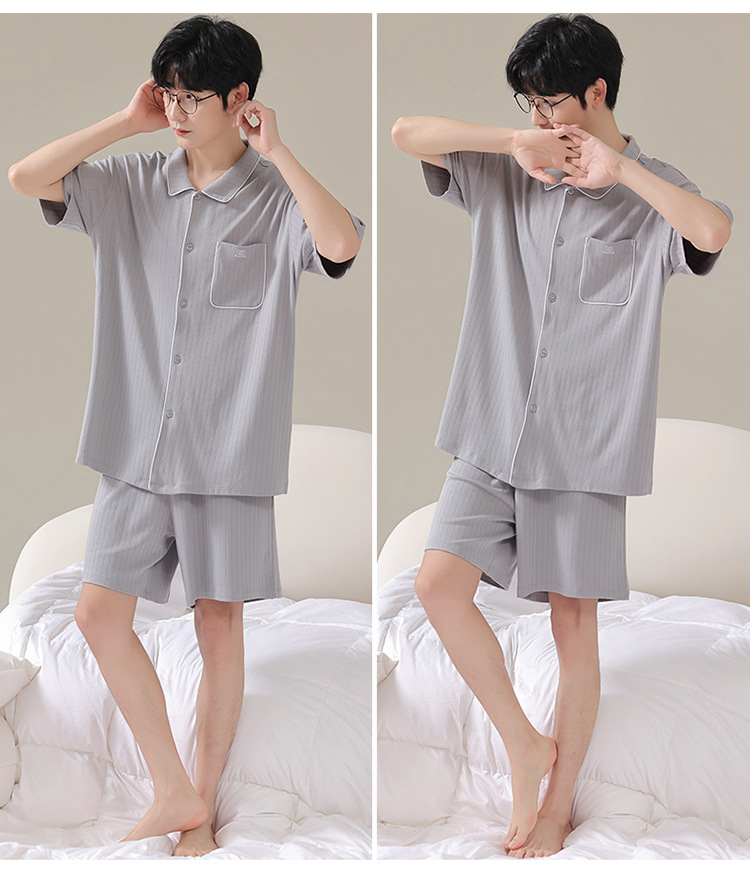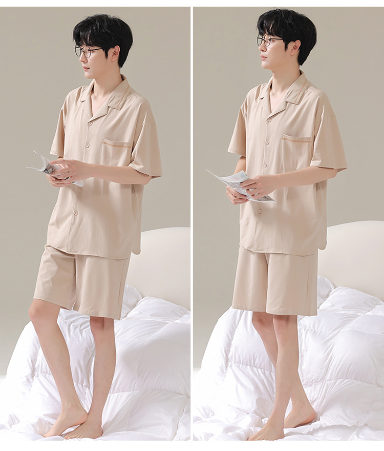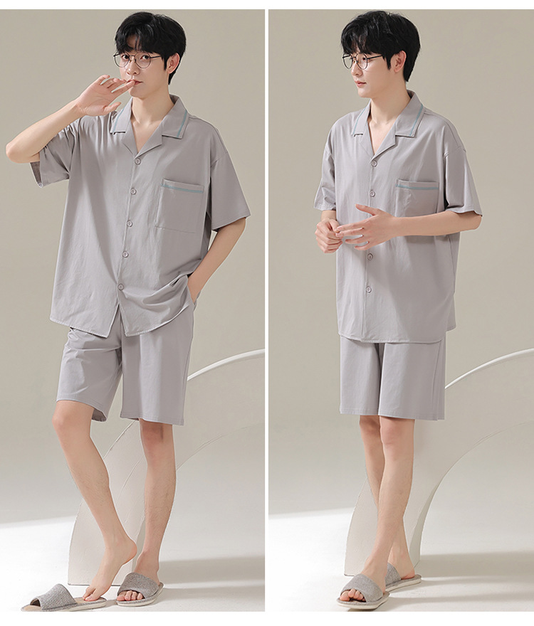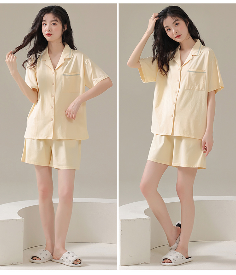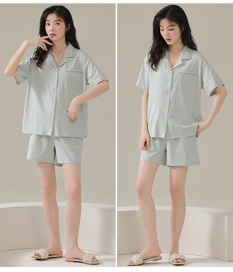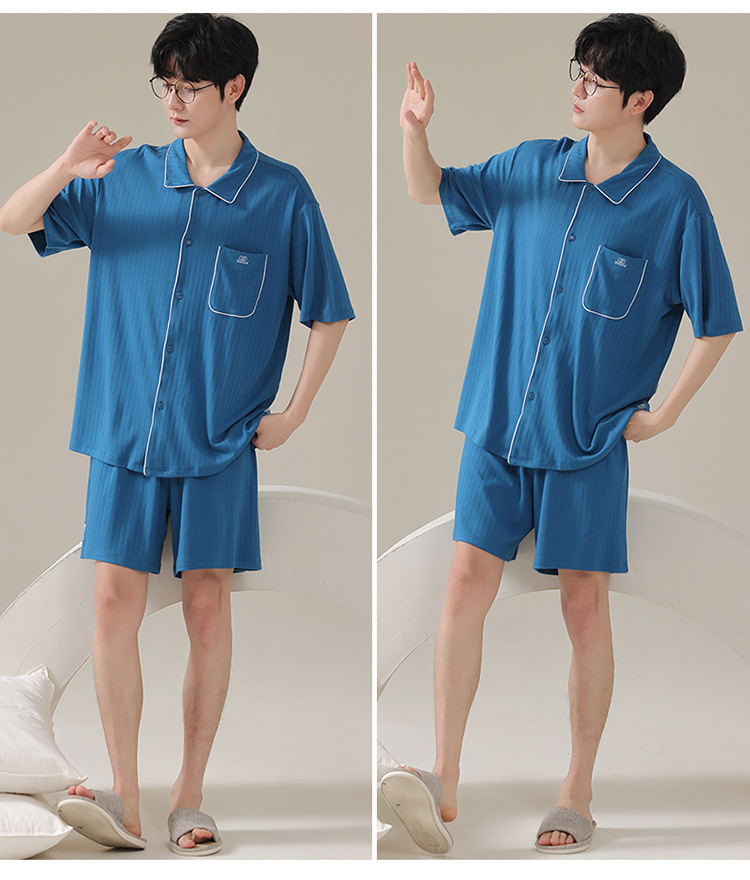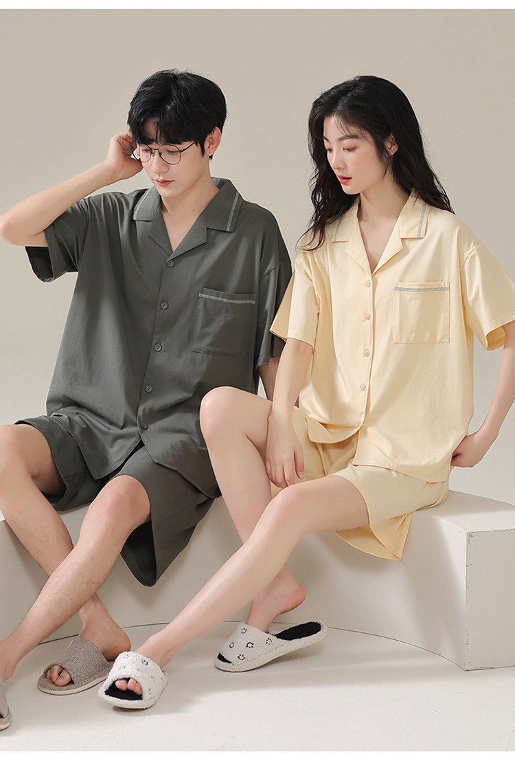 【冰冰凉凉!莫代尔睡衣】柔软围绕,睡个好觉,情侣开衫凉感型家居服,舒适透气夏季短袖短裤,夏天女士大码家居可外出服套装L