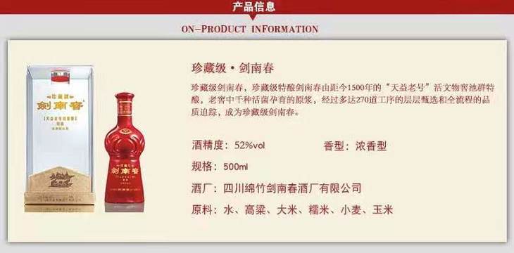 52度珍藏级剑南春500ml浓香型白酒 商品图3