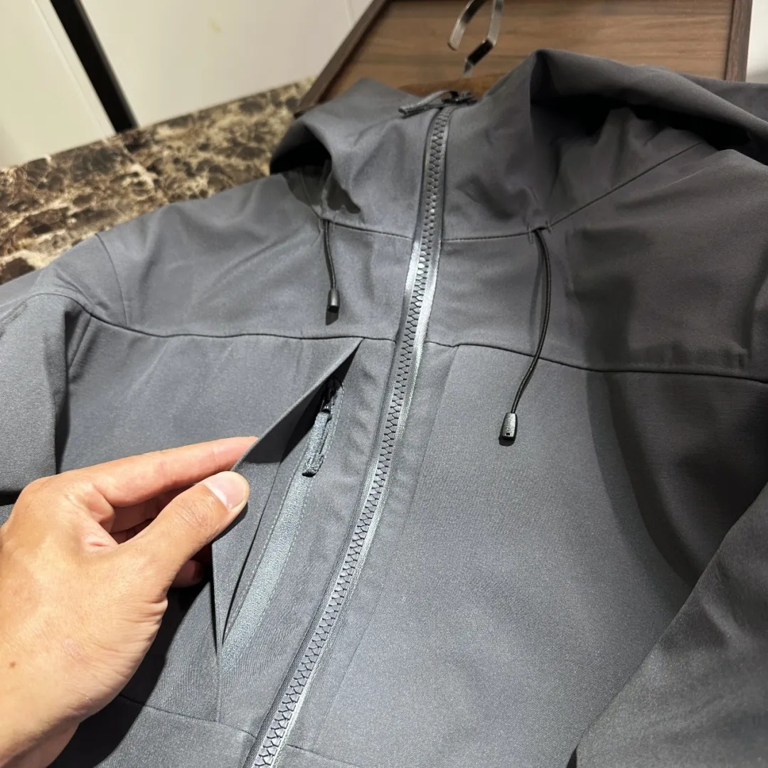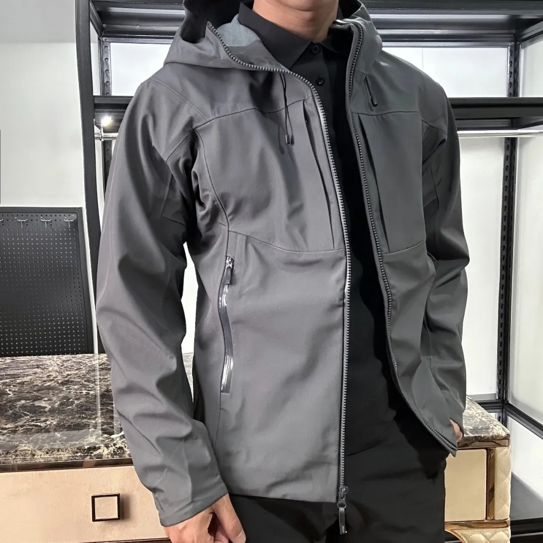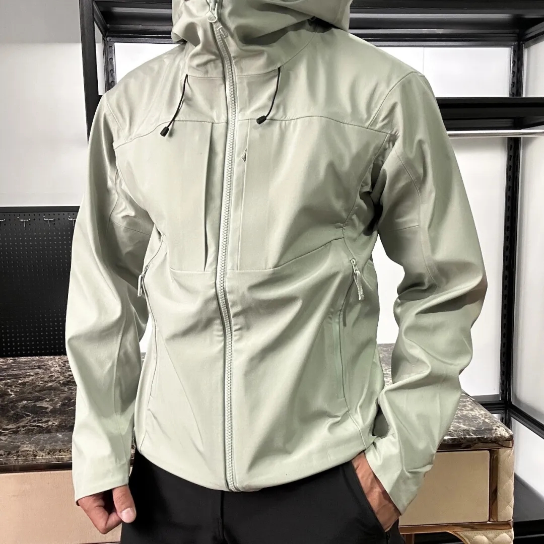 颜色:黑色 藏青色 红色 缥缈绿 深灰 尺码:XS---3XL 控价128元(量大咨询客服库存现货情况) • 全压胶无缝工艺:衣身接缝采用全压胶处理,告别传统车线的缝隙漏风问题,兼顾防水性与穿着舒适度,轻户外场景下可应对小雨、雾霭等潮湿环境。 • 软壳面料特性:采用高弹锦纶耐磨软壳面料,触感柔软且抗皱易打理,同时具备防风、透气的双向功能,春季通勤或秋季徒步时,既能锁住体温又不会闷热。 • 胸前双口袋布局:延续标志性的胸前立体贴袋,袋口采用隐蔽式拉链,兼具实用性与战术风格,可稳妥收纳手机、钥匙等随身小物。 • 连帽+半拉链门襟:可调节抽绳帽檐适配不同头型,半拉链设计方便快速穿脱与调节领口开合度,兼顾保暖性与穿脱效率。 • 轻户外场景:防风防泼水的软壳材质+全压胶工艺,适配城市骑行、近郊徒步等轻度户外活动,应对复杂天气更从容; • 日常通勤 户外活动