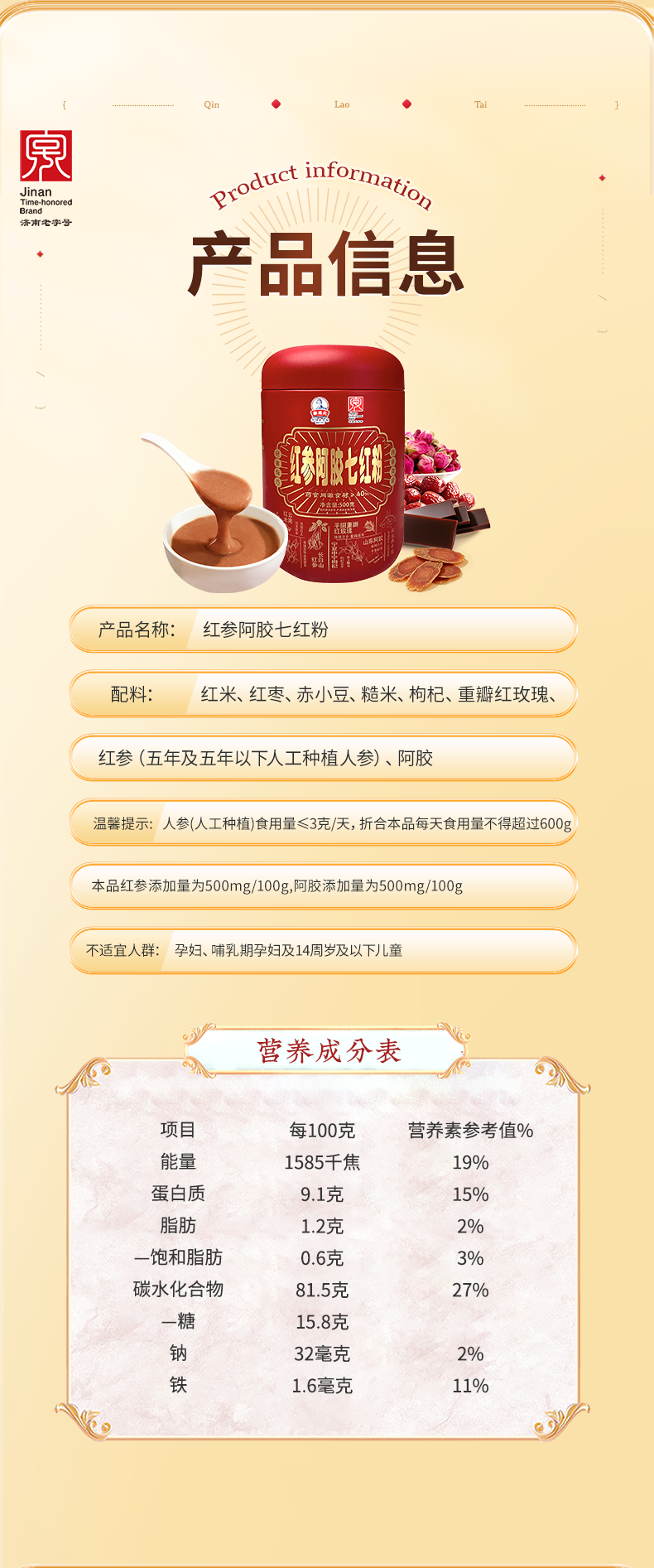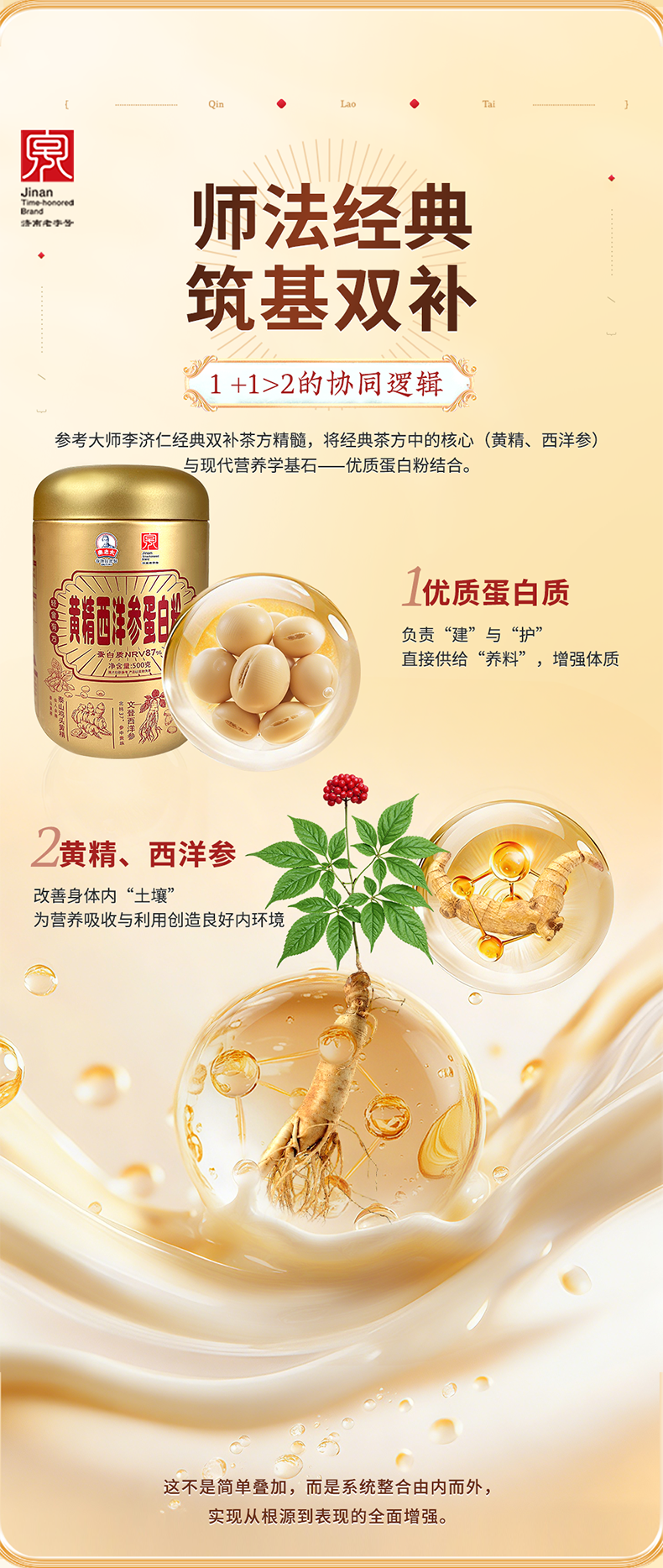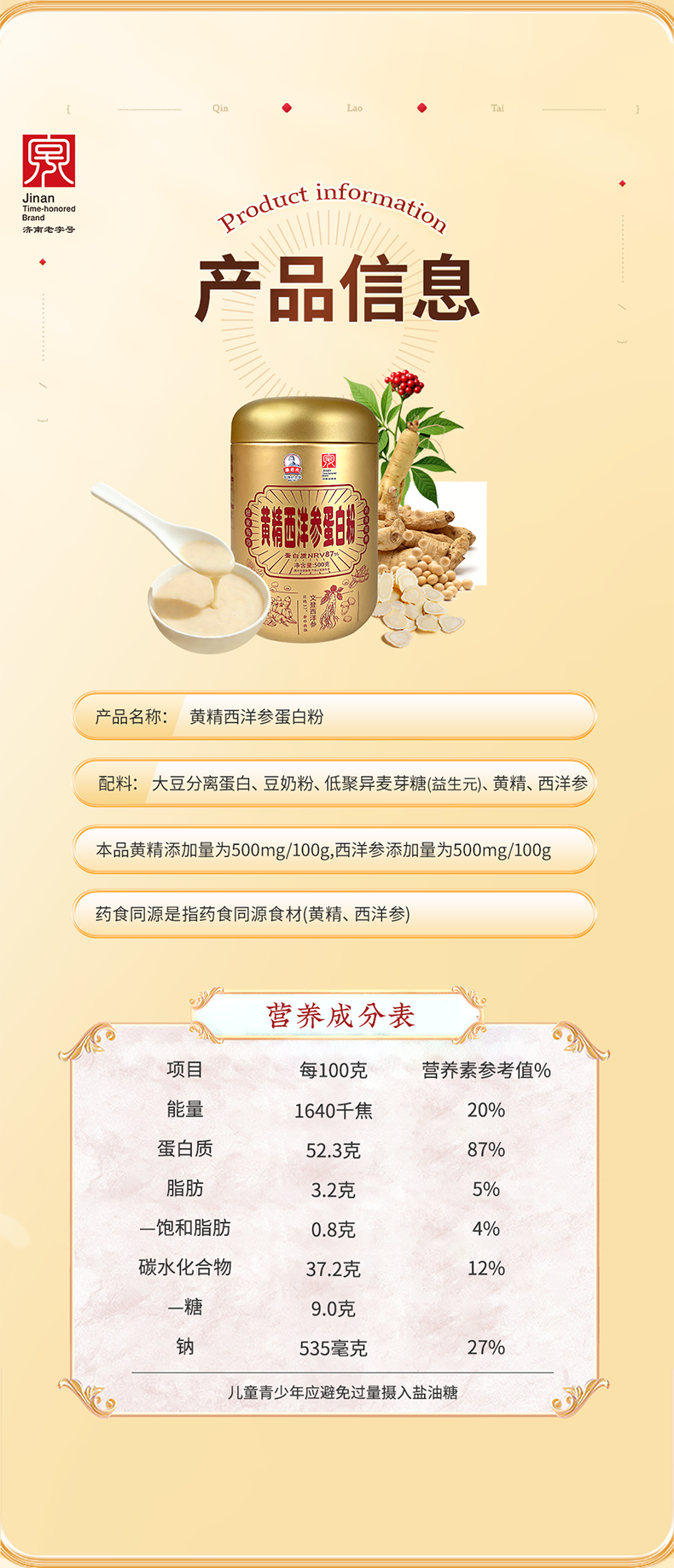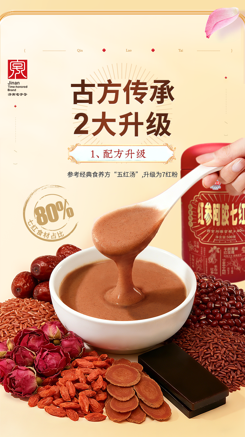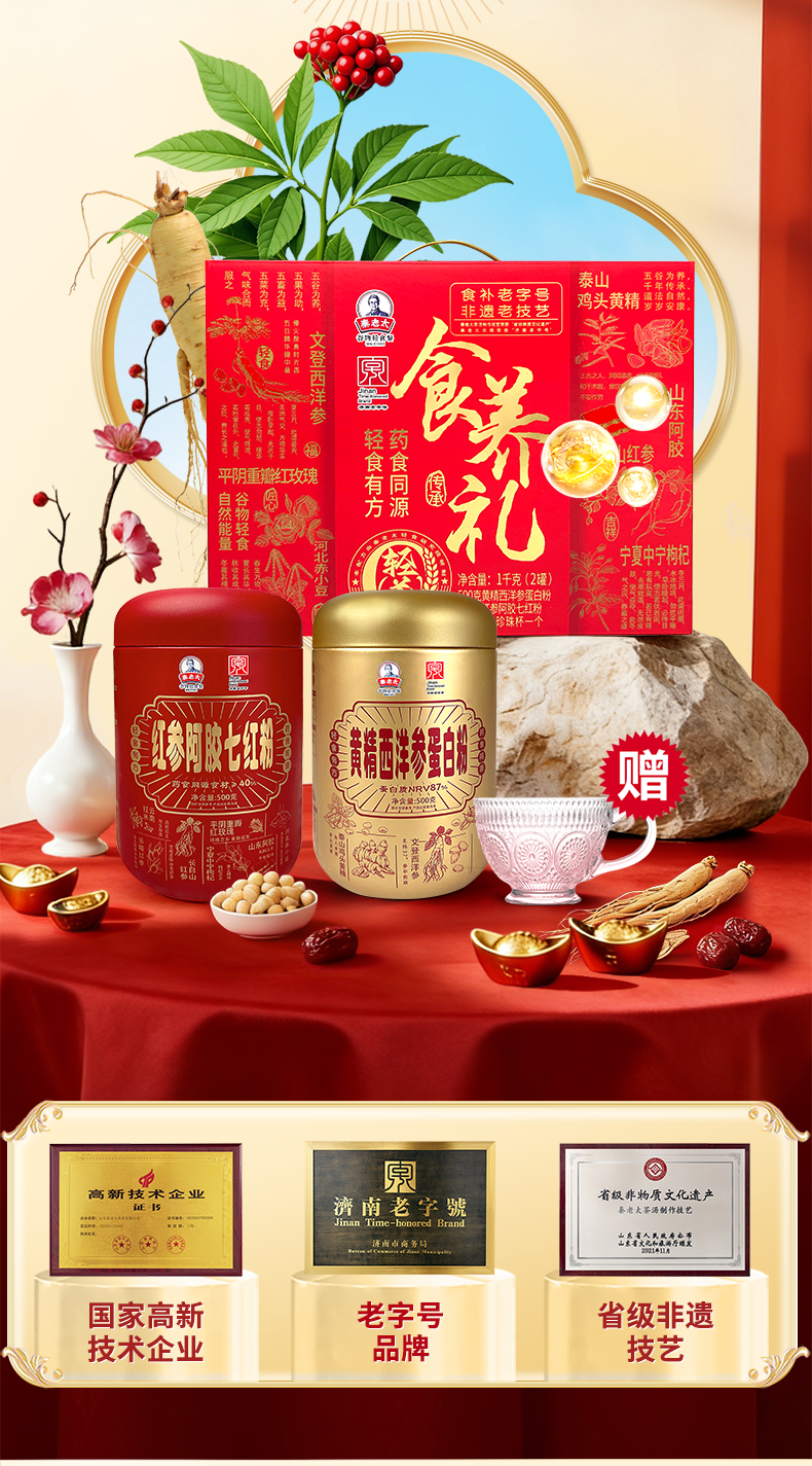 秦老太食养礼1kg(黄精西洋参蛋白粉*1+红参阿胶七红粉)内赠珍珠杯