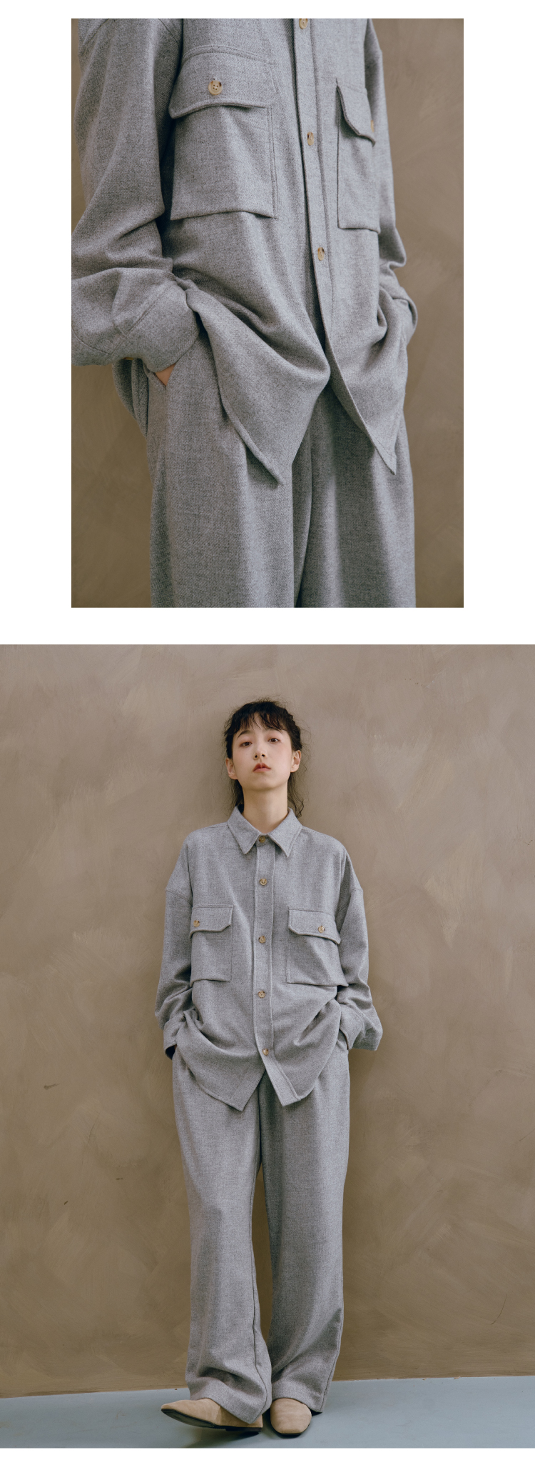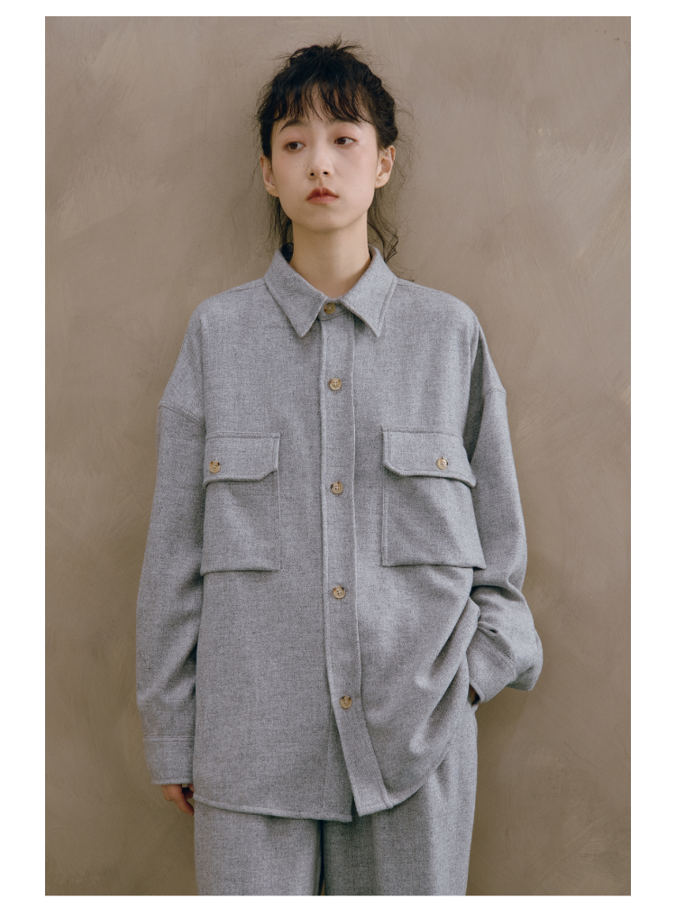 24AW 重磅精纺羊绒梭织口袋衬衫套装