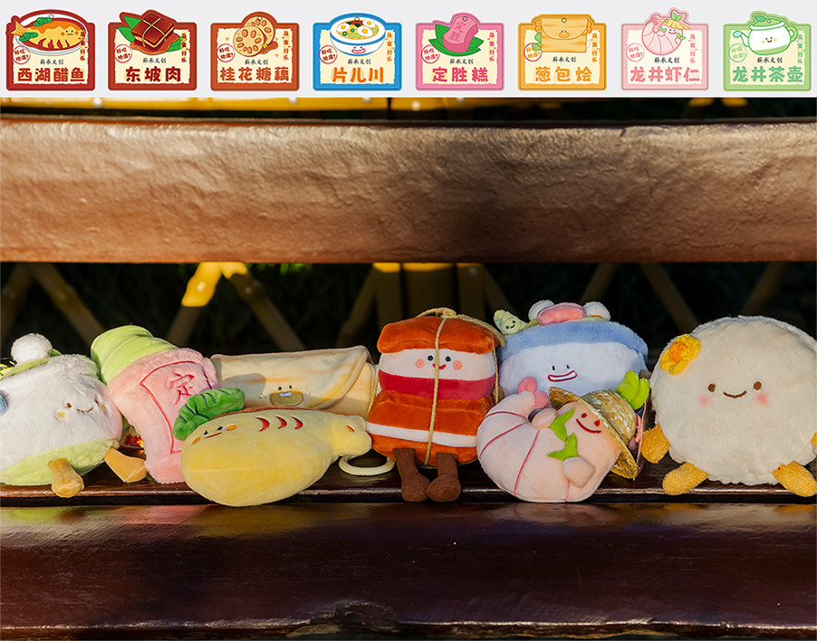 杭州西湖景区文创美食毛绒玩偶挂件创意礼物东坡肉定胜糕娃娃