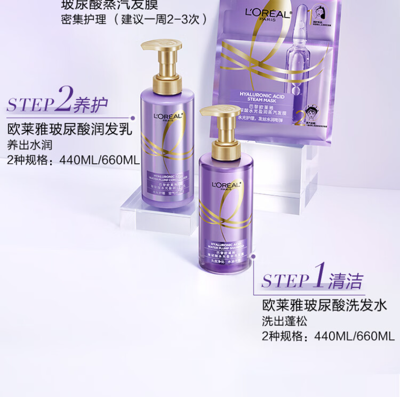 欧莱雅玻尿酸水光套包-洗发露440ml+润发乳440ml
