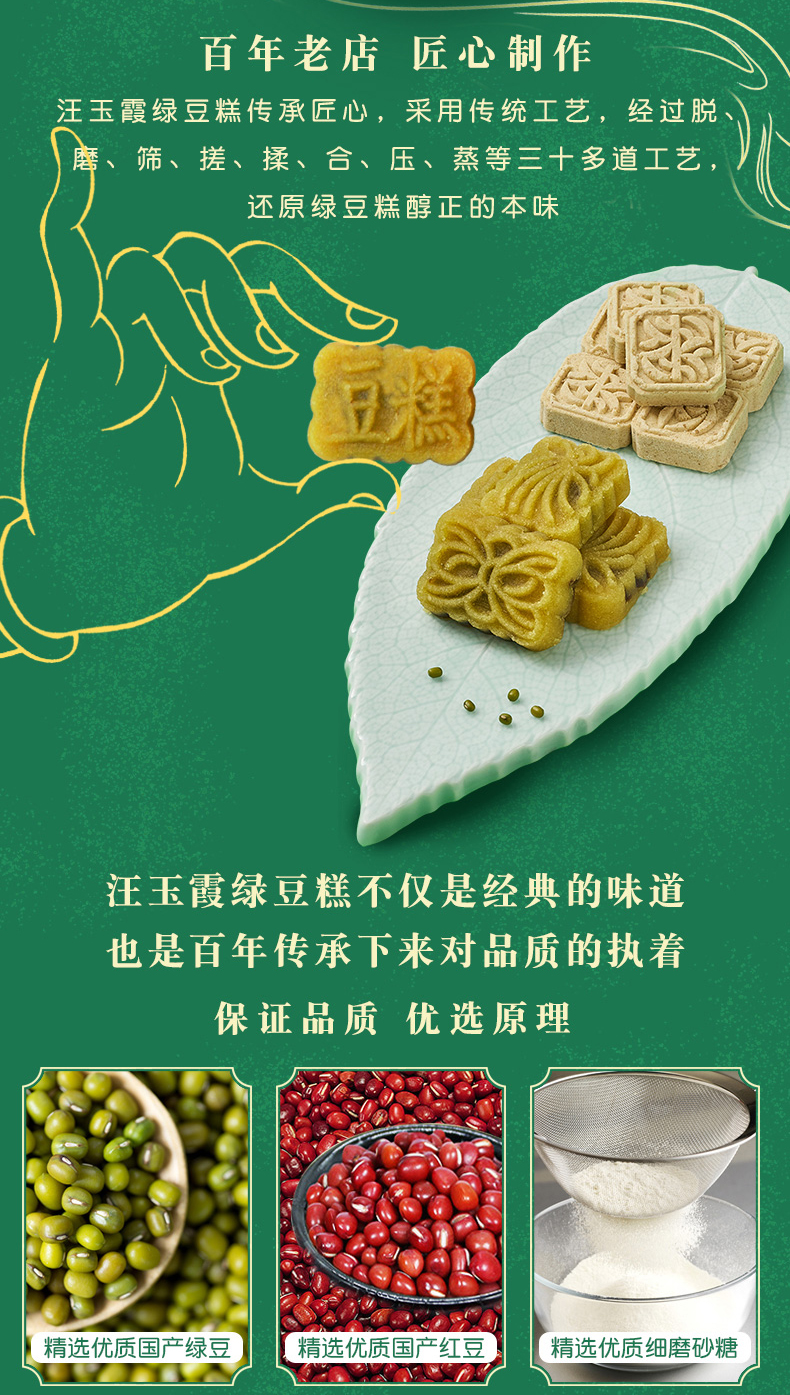 湖北武汉特产汪玉霞金装老式绿豆糕盒装350克下午茶点