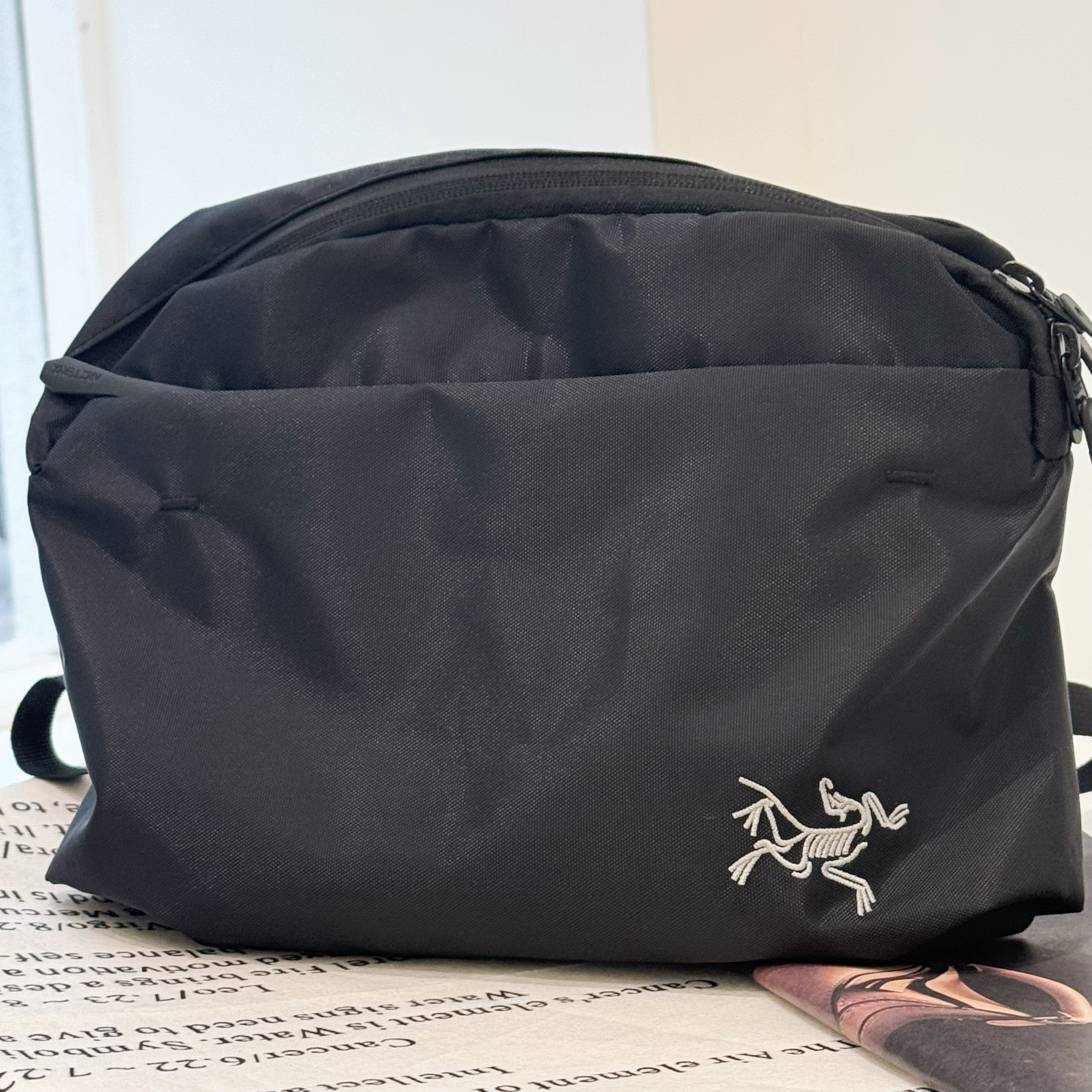 黑色系防水料材质,耐造又防水设计,容量相当可观,解放双手又能凹造型,多功能包!