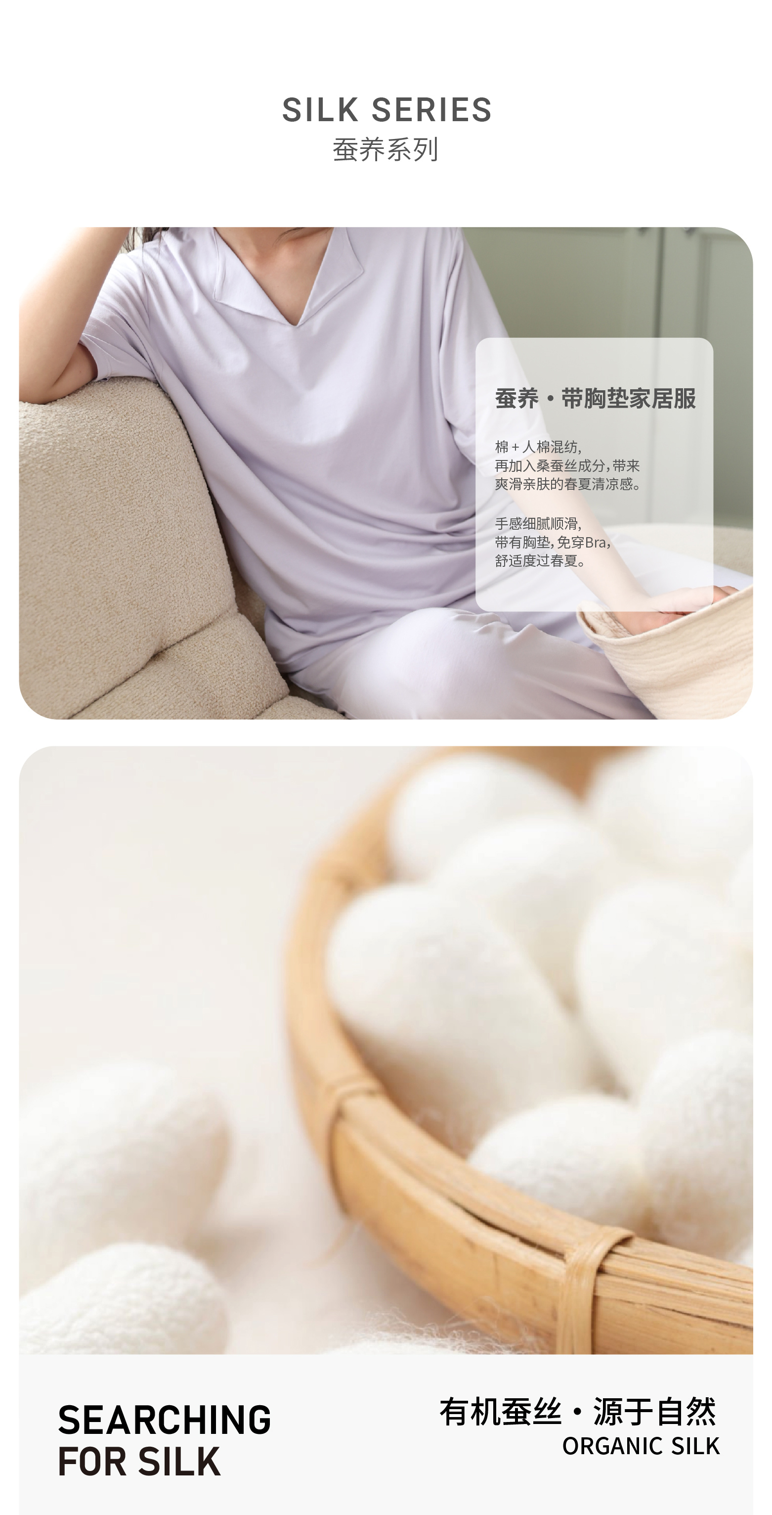 蚕养·带胸垫家居服 棉+人棉混纺+桑蚕丝成分爽滑亲肤免穿Bra