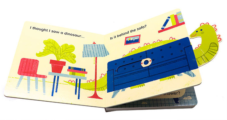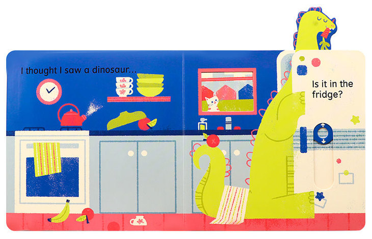 书名:I thought I saw a... Dinosaur!我好像看到了一只恐龙躲猫猫游戏互动操作纸板书