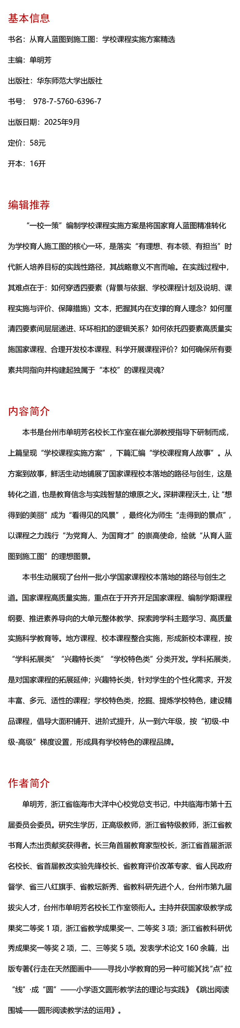 从育人蓝图到施工图 学校课程实施方案精选 国家课程校本落地 单明芳