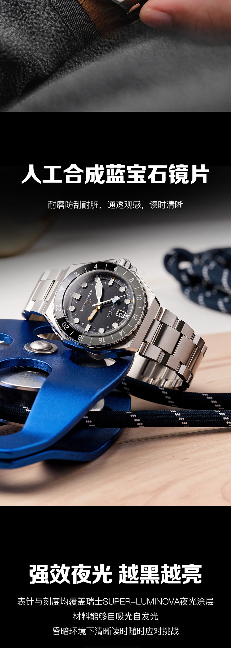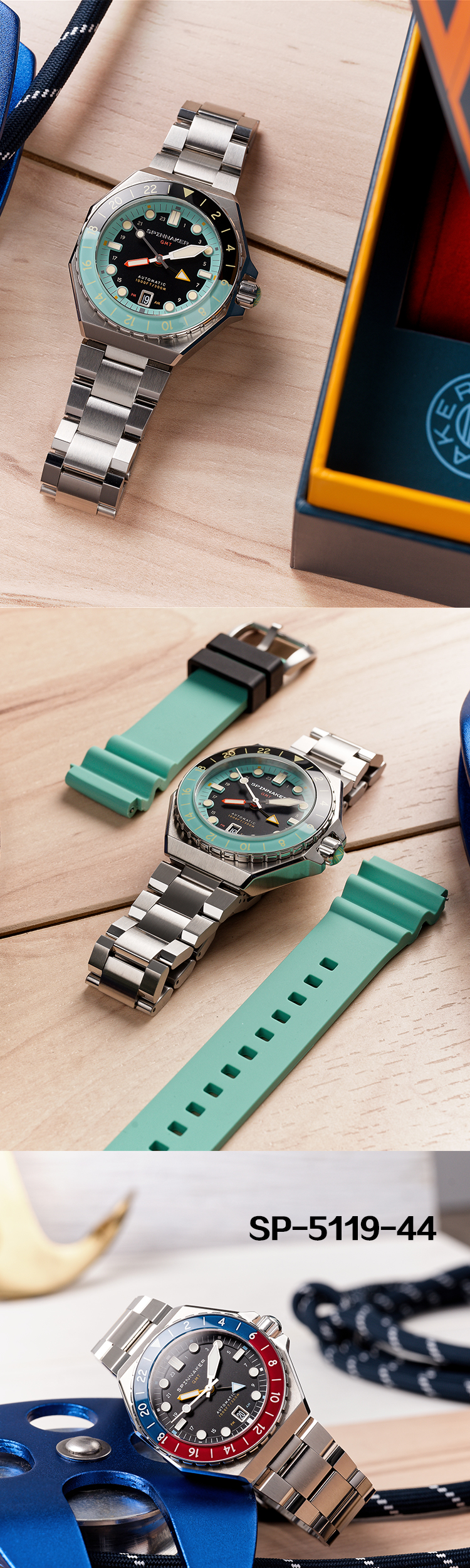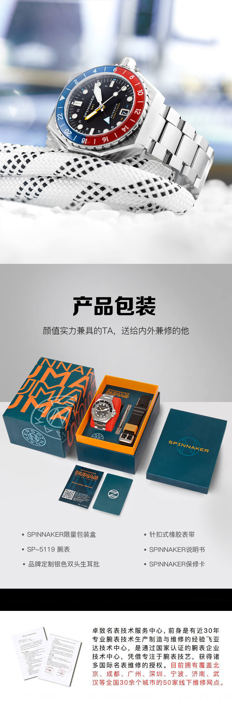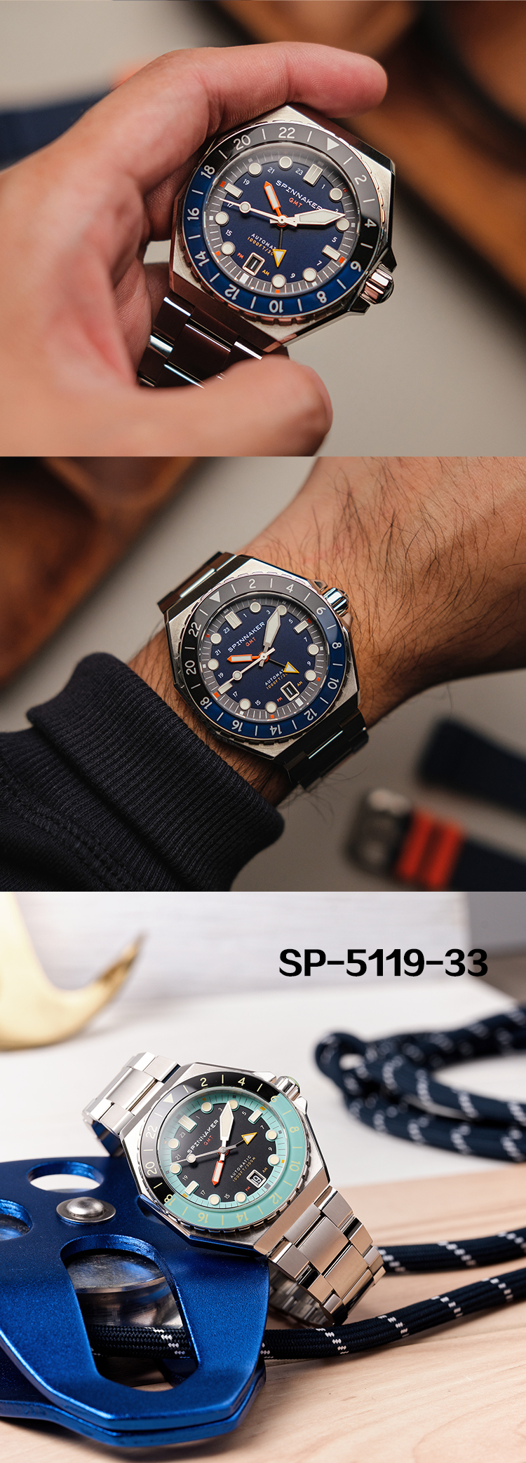 新款SPINNAKER三角帆GMT双时区八角壳自动机械表钢带防水夜光5119
