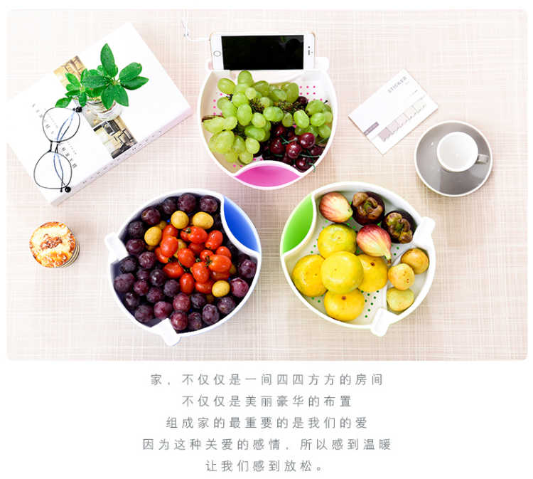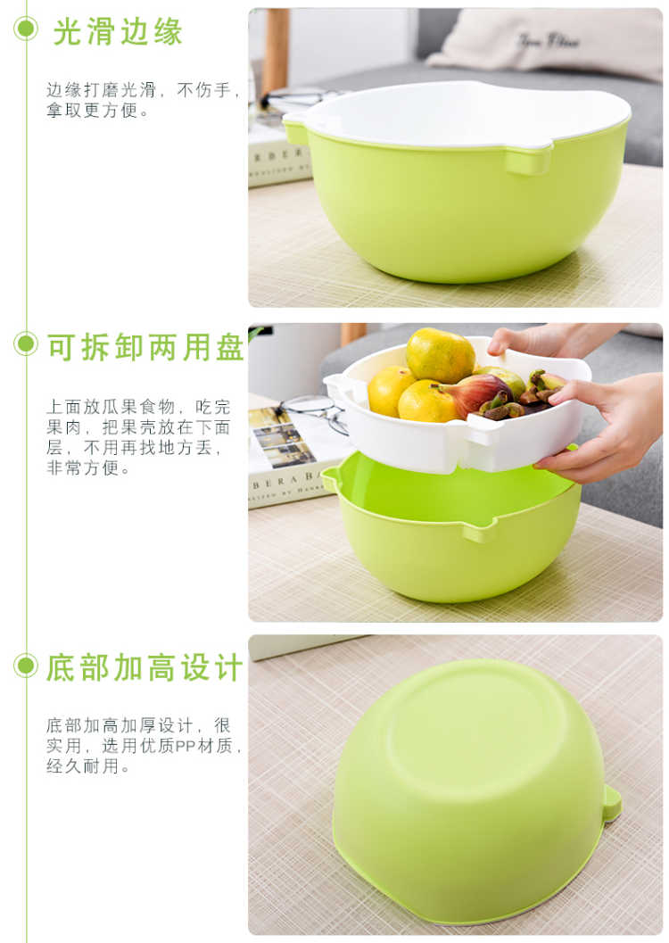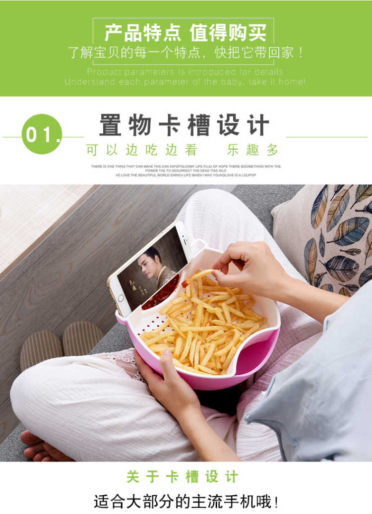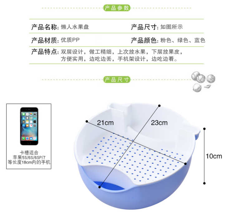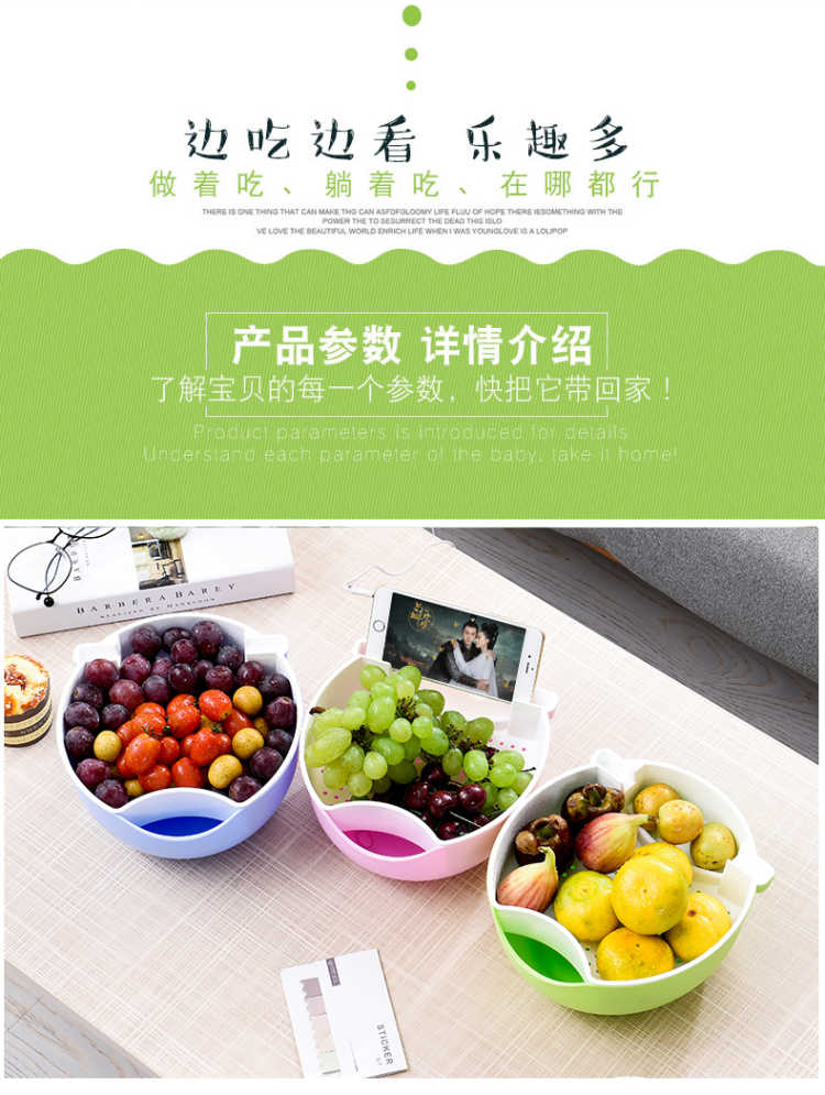 水果盘采用优质PP材质制作,双层沥水设计,手机支架设计,可拆卸清洗。