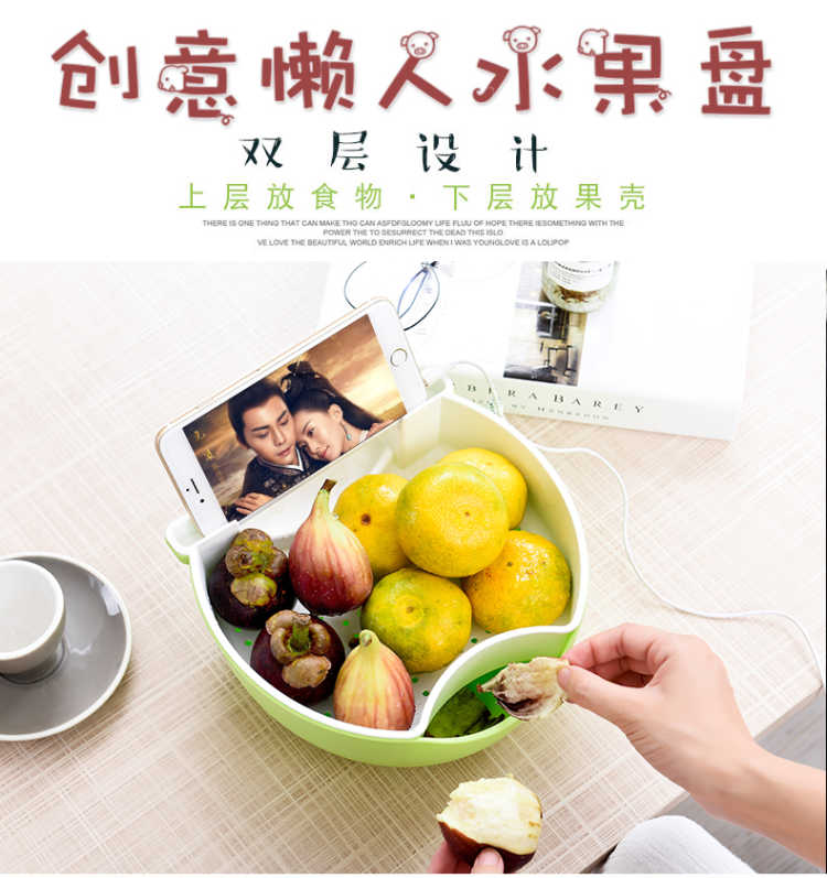 【懒人创意水果盘】吃瓜子神器 双层设计带手机支架