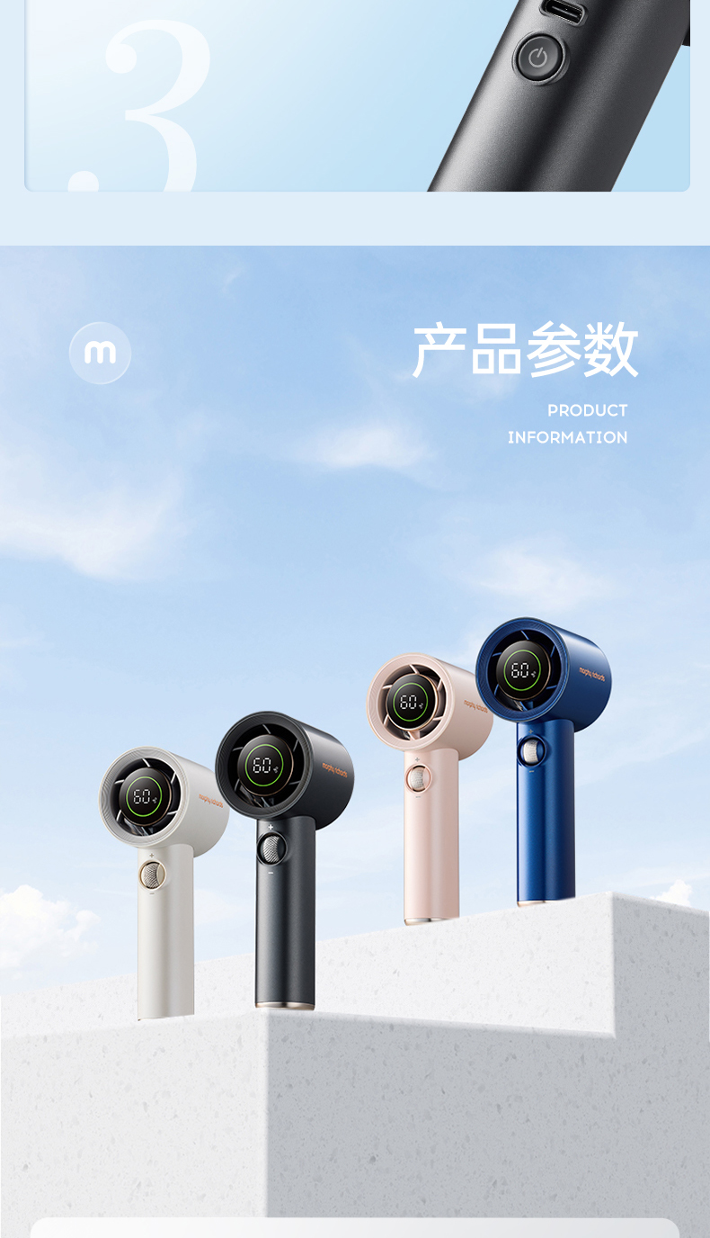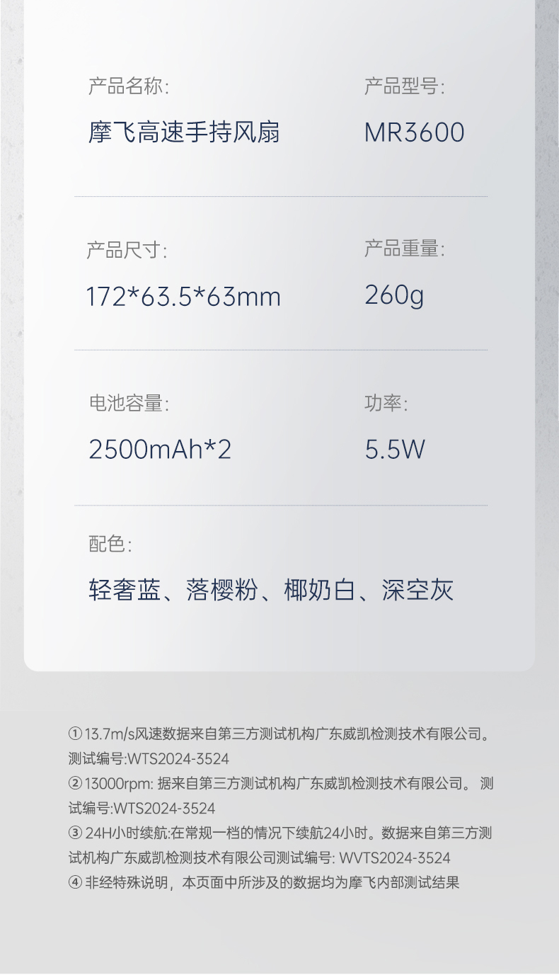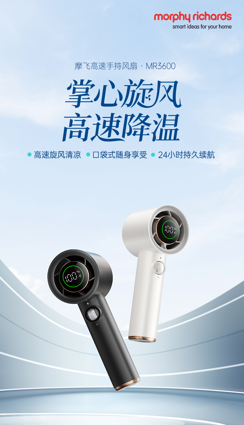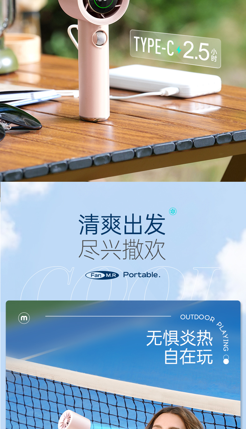 【新品】摩飞户外出行无线便携高速手持电风扇MR3600 户外露营出行【100档风力】长续航涡轮小风扇