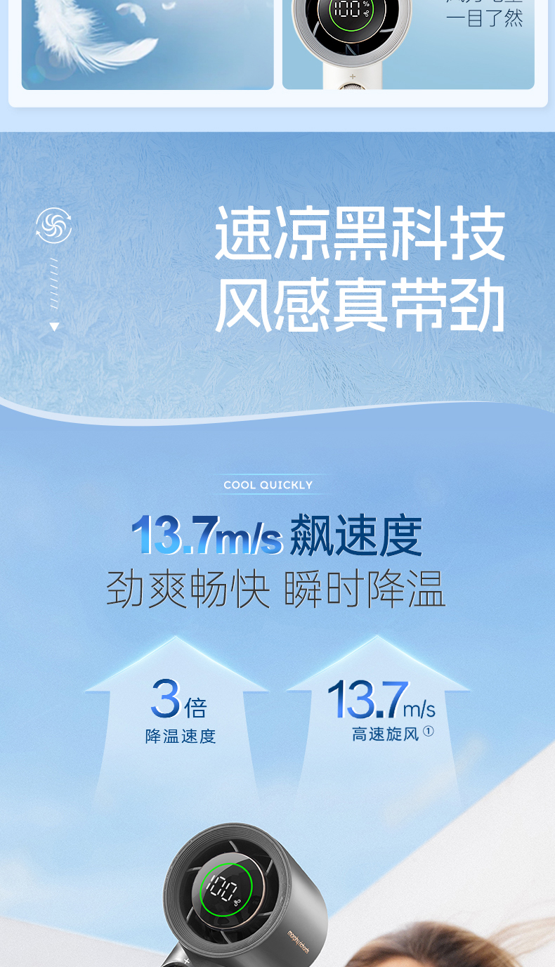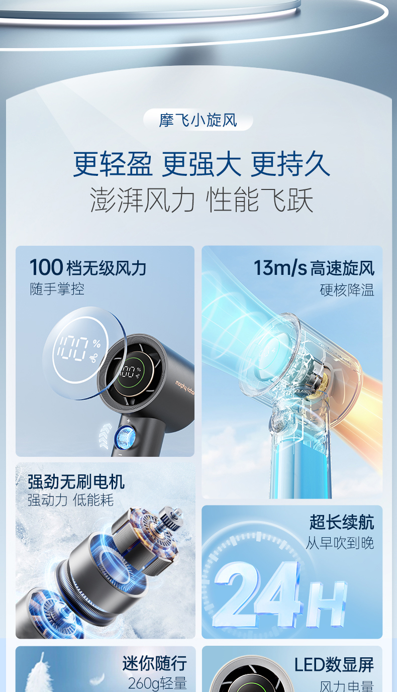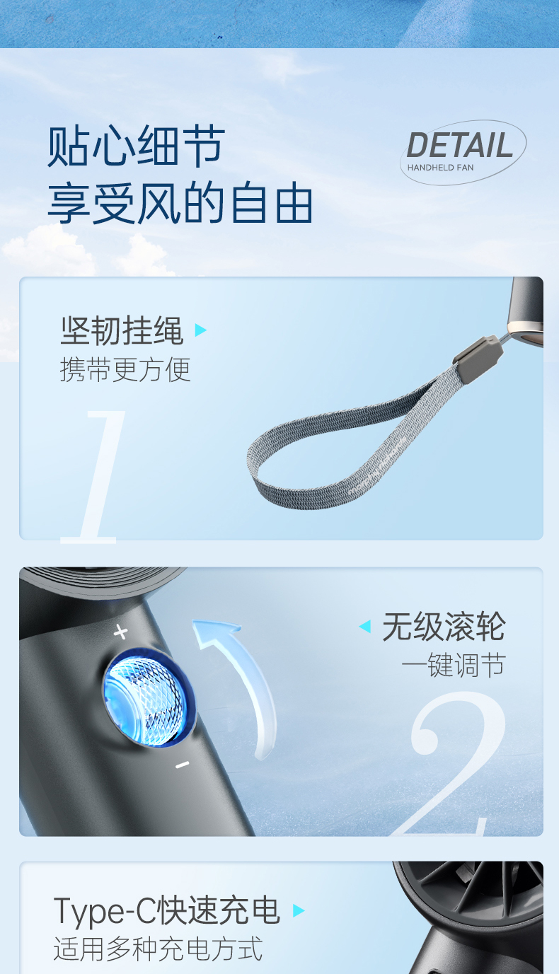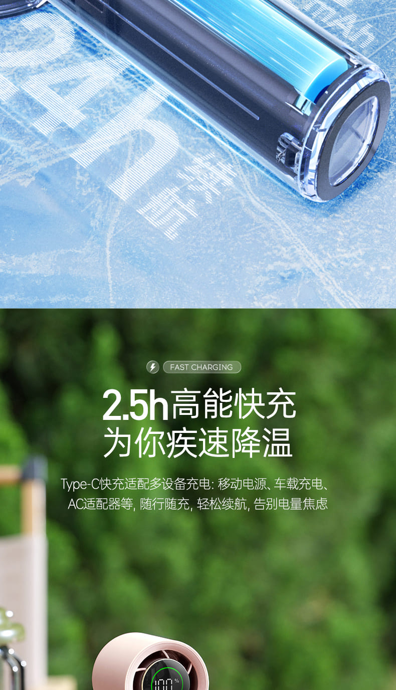 【新品】摩飞户外出行无线便携高速手持电风扇MR3600 户外露营出行【100档风力】长续航涡轮小风扇