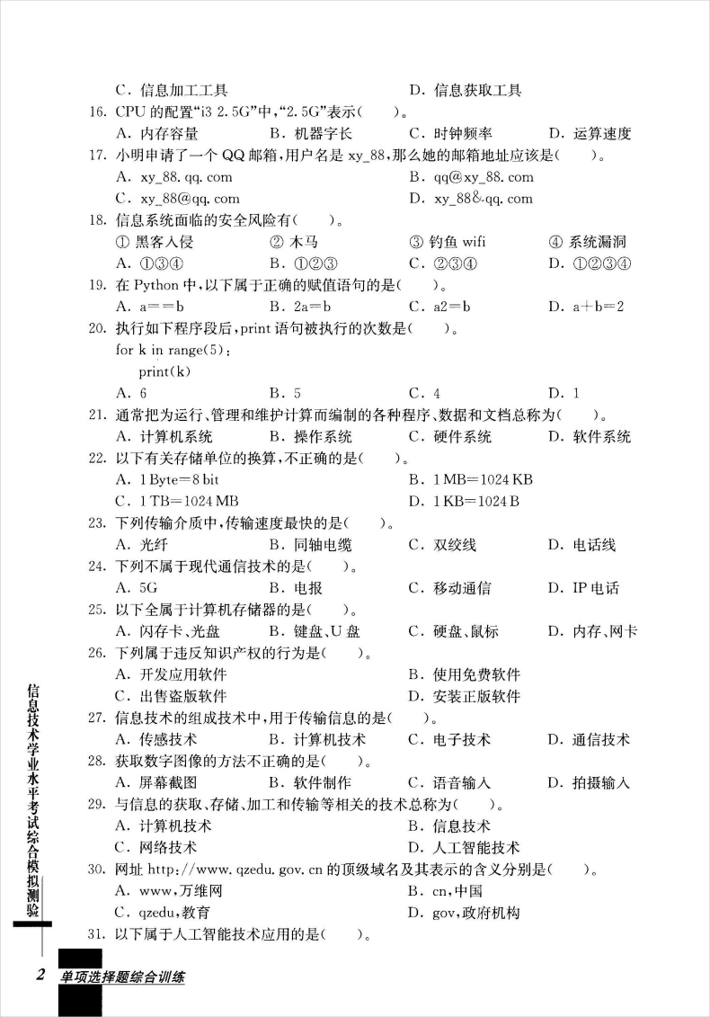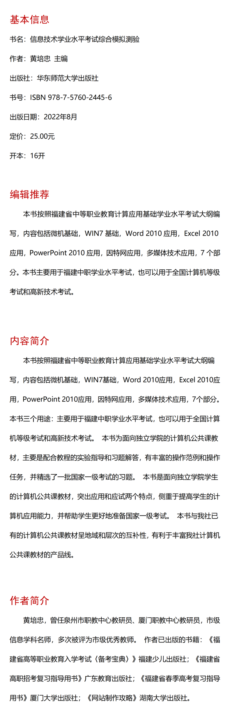 信息技术学业水平考试综合模拟测验 计算机课 全国计算机等级考试和高新技术考试 黄培忠 编著 正版 华东师范大学出版社