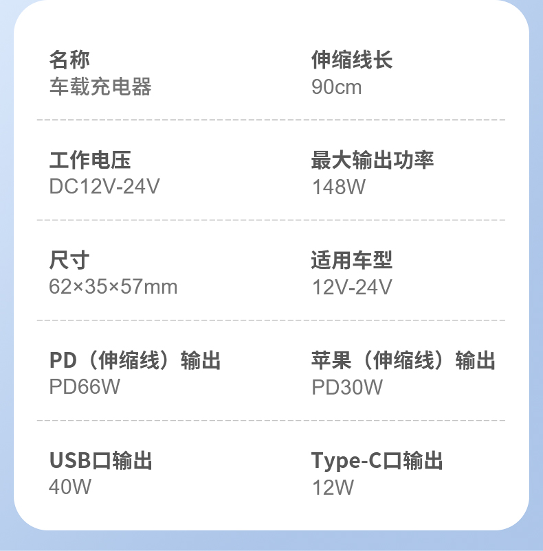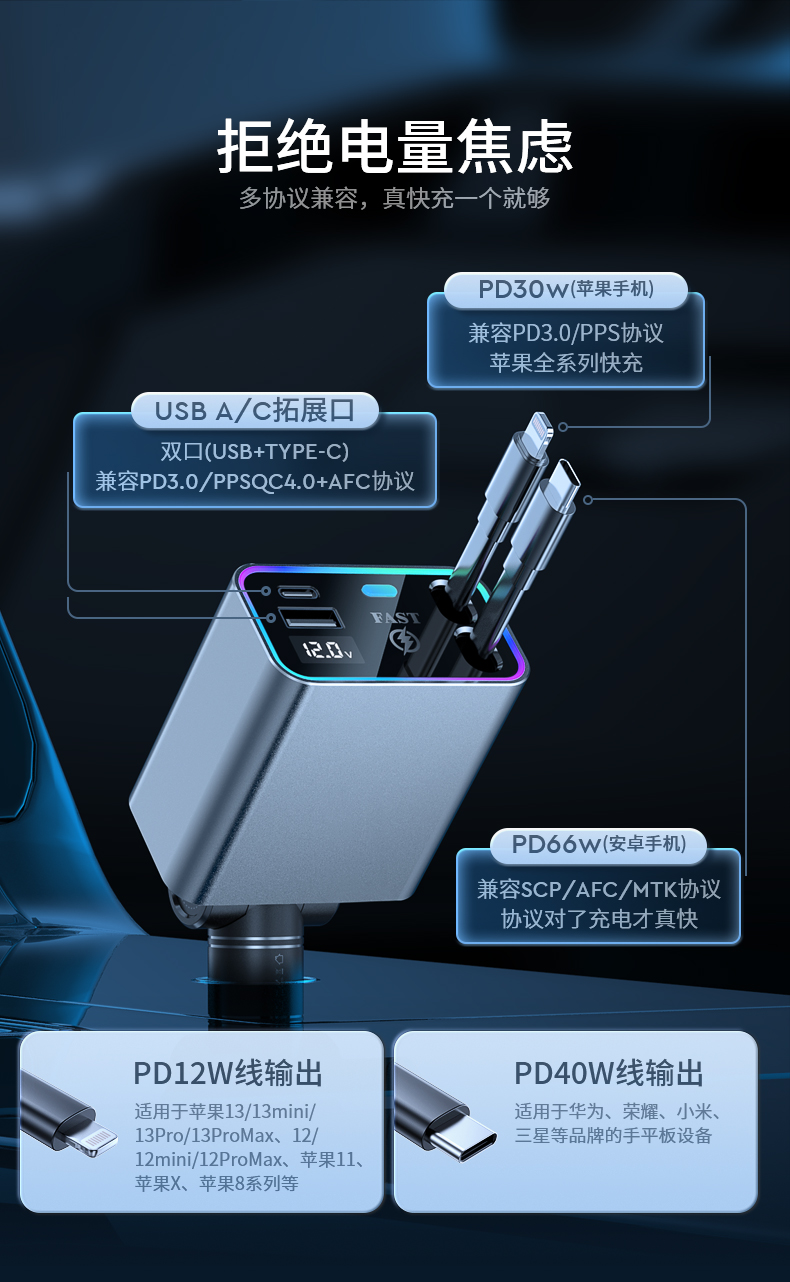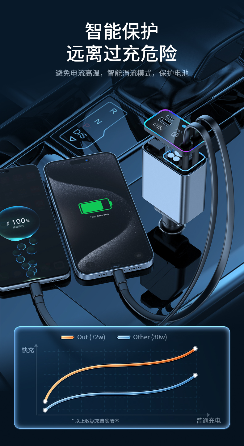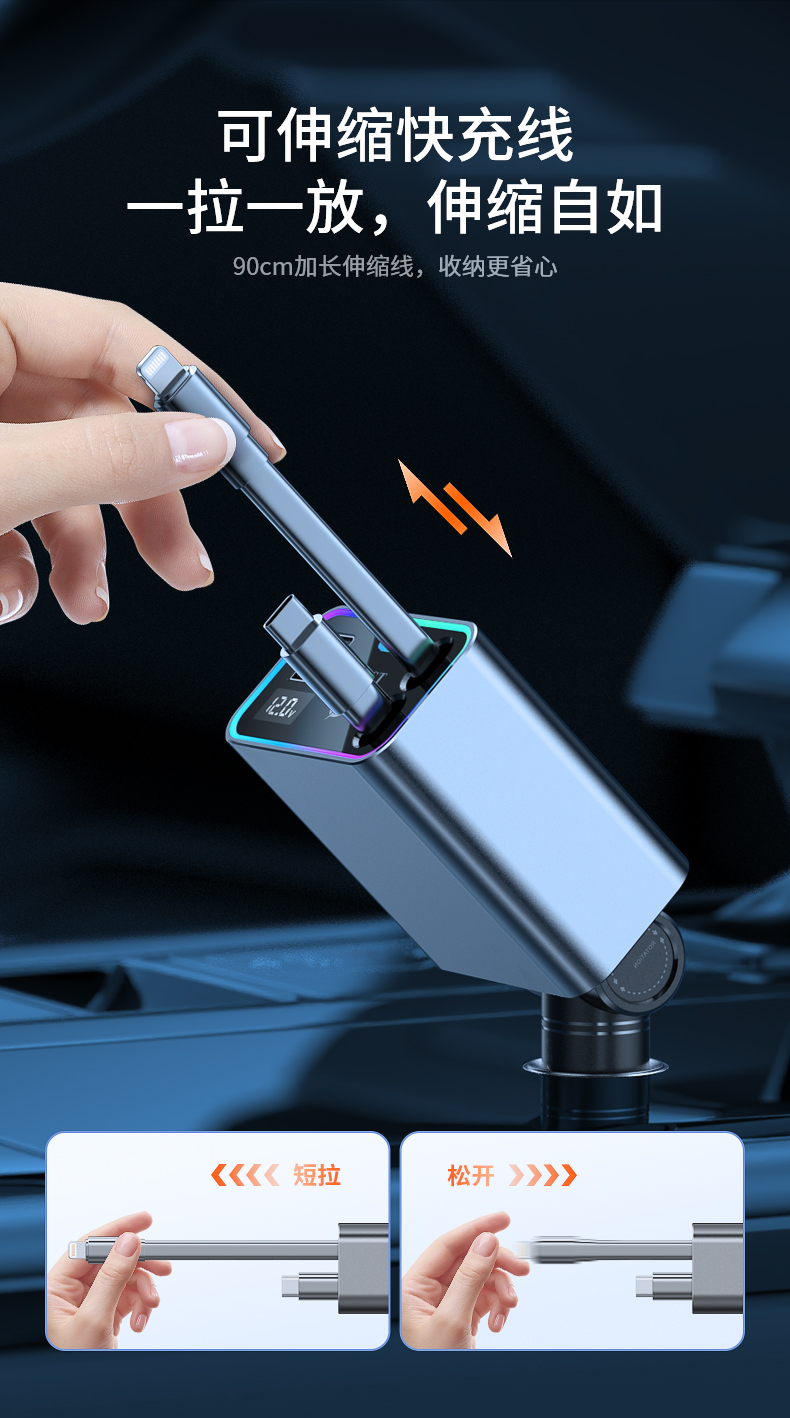 品宁148W车载超级快充自由伸缩线车型通用适用于苹果16华为小米