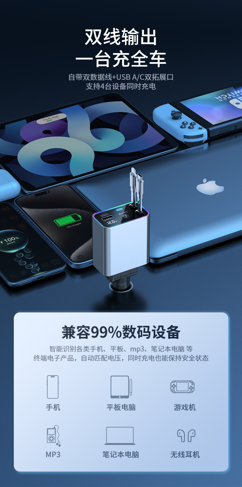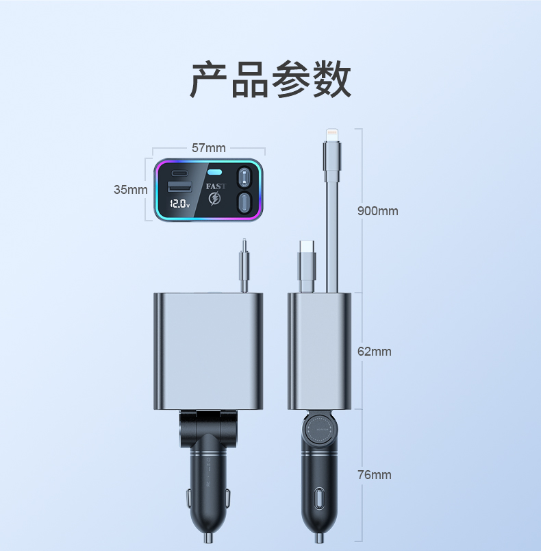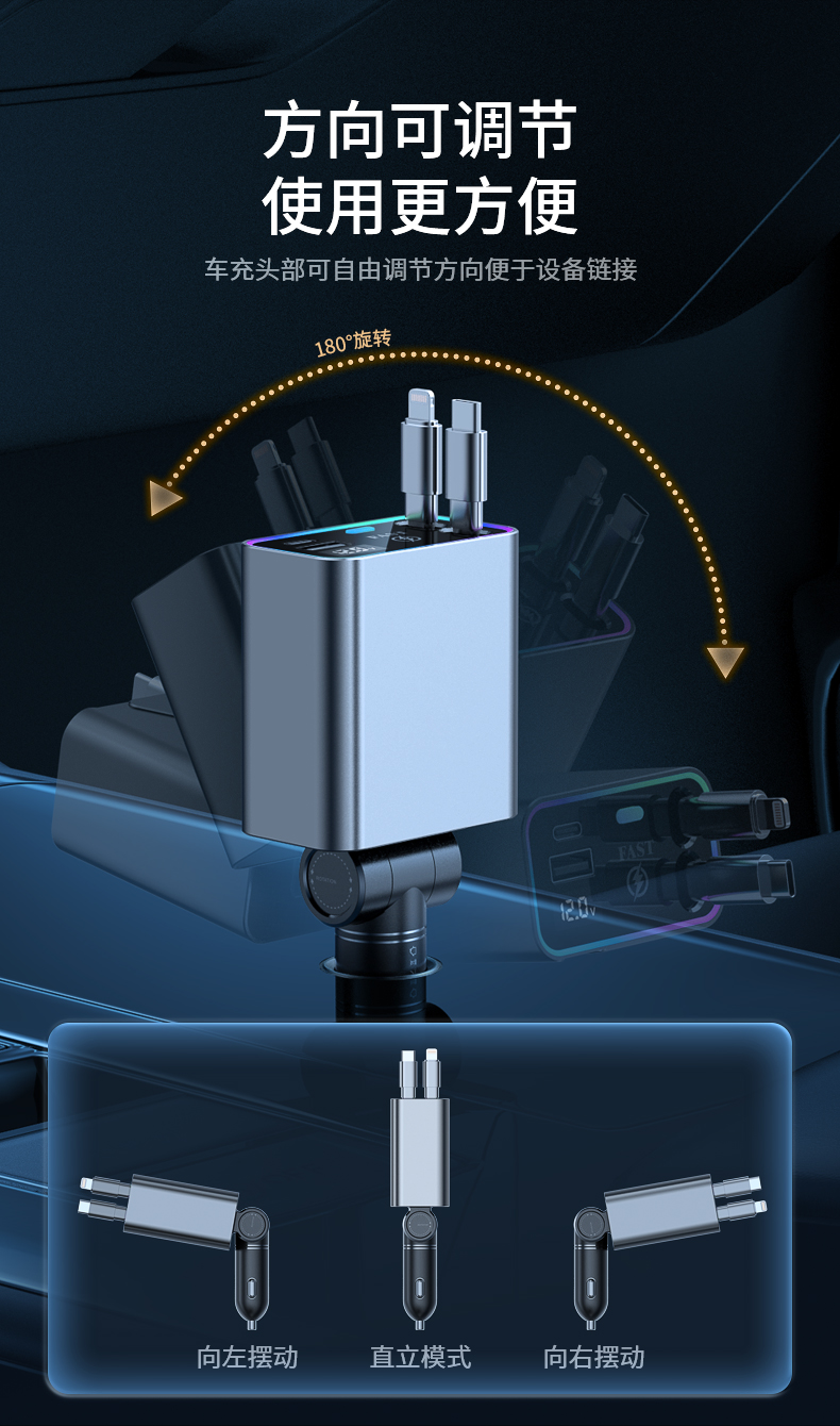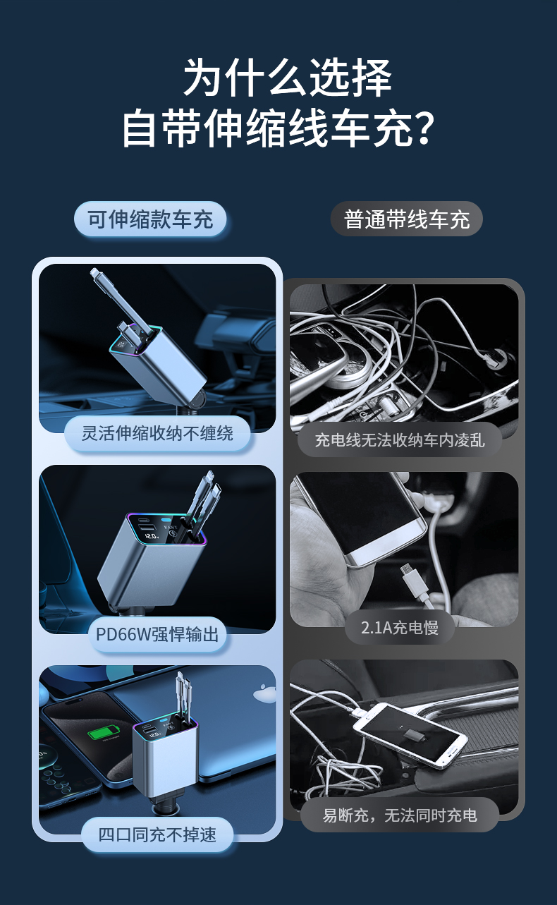 品宁148W车载超级快充自由伸缩线车型通用适用于苹果16华为小米