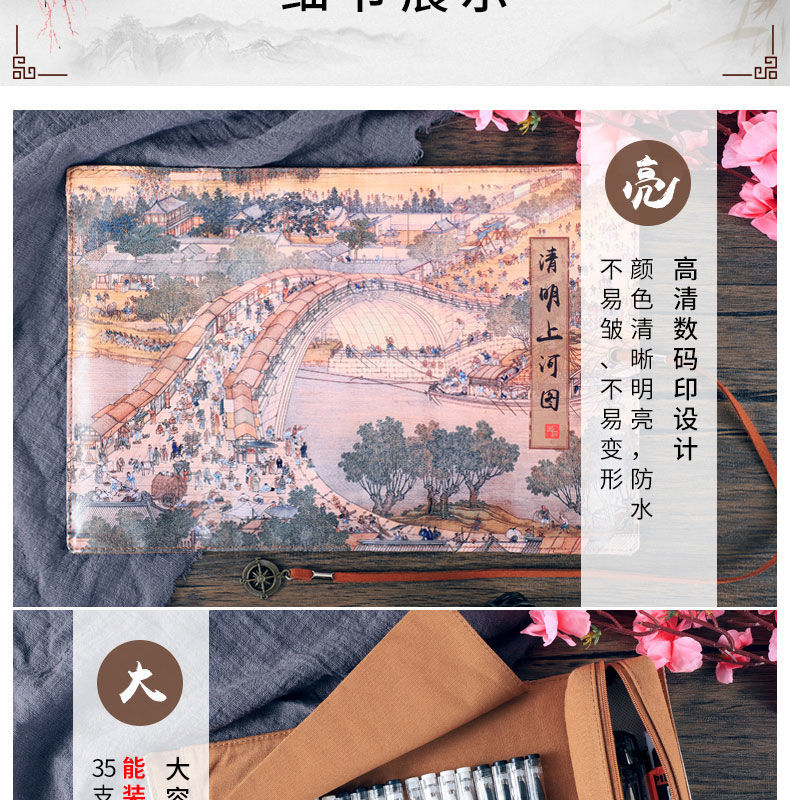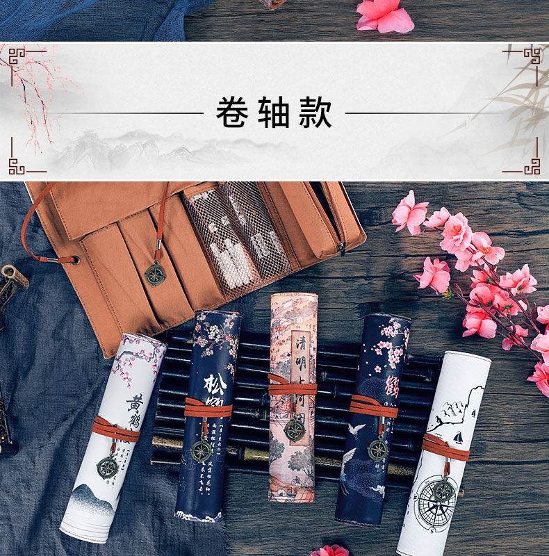 网红古风笔帘卷笔袋国潮大容量铅笔盒国风简约